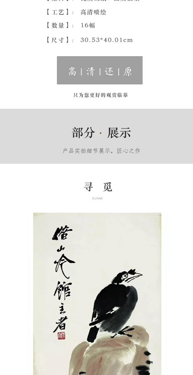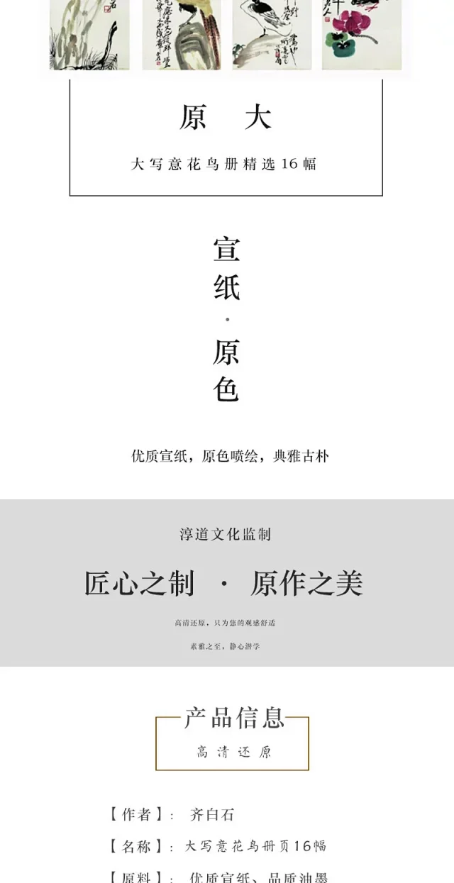 齐白石大写意小品16幅 原大高清宣纸复制(未装裱)
