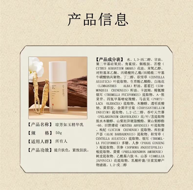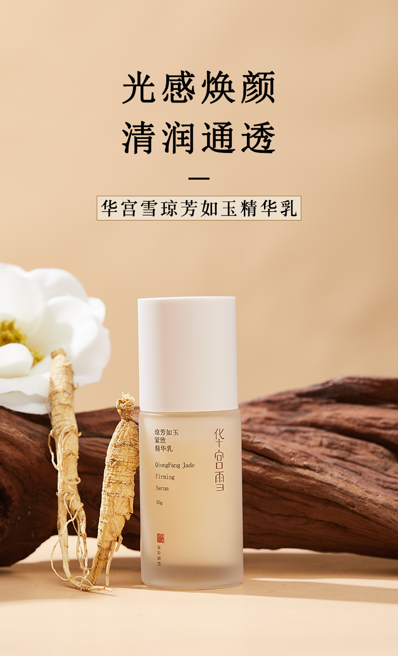 琼芳如玉紧致精华乳 人参与多肽焕亮精致 不添加香精矿物油 华宫雪轻熟龄乳液 50g/瓶