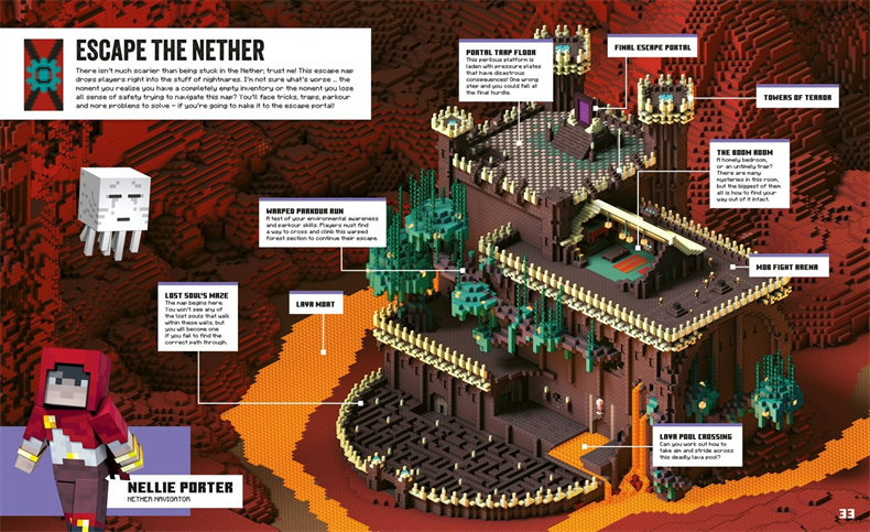 Thirteen mind-blowing Minecraft builds to spark your imagination and entertain your friends. Are you a keen inventor? Looking for inspiration to create builds that will entertain and puzzle players? Then look no further! Epic Escape Rooms contains thirteen incredible builds to inspire you to construct the most inventive maps in Minecraft. Each one brings unique ideas and contraptions designed to test players and make it hard to escape! There’s a zombie prison break, pirate island, haunted house and an underground science lab, plus many more original builds.