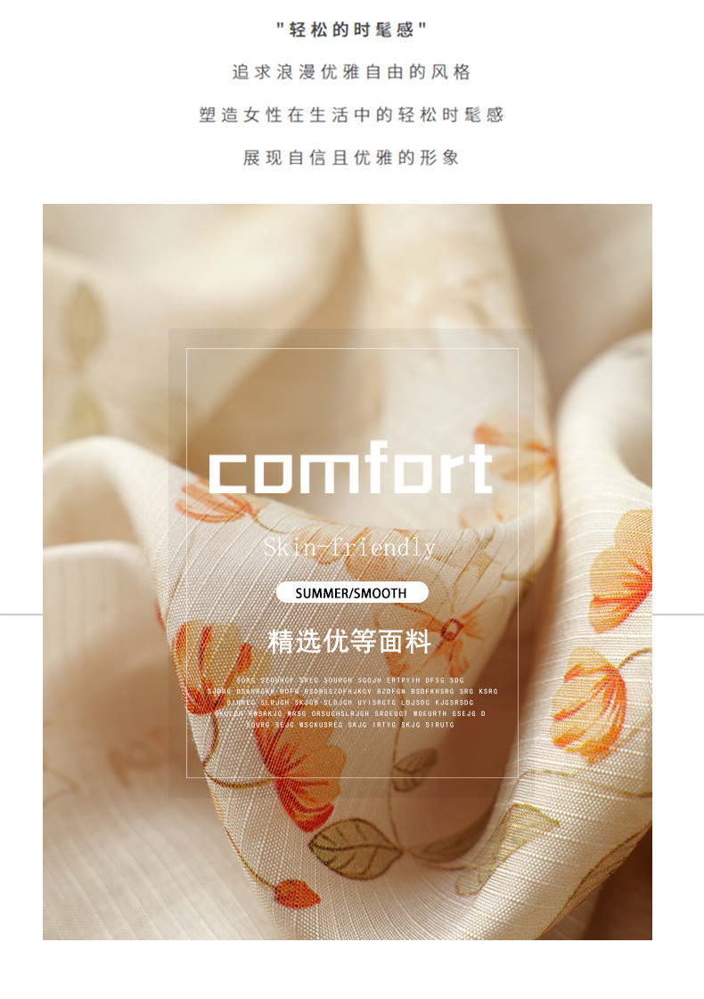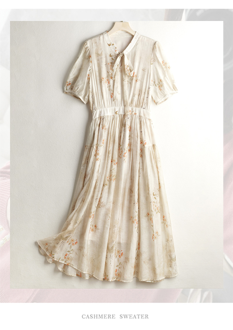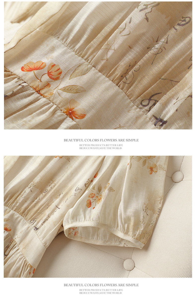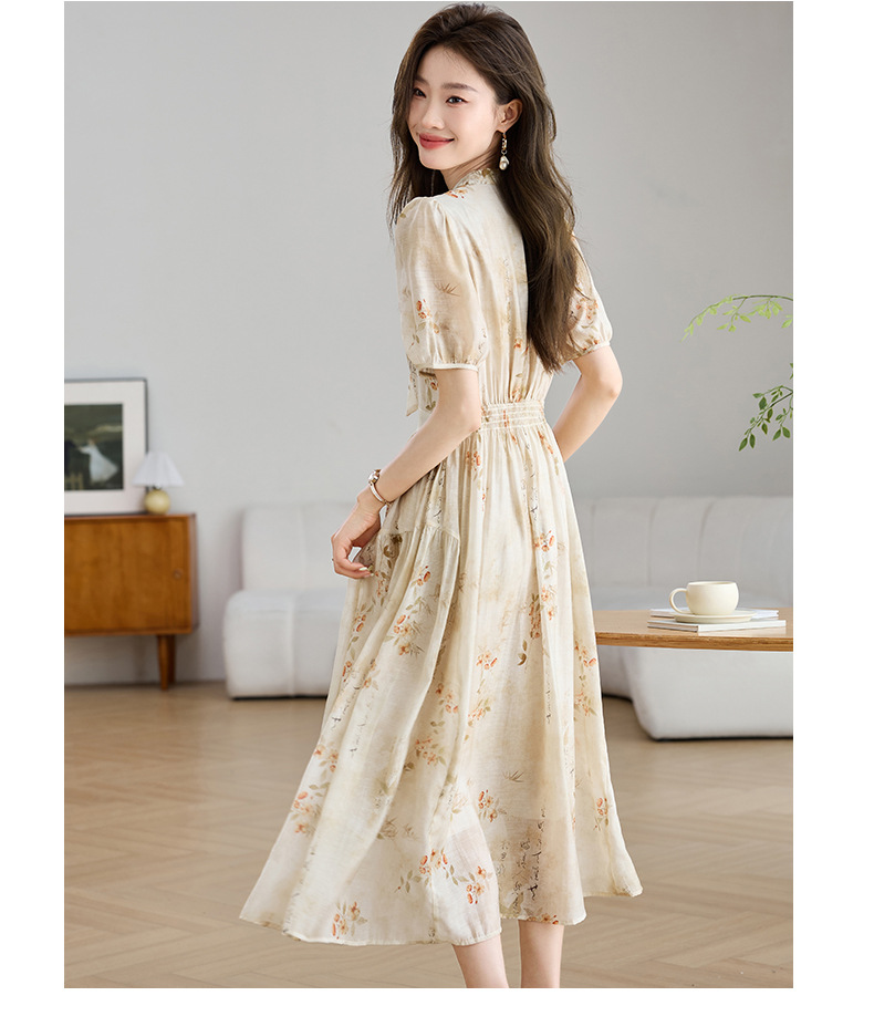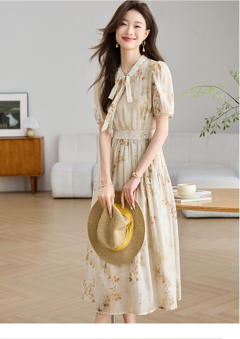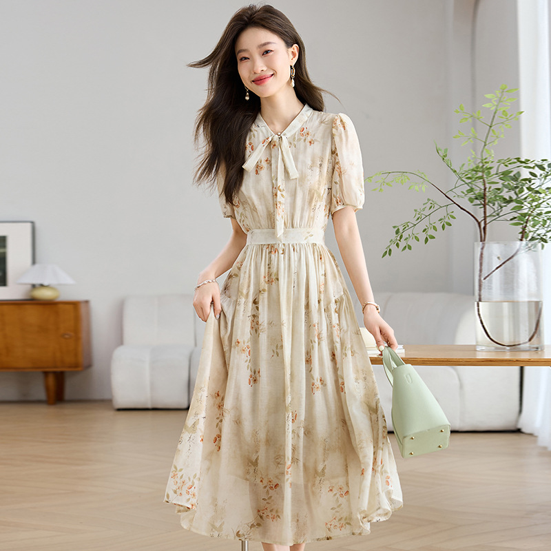 法式印花雪纺连衣裙,轻熟风碎花收腰气质长裙CC-J-662