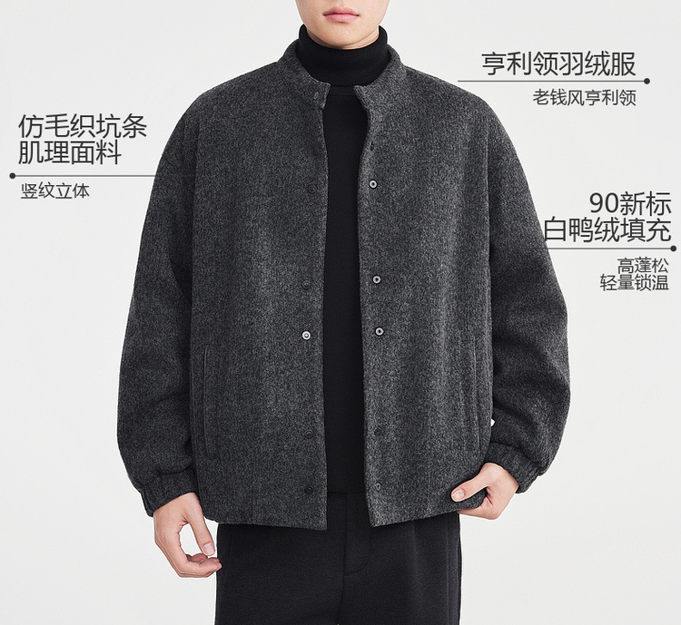 墨麦客男装仿毛织肌理羽绒服男2025冬款宽松落肩男士羽绒服88940