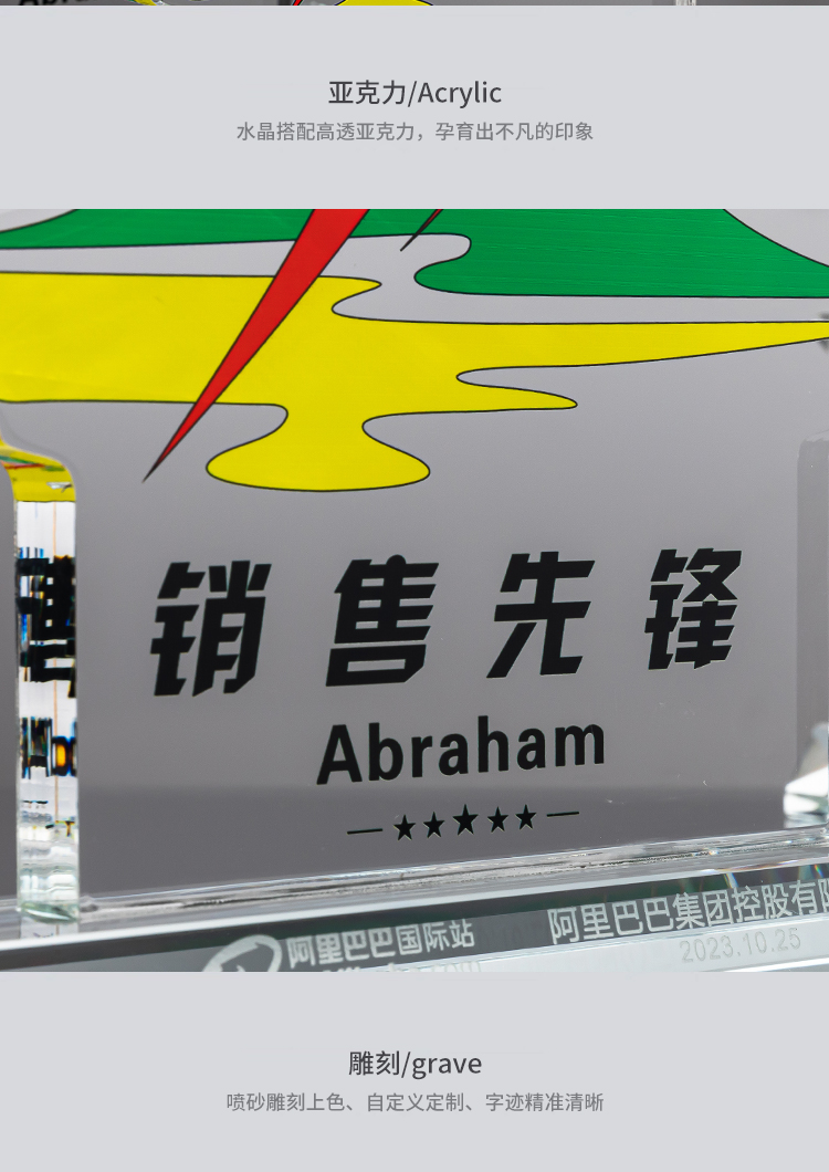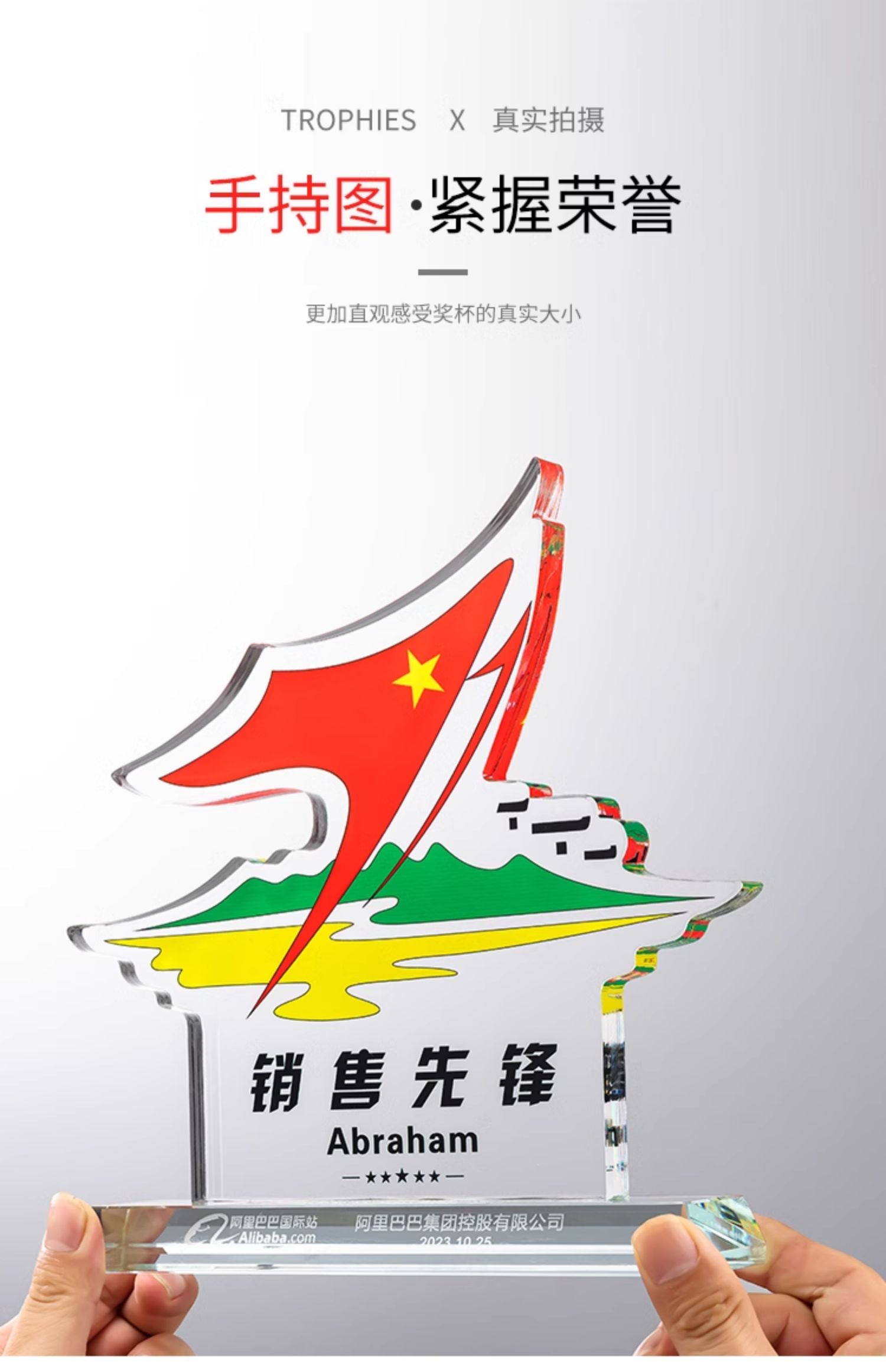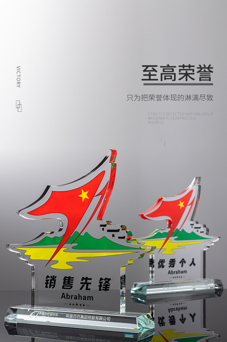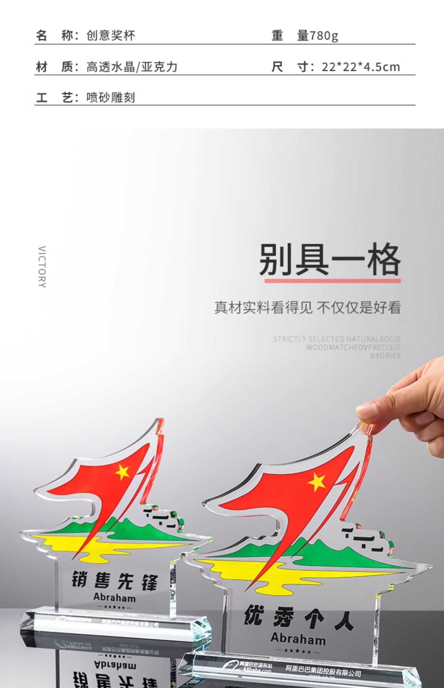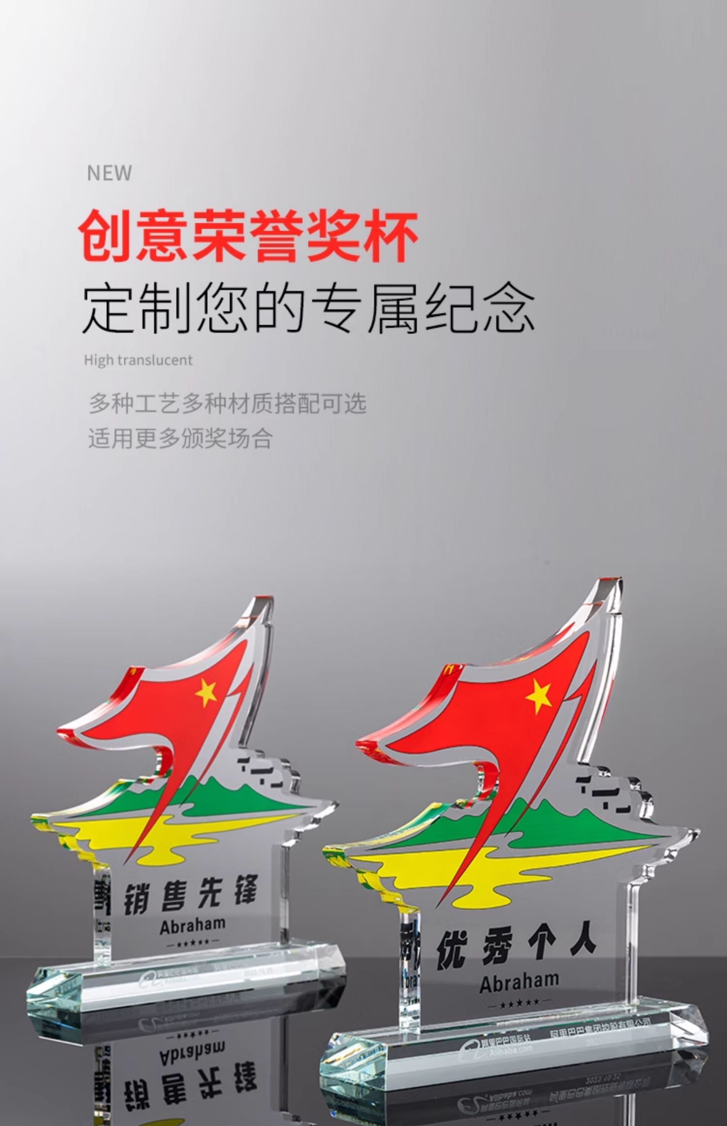 亚克力水晶奖杯奖牌定制定做创意优秀个人年会颁奖流动红旗纪念品