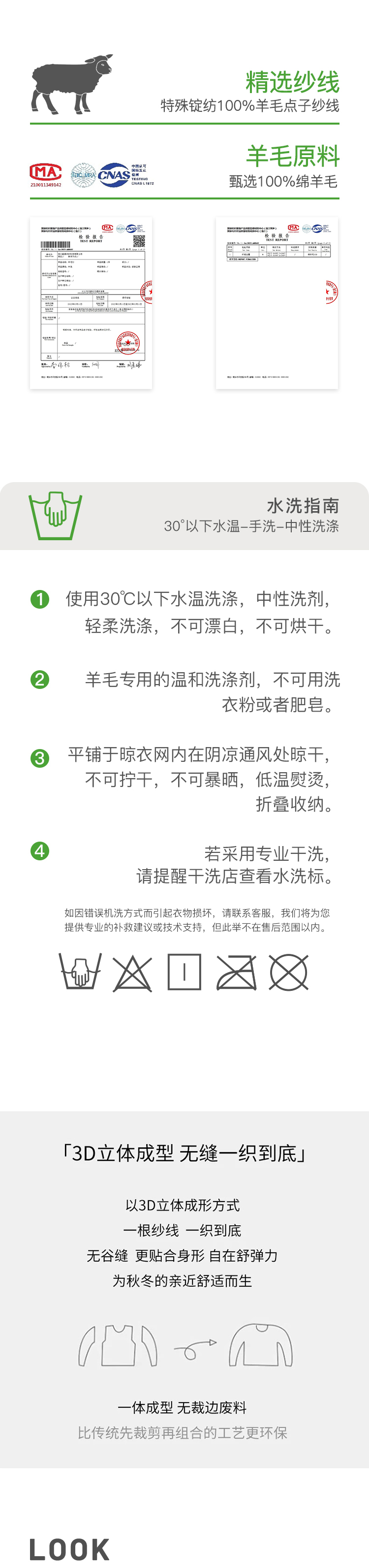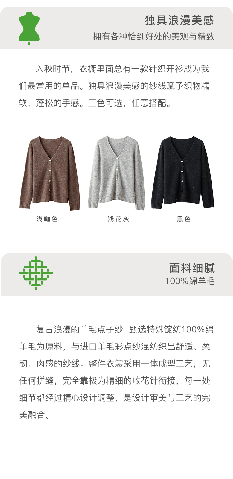 【新品】100%绵羊毛点子纱一体成型针织开衫