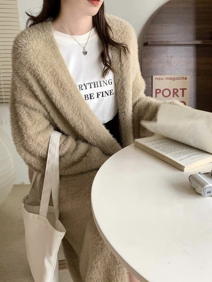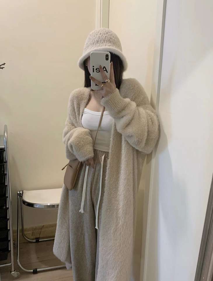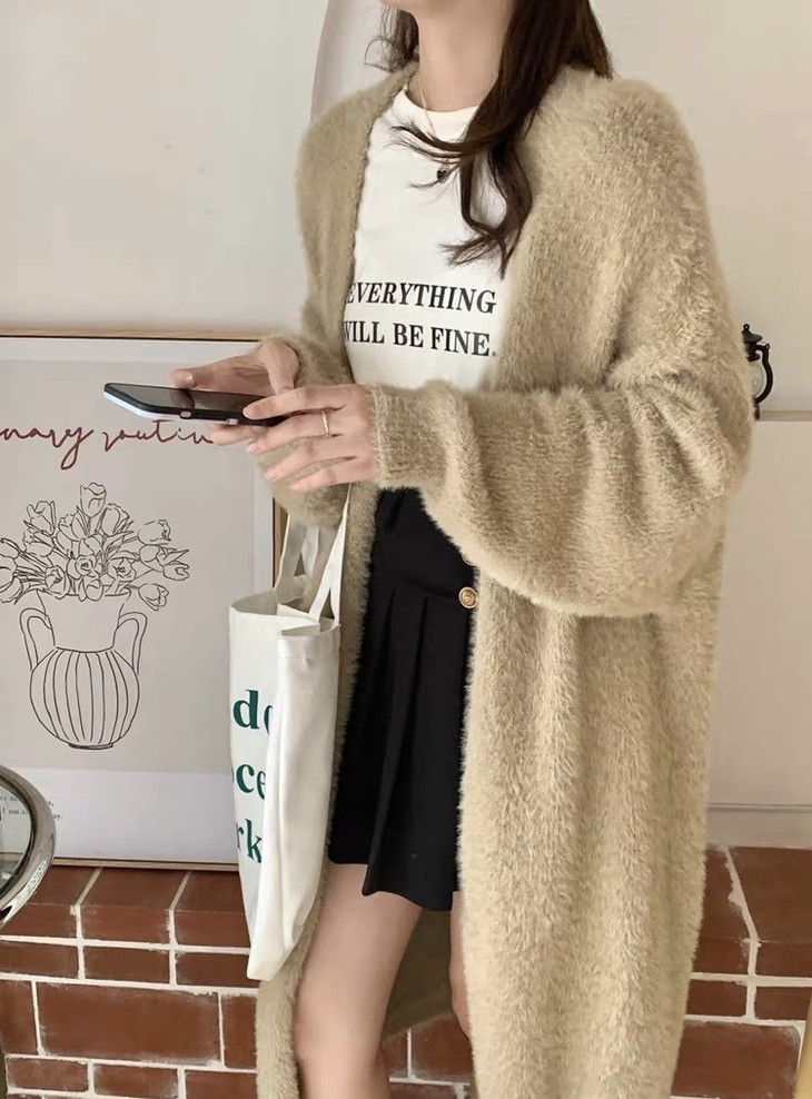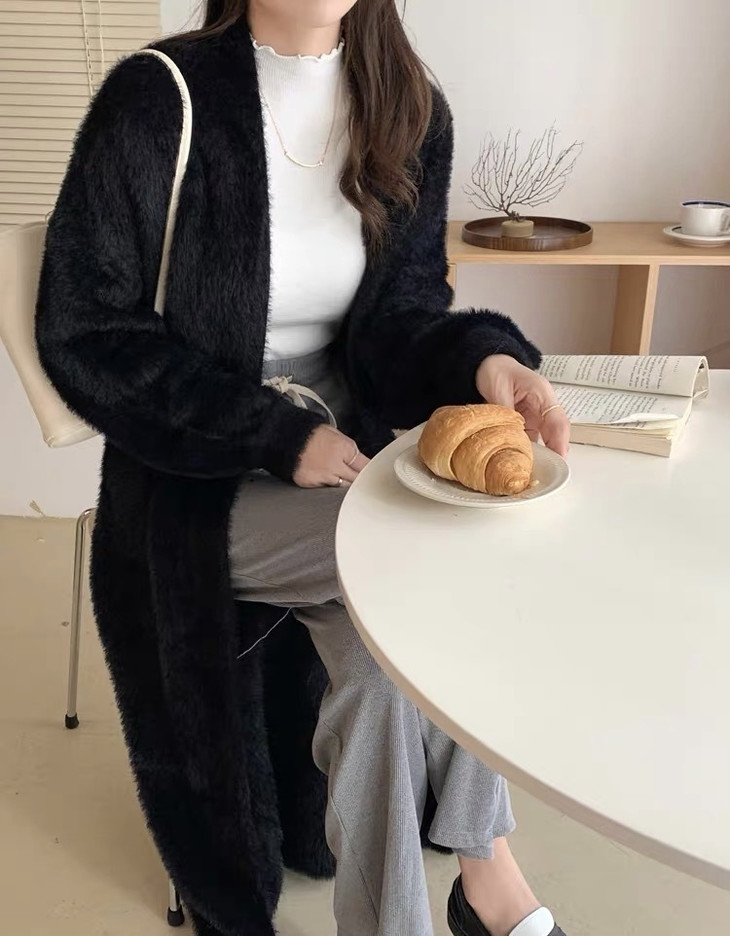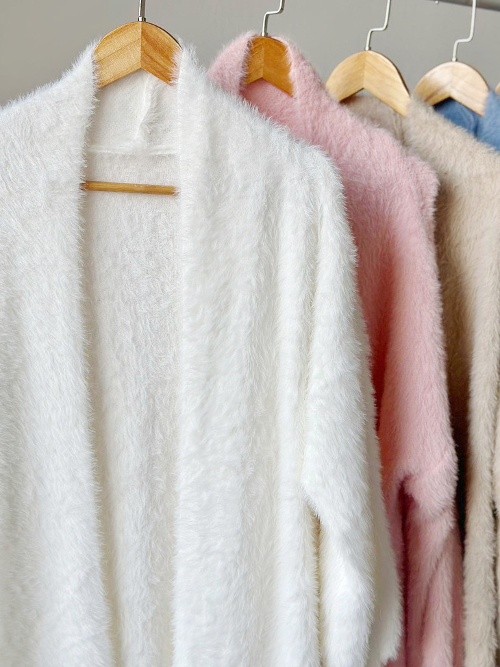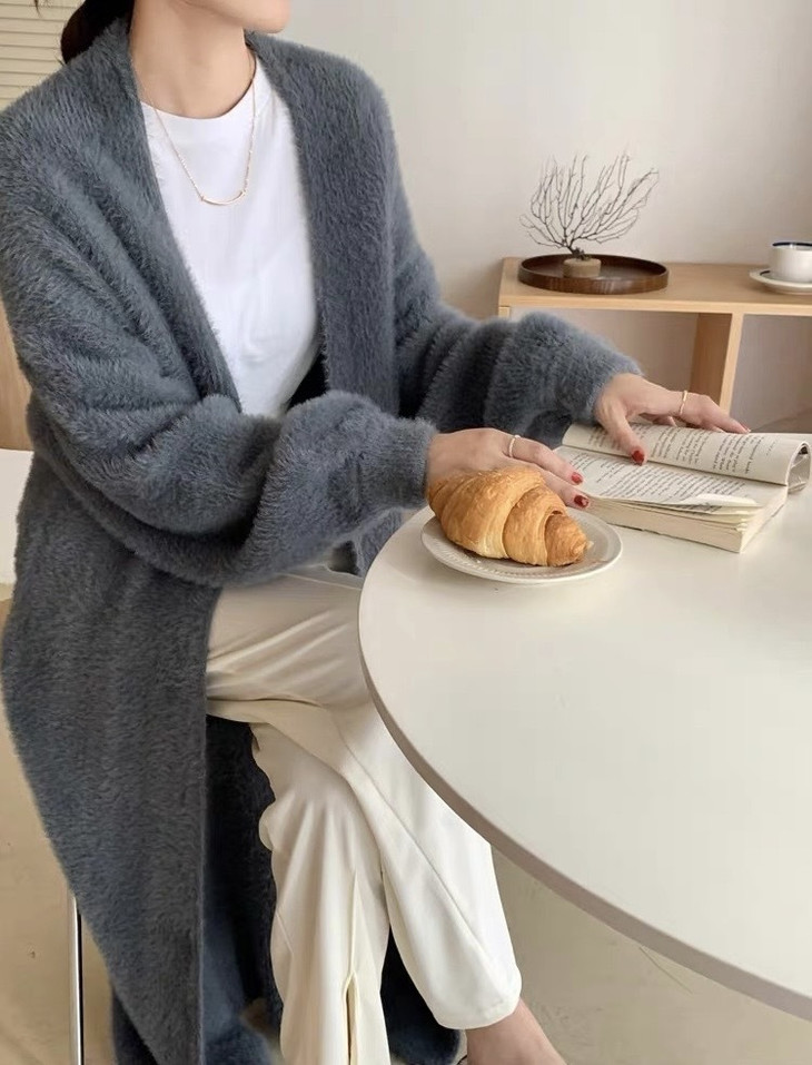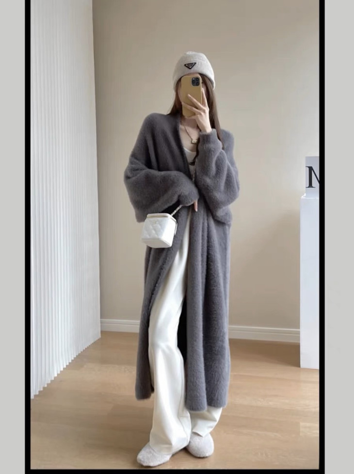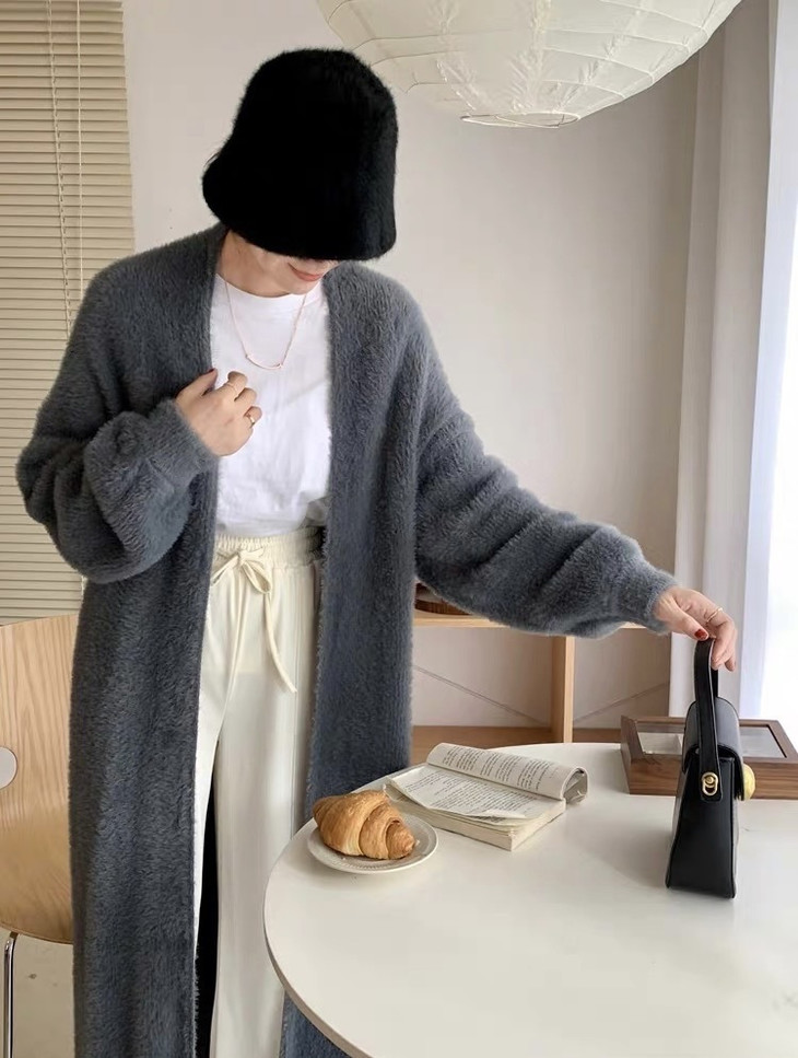 气质大方、冬日的必备小暖炉!! 眼爱上的质感,摸上手感柔软顺滑 开衫的设计看起来温柔感满满而且好搭配 前襟自然敞开,无扣合 上身分量很足, 保暖的同时又恰到好处的美 🔺大大的版型 ✅肉眼可见的好包容性 包容性简直就是一绝oo!! ✅遮肉显瘦不挑身材
