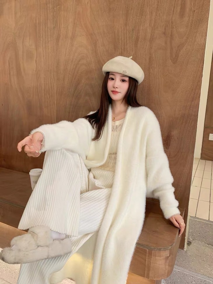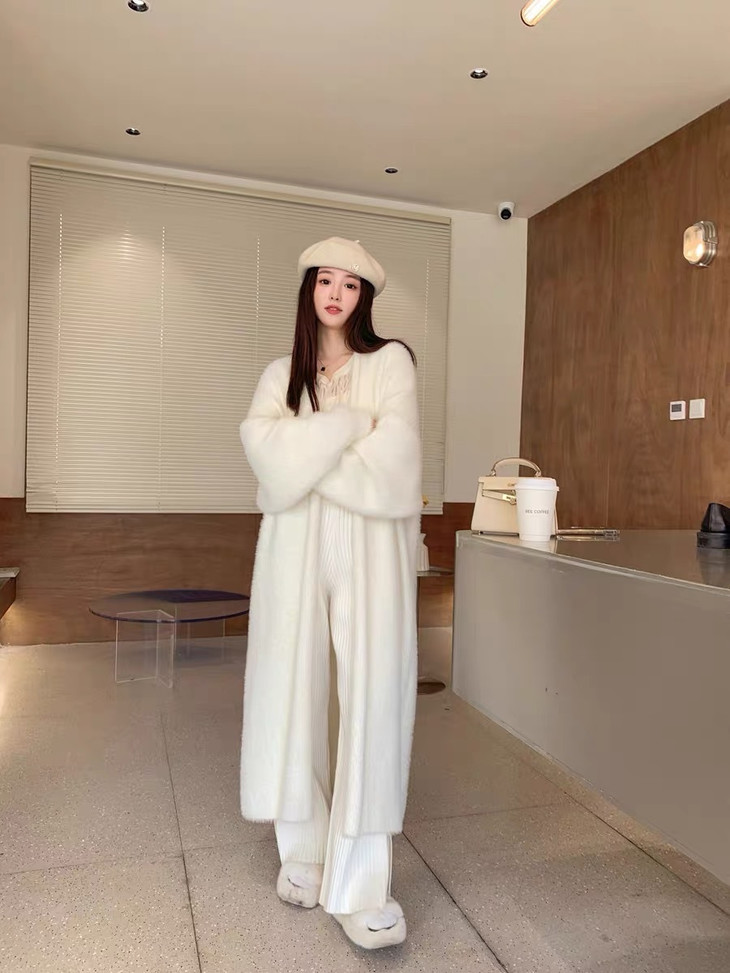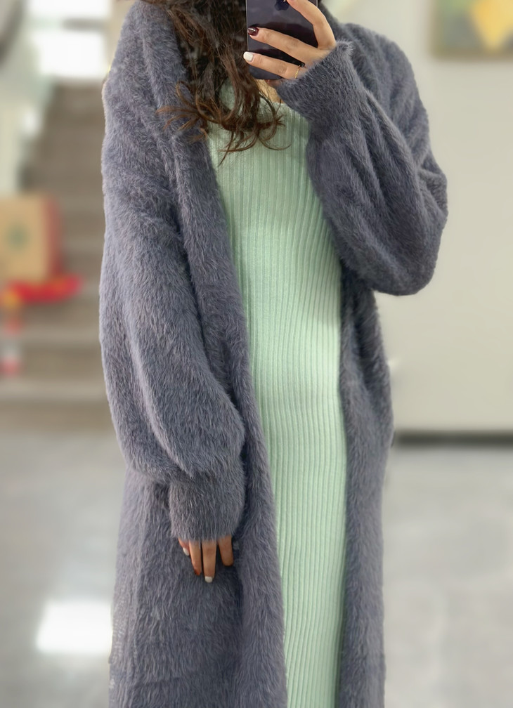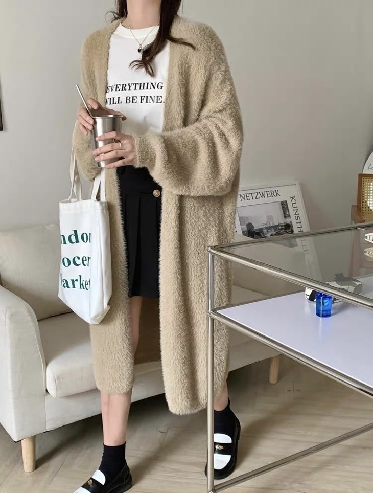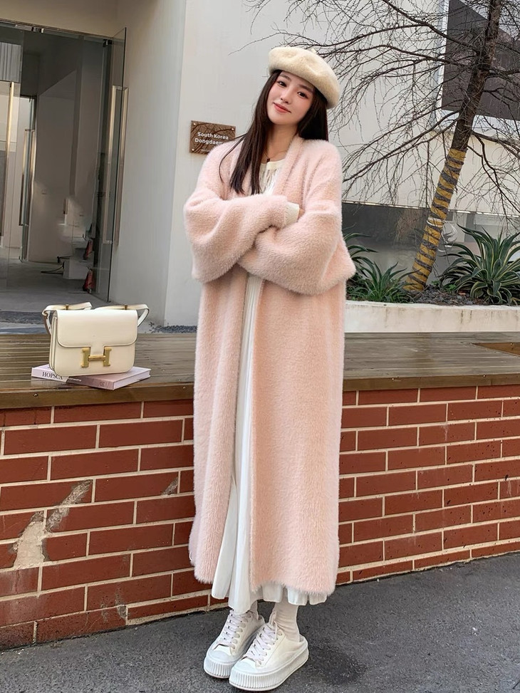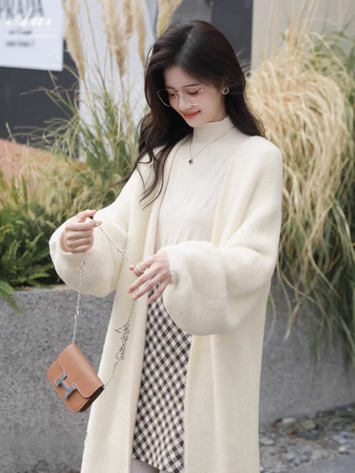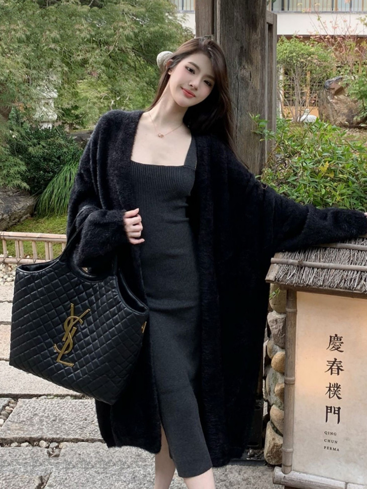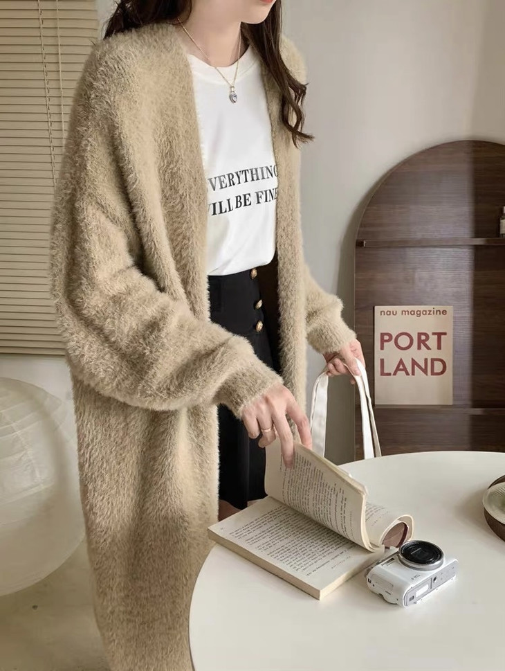 气质大方、冬日的必备小暖炉!! 眼爱上的质感,摸上手感柔软顺滑 开衫的设计看起来温柔感满满而且好搭配 前襟自然敞开,无扣合 上身分量很足, 保暖的同时又恰到好处的美 🔺大大的版型 ✅肉眼可见的好包容性 包容性简直就是一绝oo!! ✅遮肉显瘦不挑身材