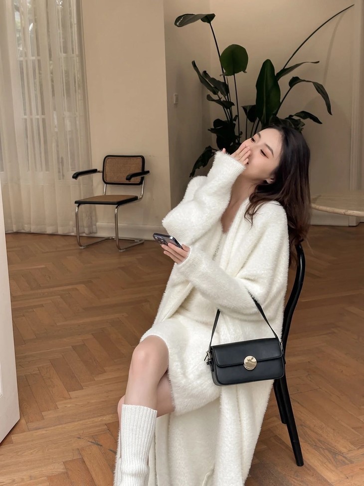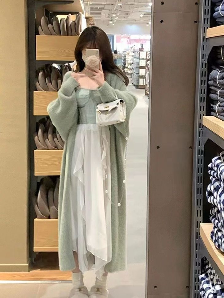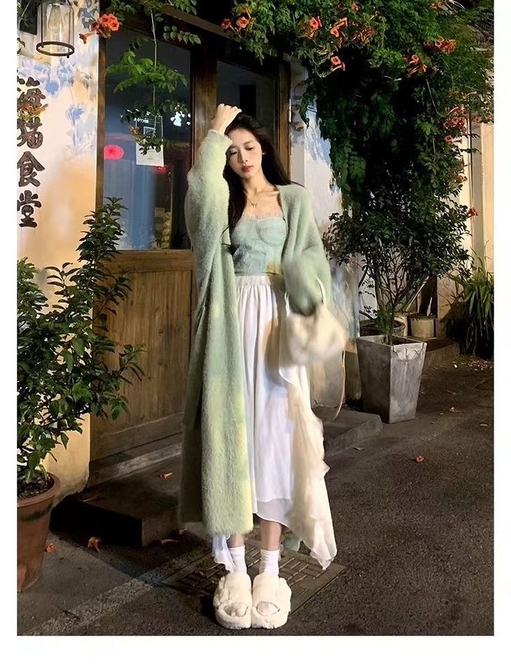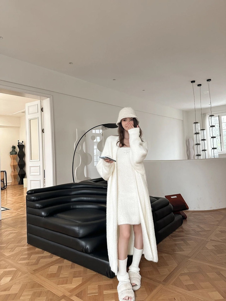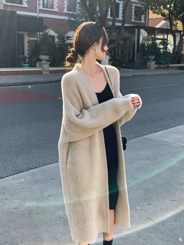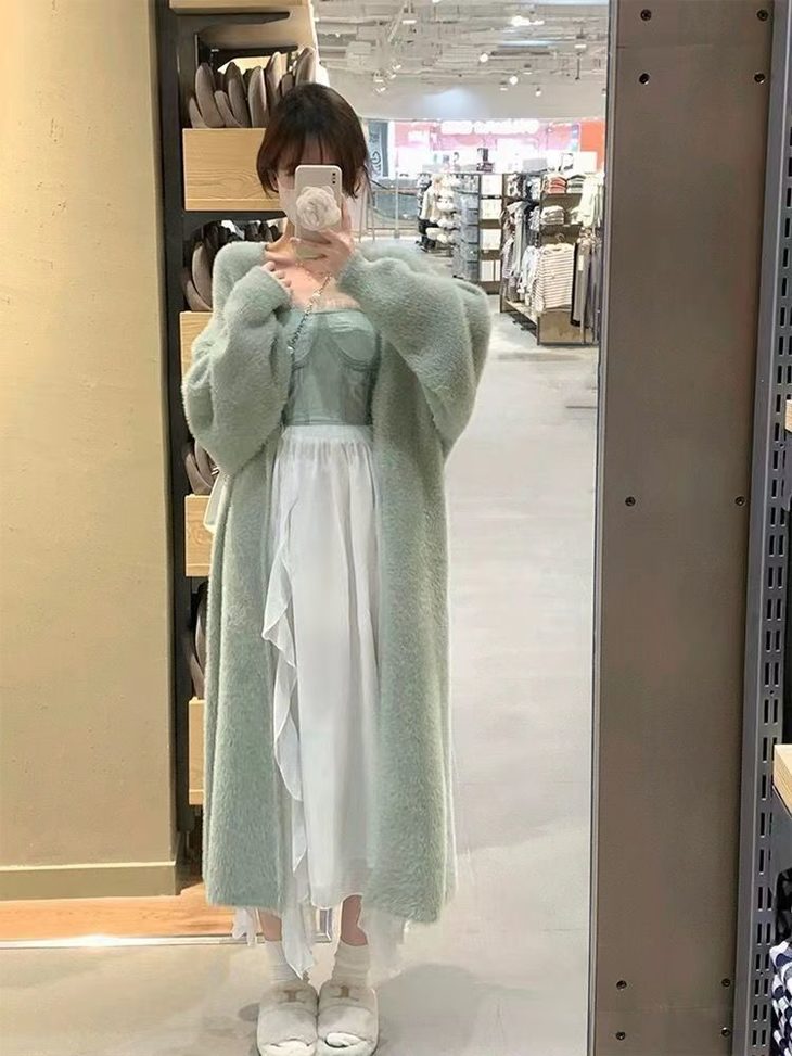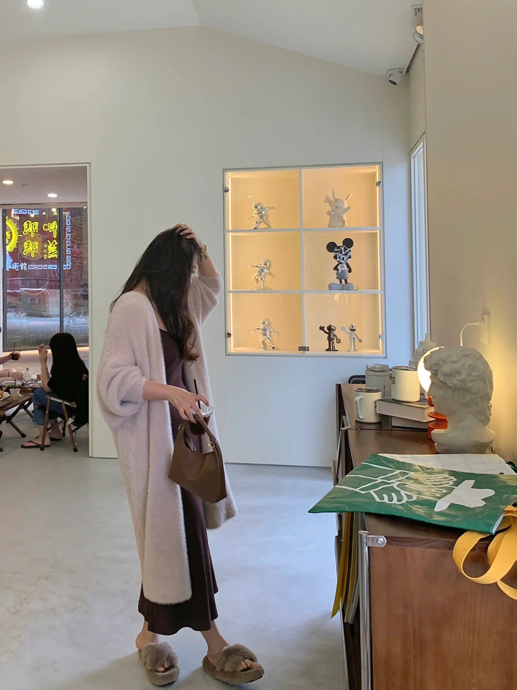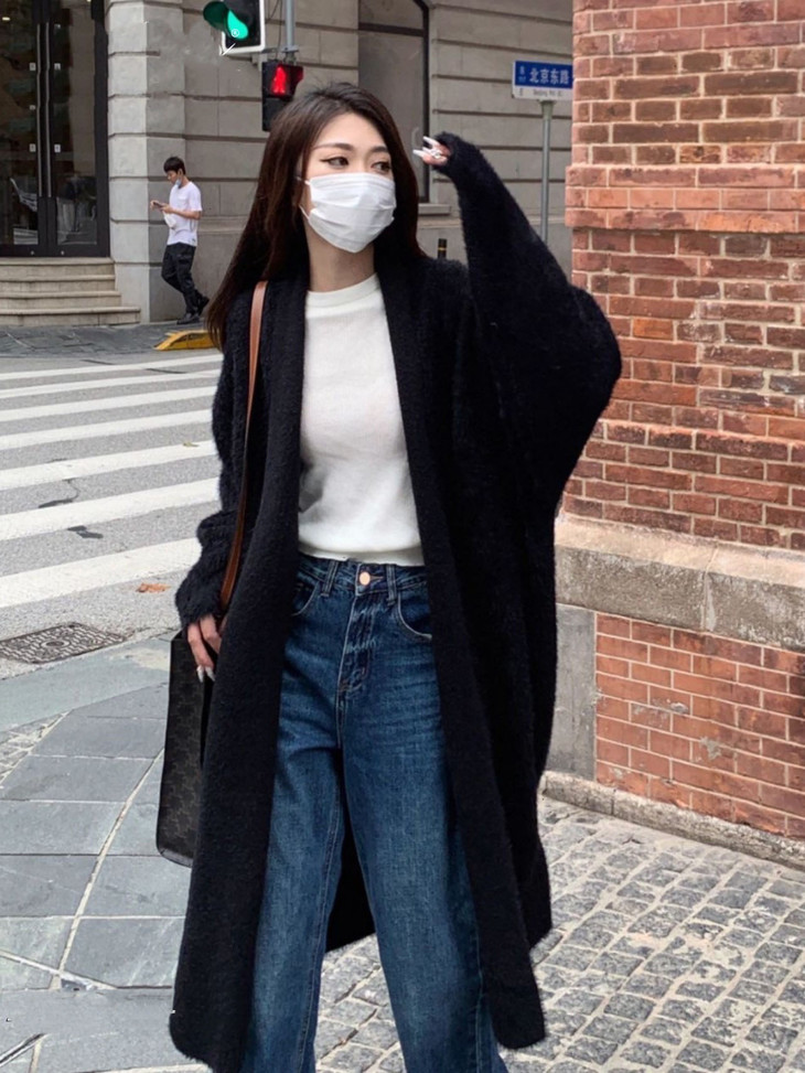 气质大方、冬日的必备小暖炉!! 眼爱上的质感,摸上手感柔软顺滑 开衫的设计看起来温柔感满满而且好搭配 前襟自然敞开,无扣合 上身分量很足, 保暖的同时又恰到好处的美 🔺大大的版型 ✅肉眼可见的好包容性 包容性简直就是一绝oo!! ✅遮肉显瘦不挑身材