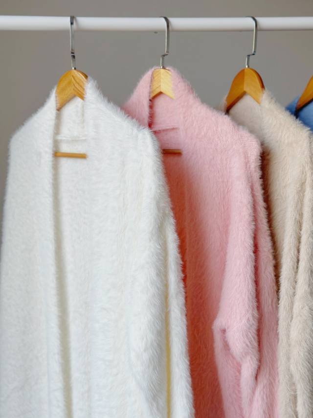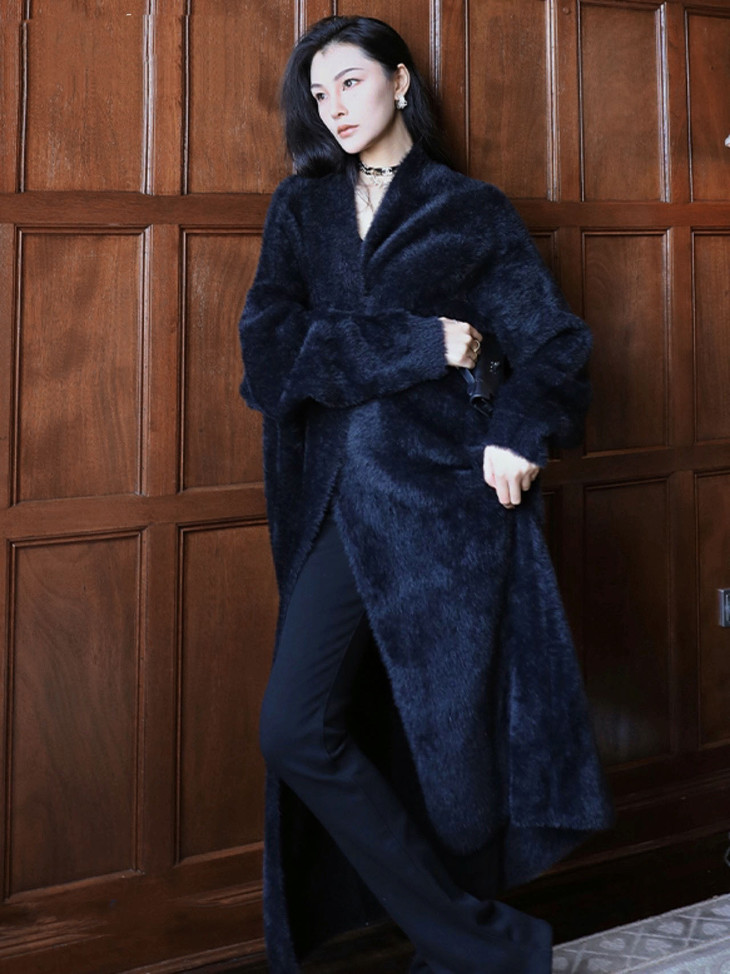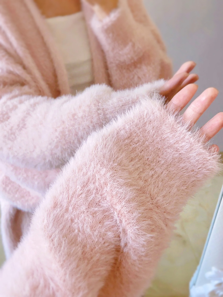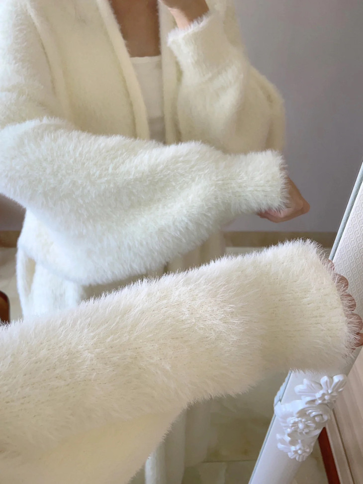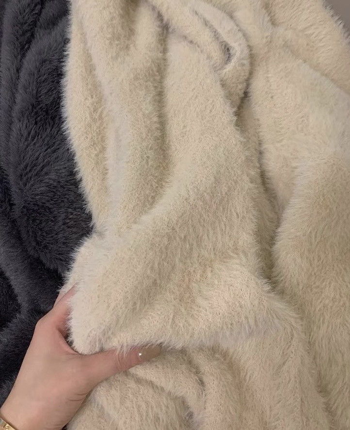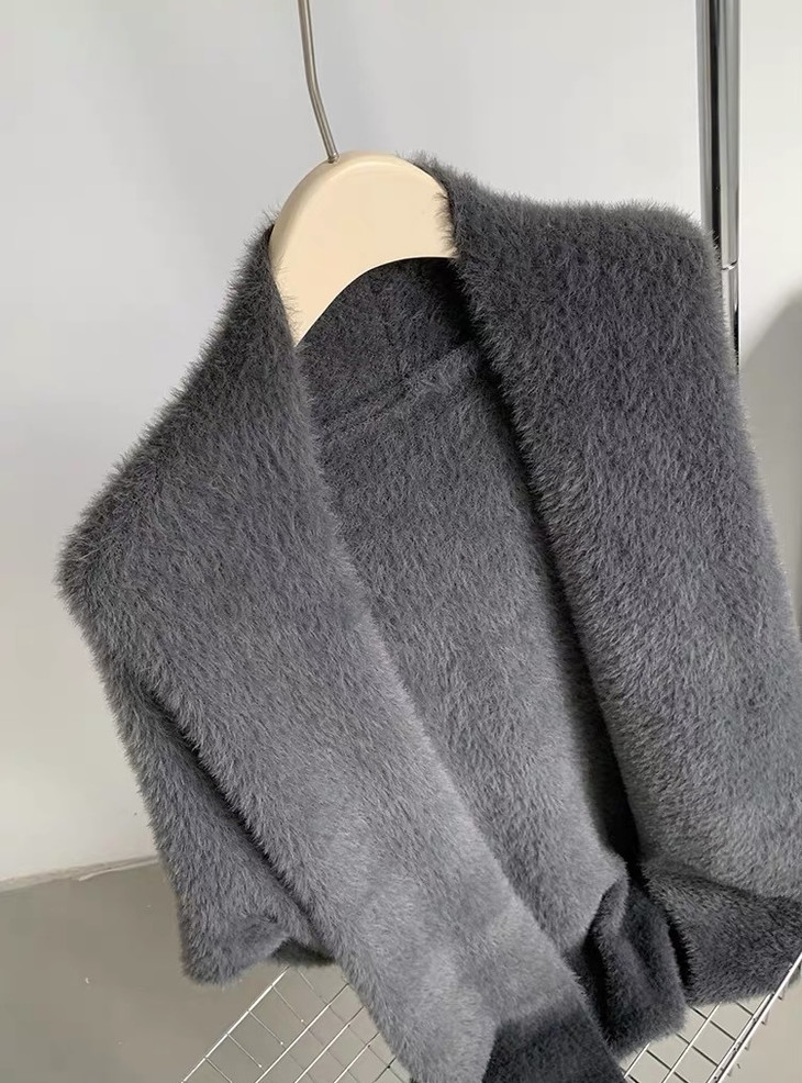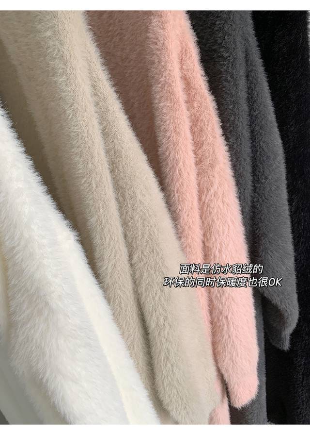 高克重、慵懒仿水招绒开衫 给足安全感的仿水貂大开衫 浴袍式的设计随性慵懒 随意一裹就能出门 面料是仿水貂绒的 环保的同时保暖度也很OK
