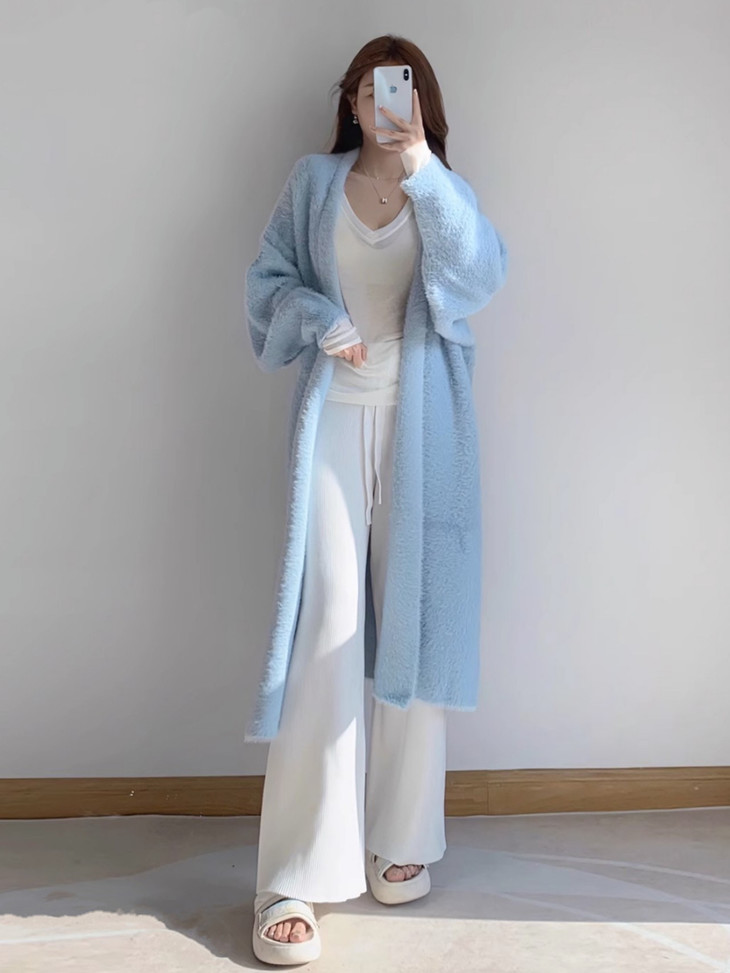 【蓝色】冷色调显白 清爽氧气蓝色, 衬得整个人气色都很好 既适合春天, 开秋等也可以穿 慵慵懒懒肆意的走在秋风里, 也太舒服了吧~ 流行的OVERSIZE大廓形,藏拙显瘦 不用顾虑出问题,因为它是不会出错的单品 中长款式,特别显身形修长 衣身毛绒设计,毛茸茸的手感真的特别舒服