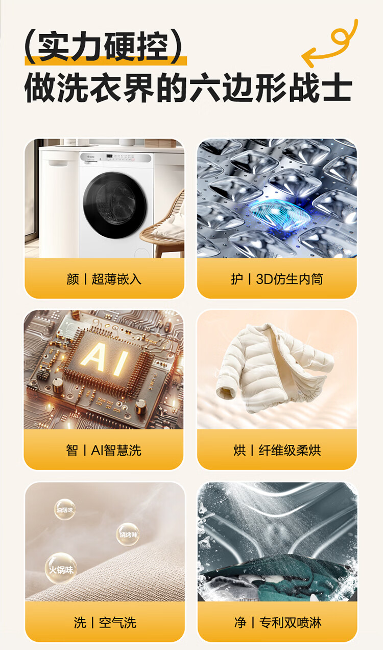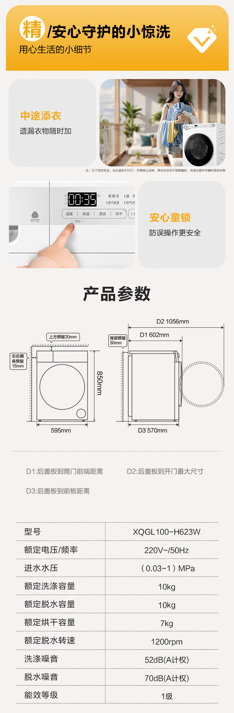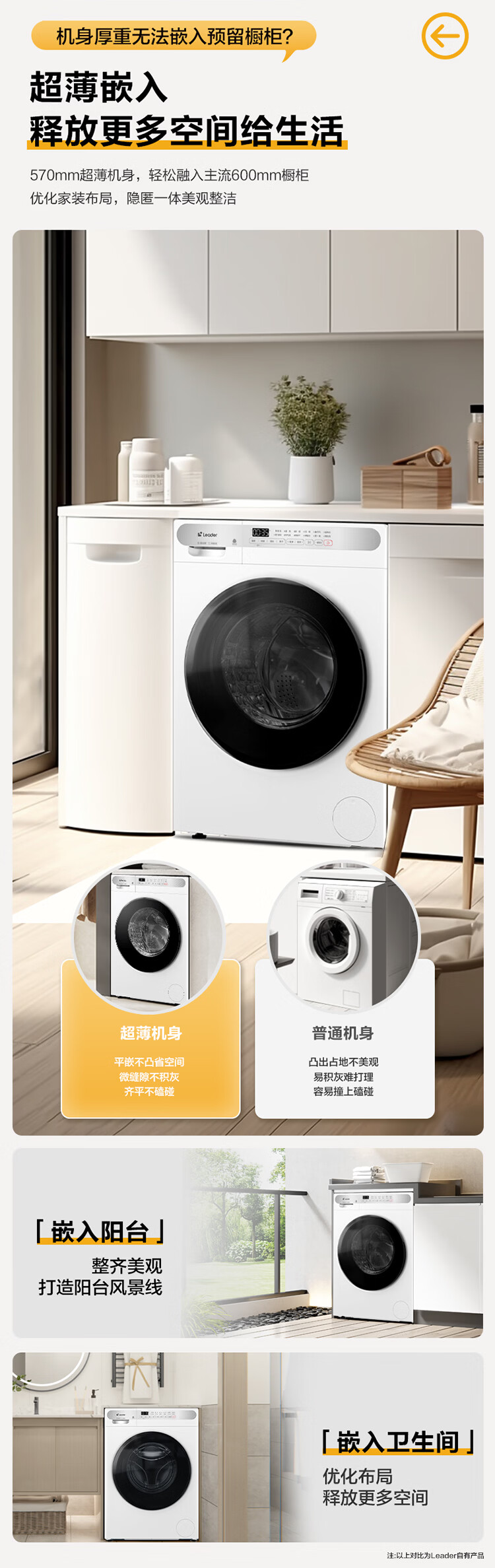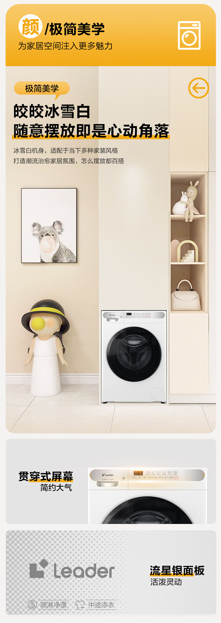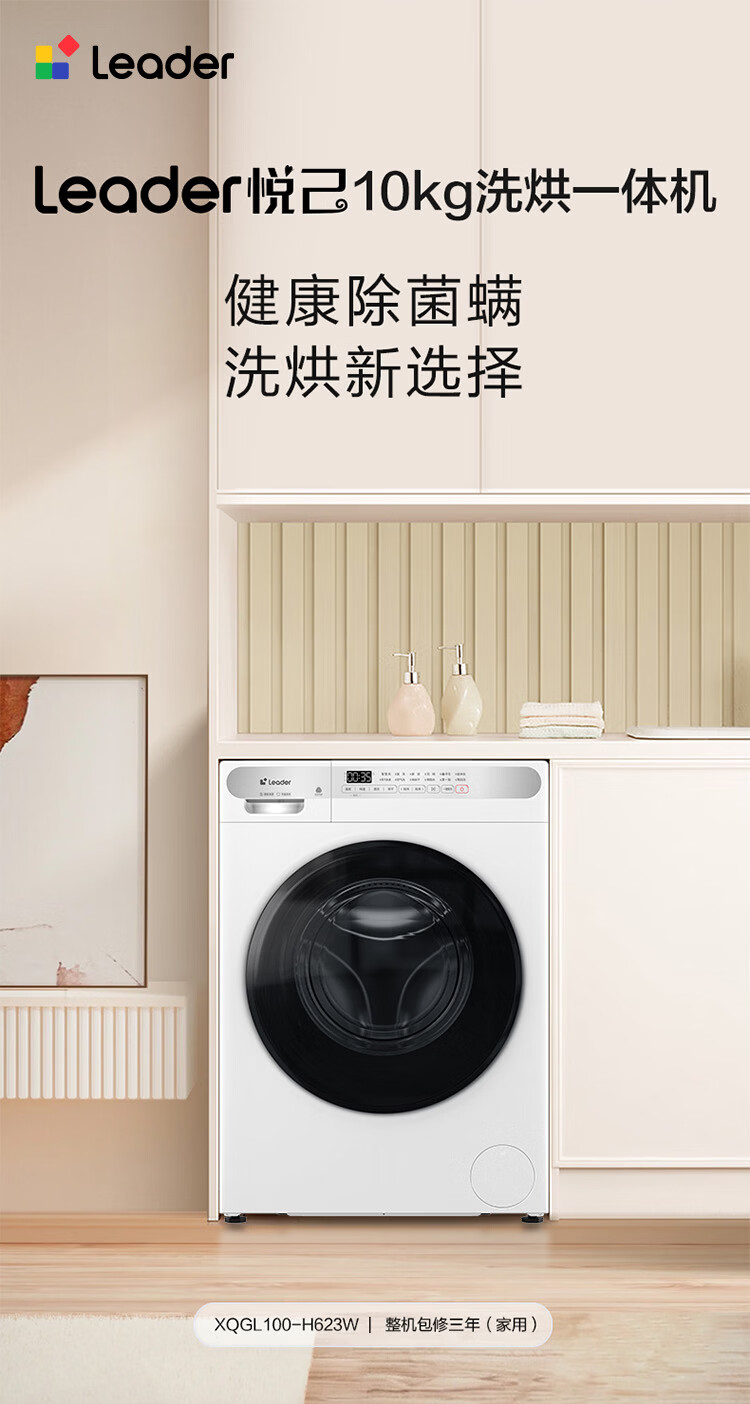 统帅(Leader)海尔出品 滚筒全自动洗衣机 10公斤洗烘一体家用大容量超薄一级能效补贴 以旧换新 XQGL100-H623W 智慧洗+空气洗+筒自洁 滚筒