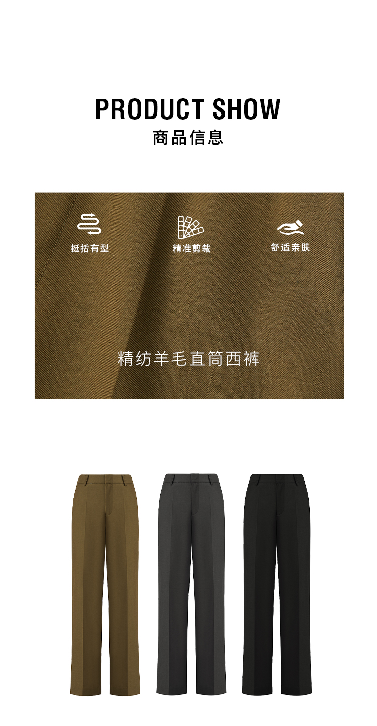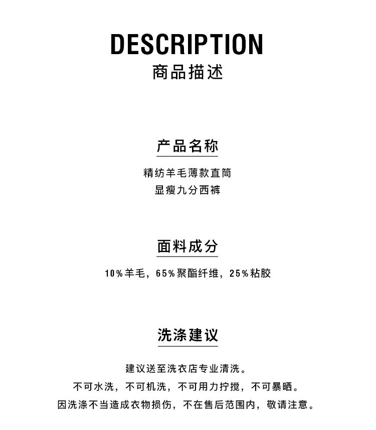 HIDEMI 精纺羊毛薄款直筒显瘦九分西裤