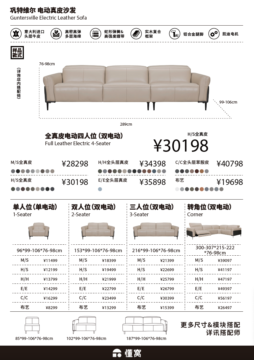 懂窝 | 巩特维尔 电动皮艺沙发 Guntersville Leather Electric Sofa