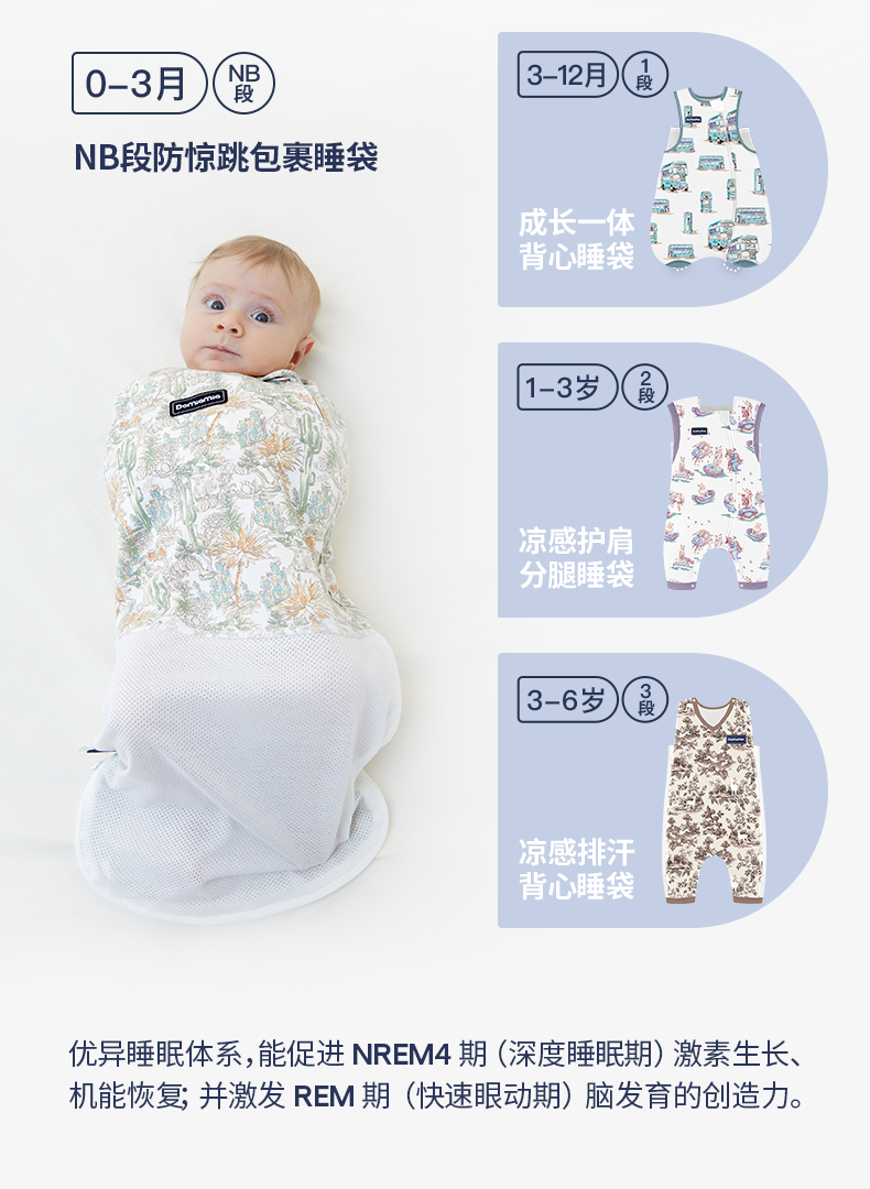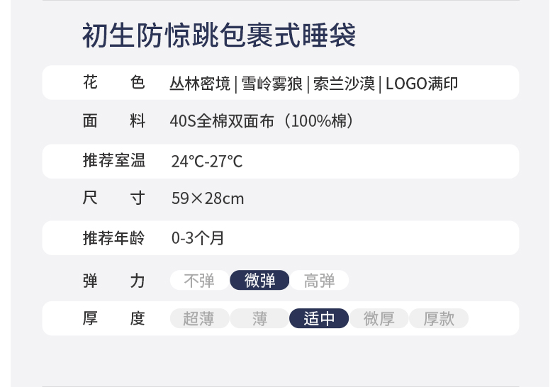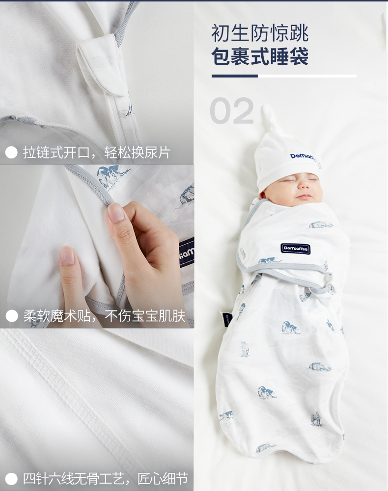 Domiamia哆咪呀亲肤防惊跳包裹式初生睡袋 LOGO满印 83307