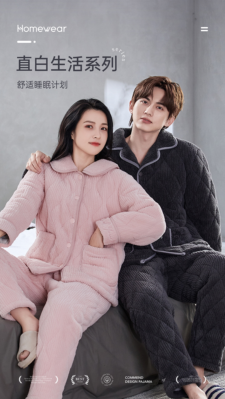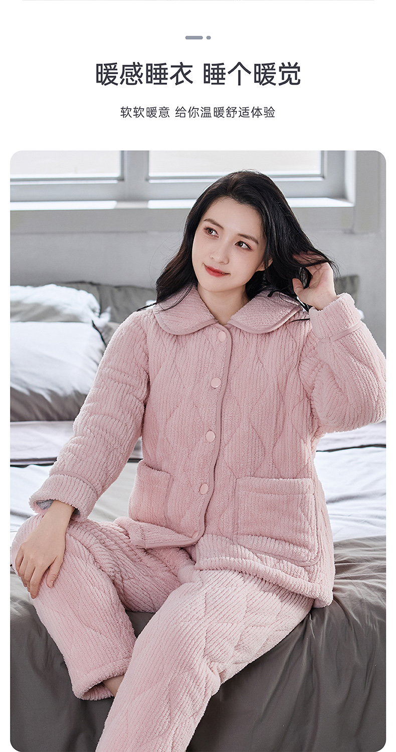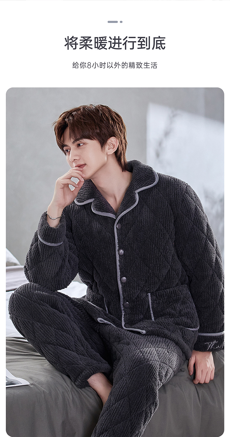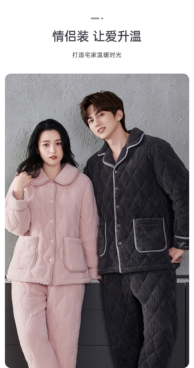 (合作款)芬腾三层夹棉珊瑚绒加厚保暖情侣家居服套装yc0108010