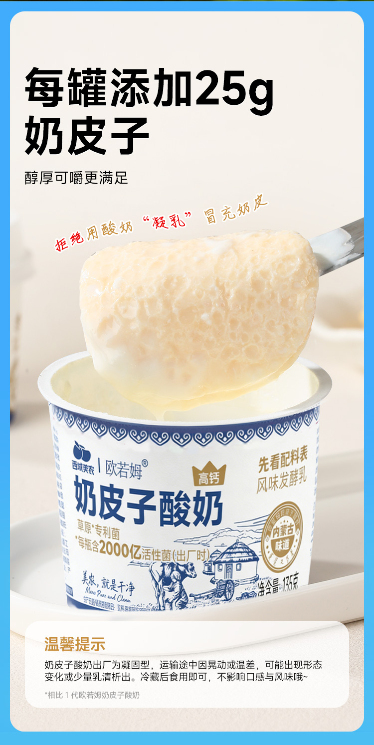 【FX】西域美农 内蒙古欧若姆奶皮子酸奶135g 小罐 活菌酸奶