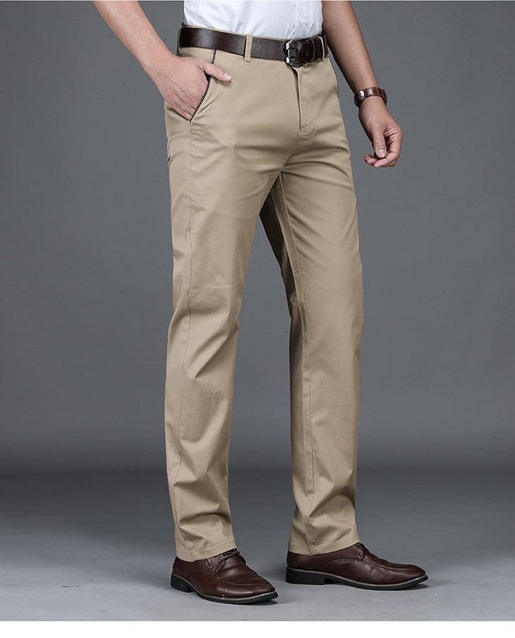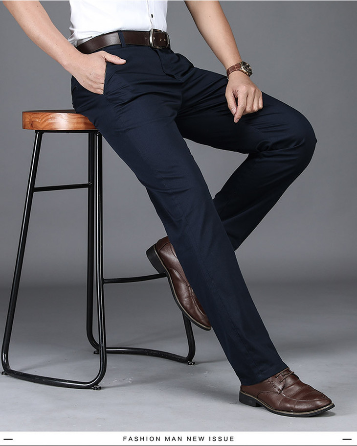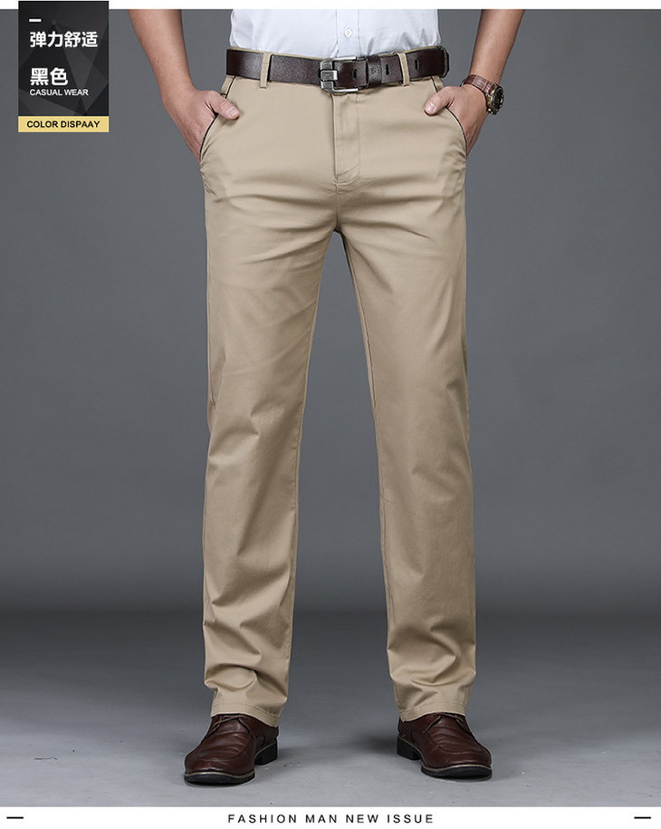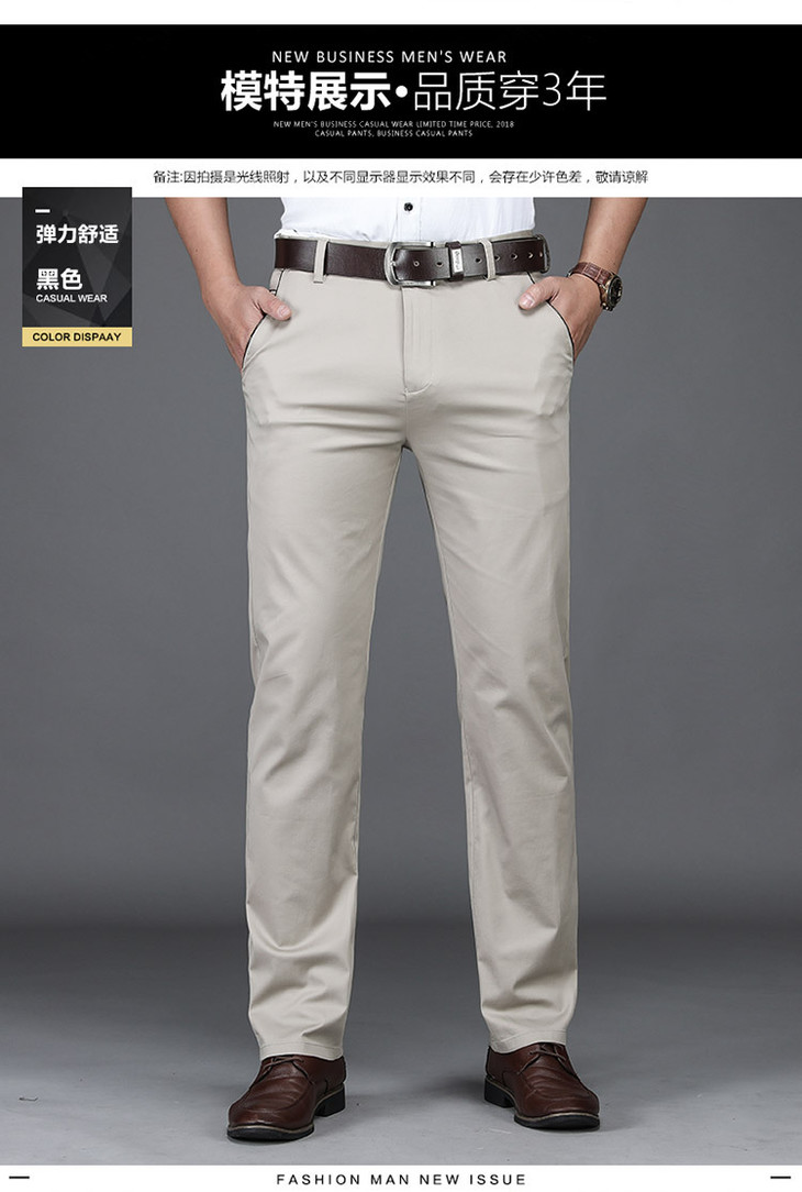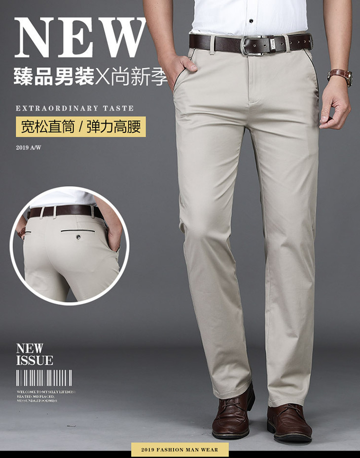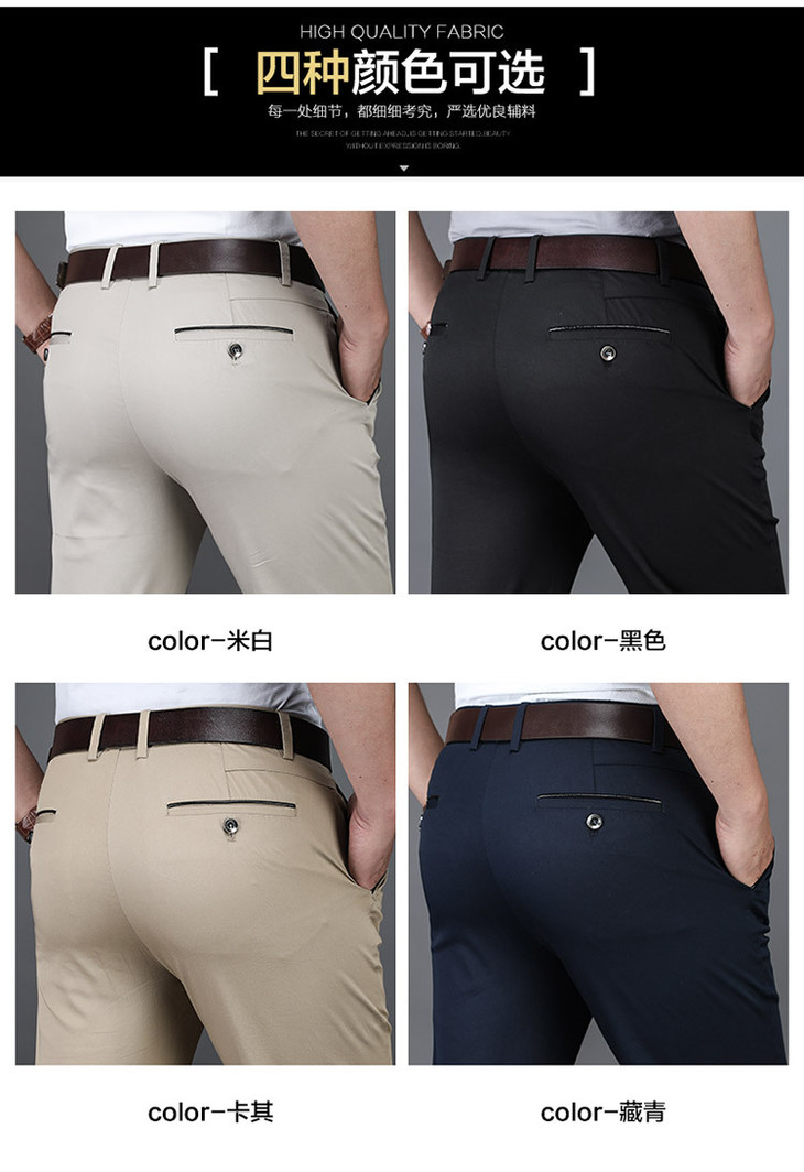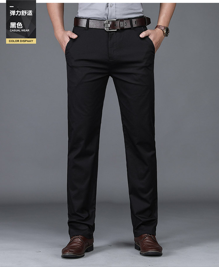秋冬纯棉休闲裤男商务宽松直筒弹力免烫西裤男高腰黑色裤子