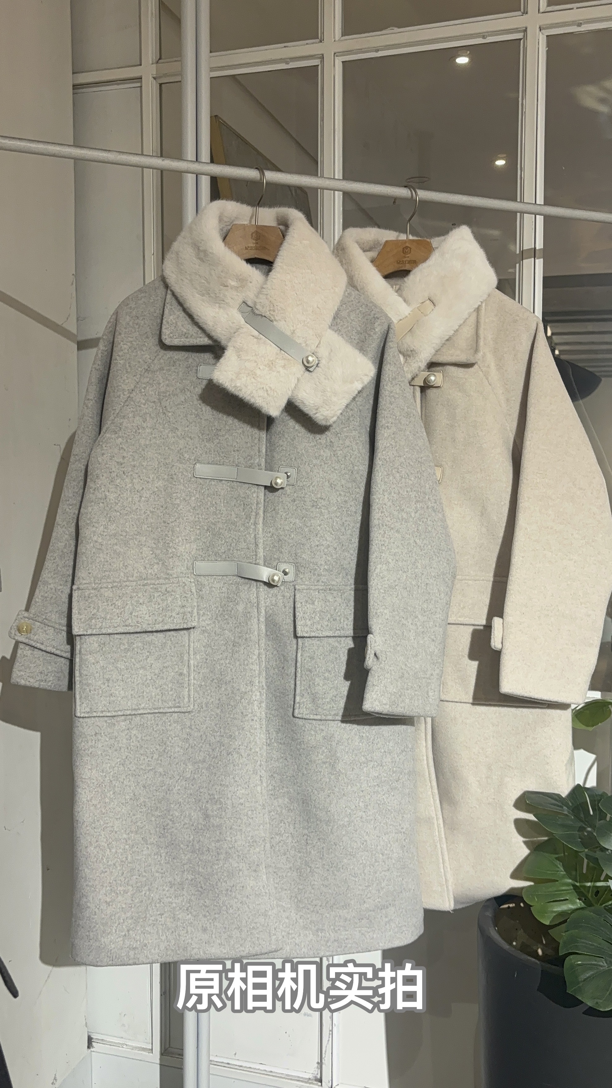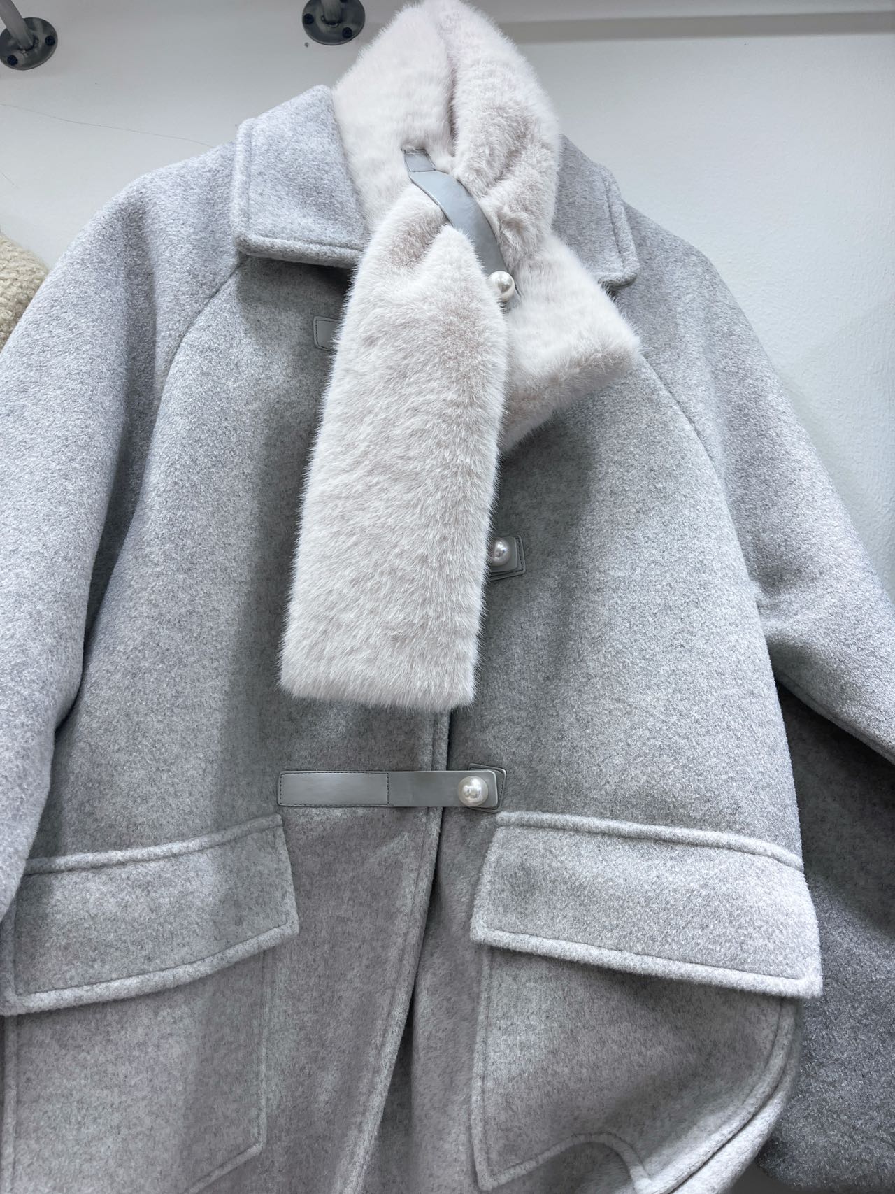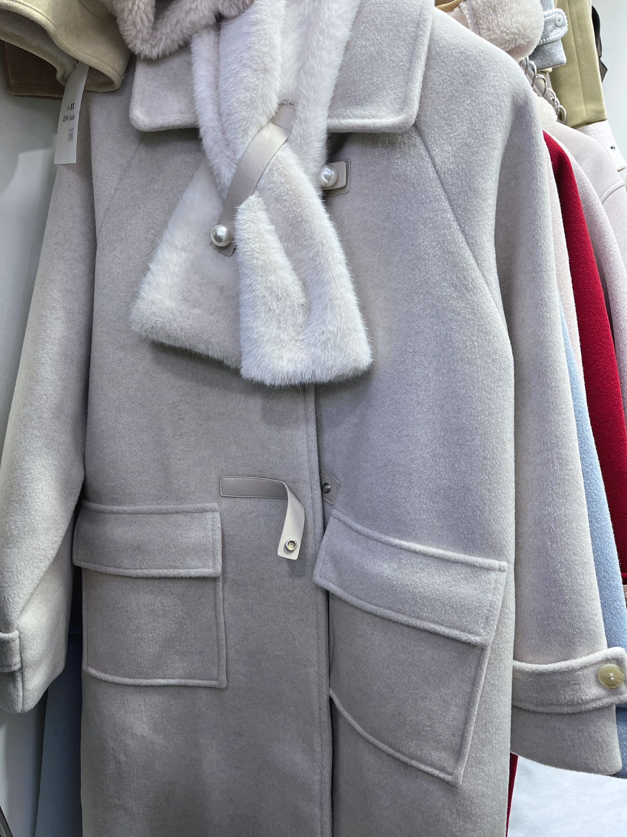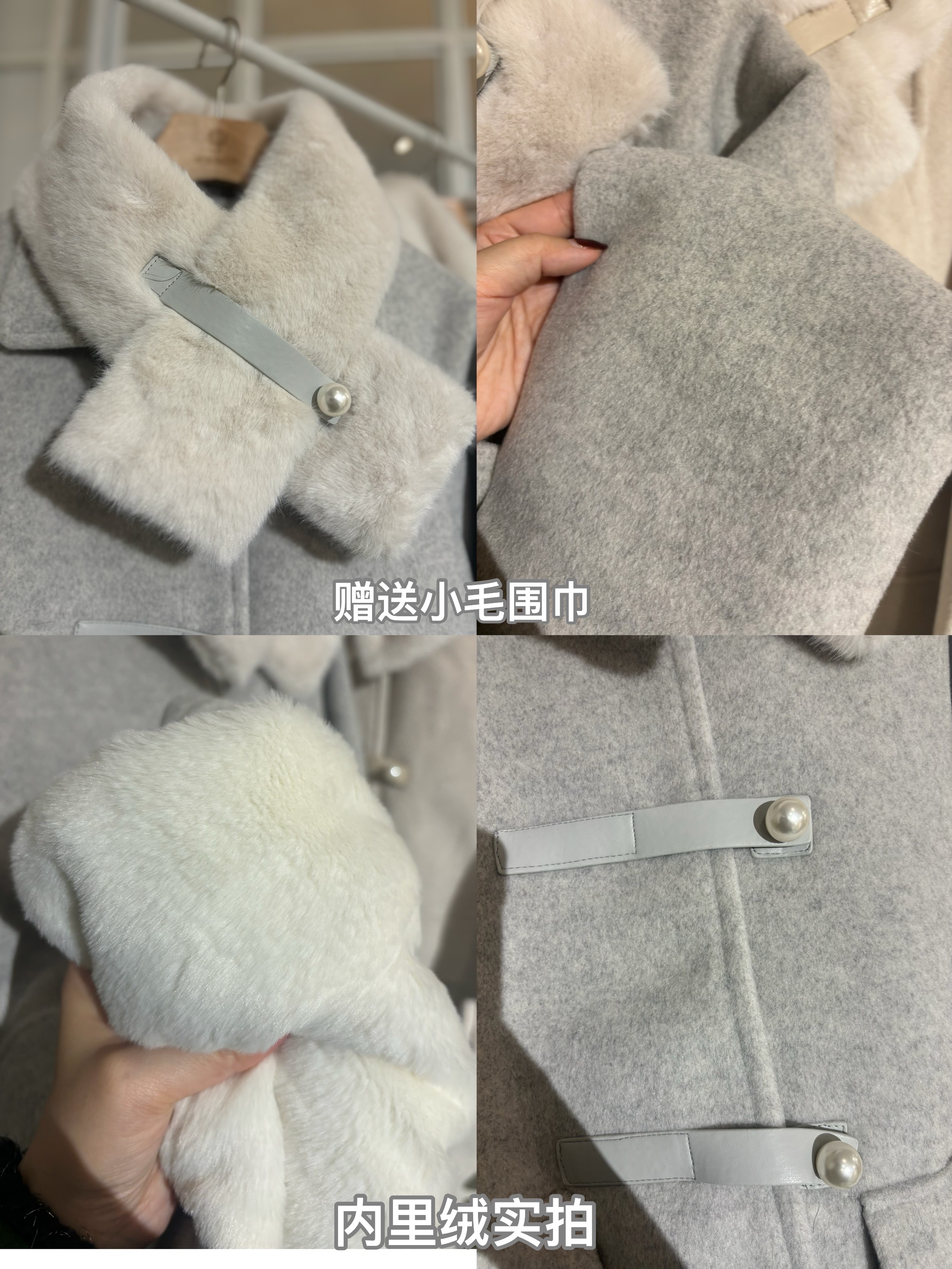 【GZ】无忧购法式温柔小香风珍珠纽扣毛毛围巾中长款毛呢外套9028# (截单后7天发货)25年清仓捡漏