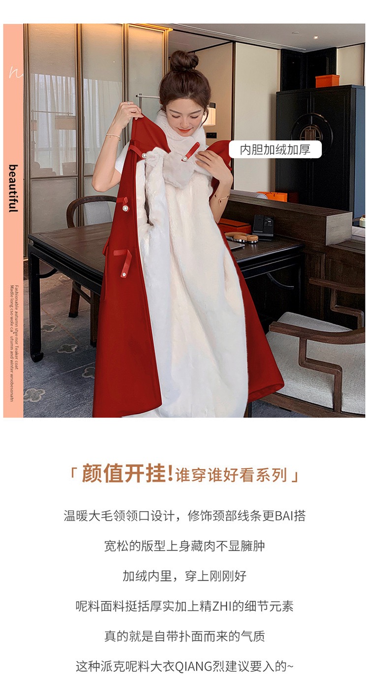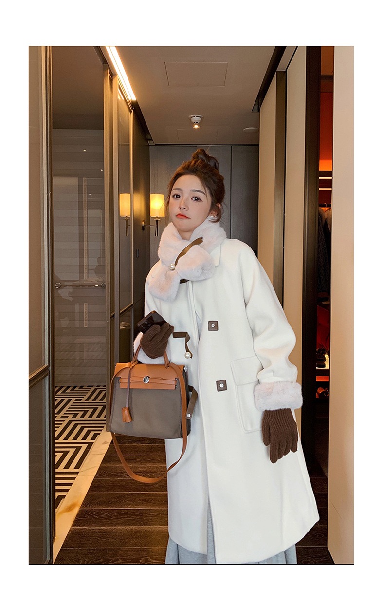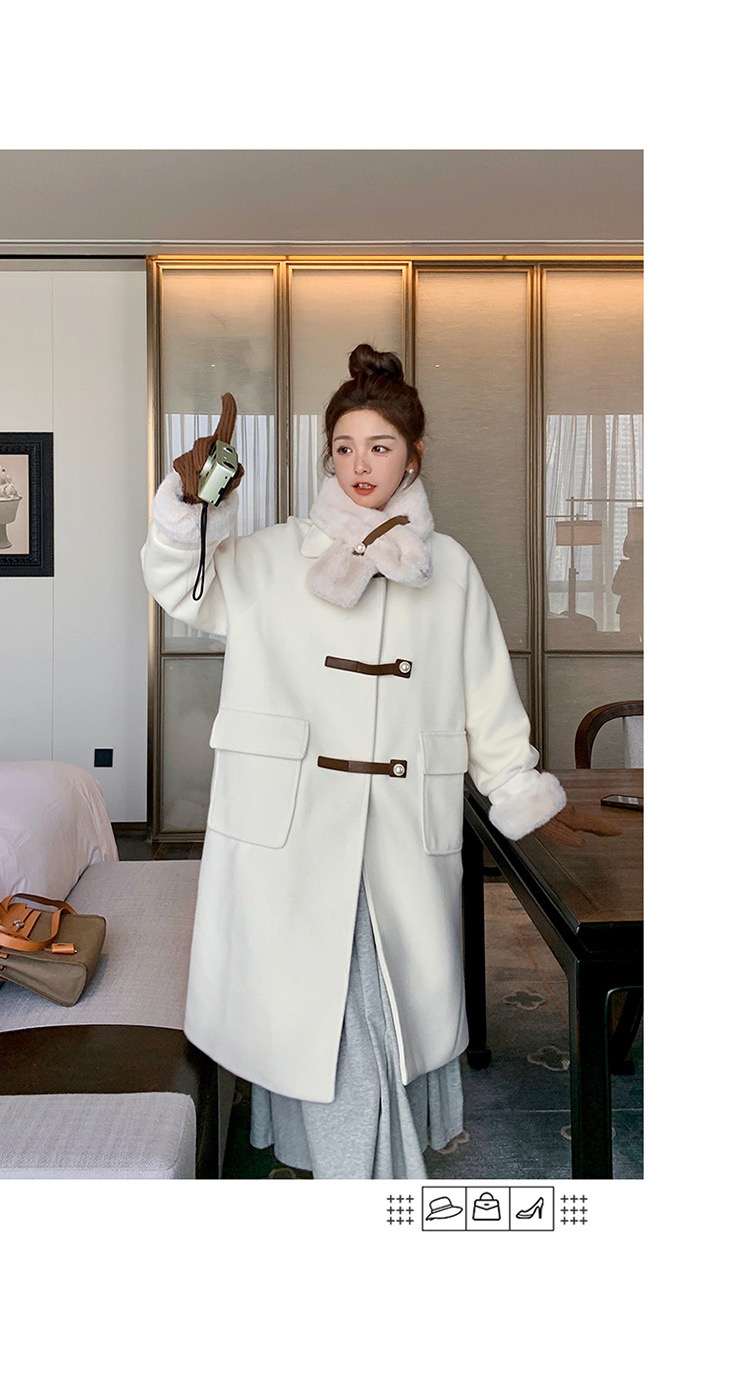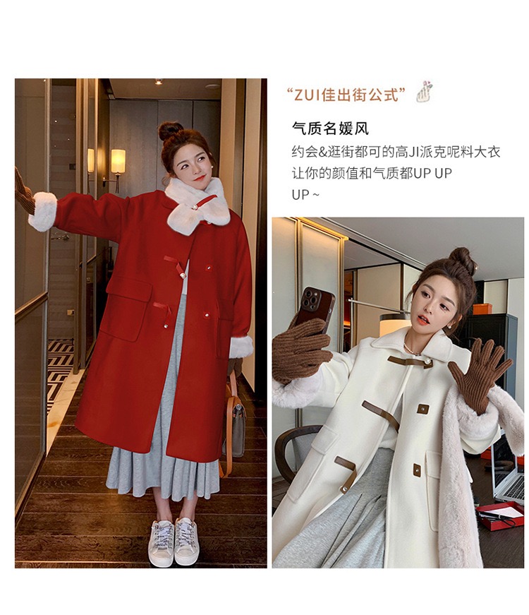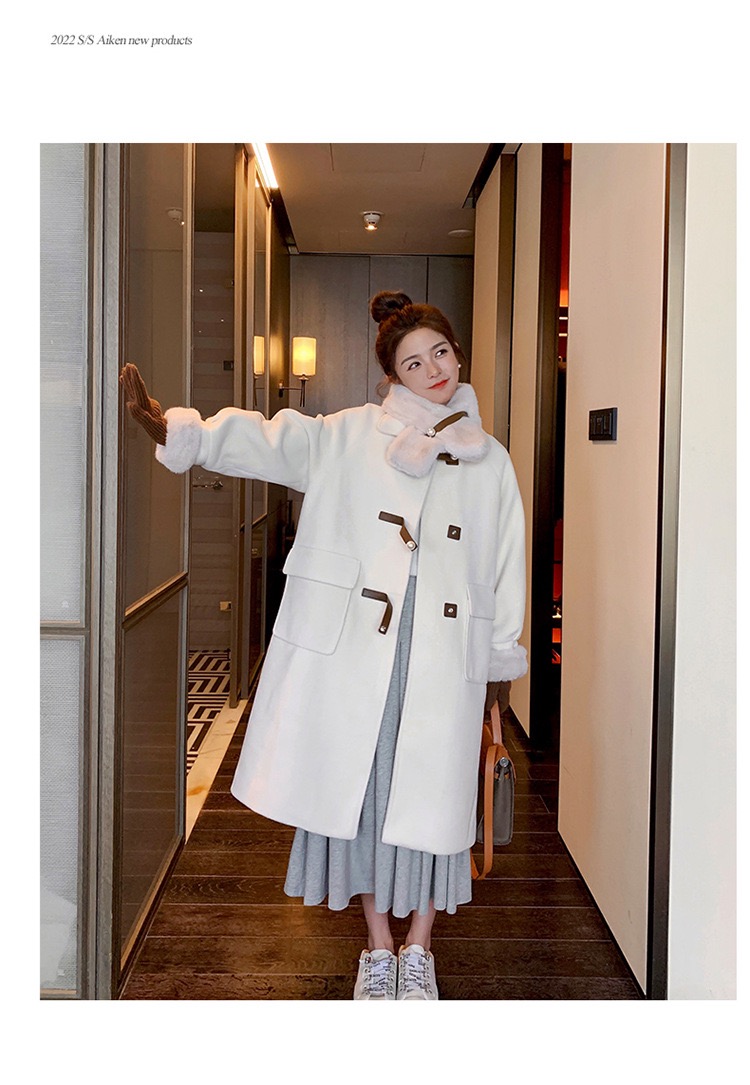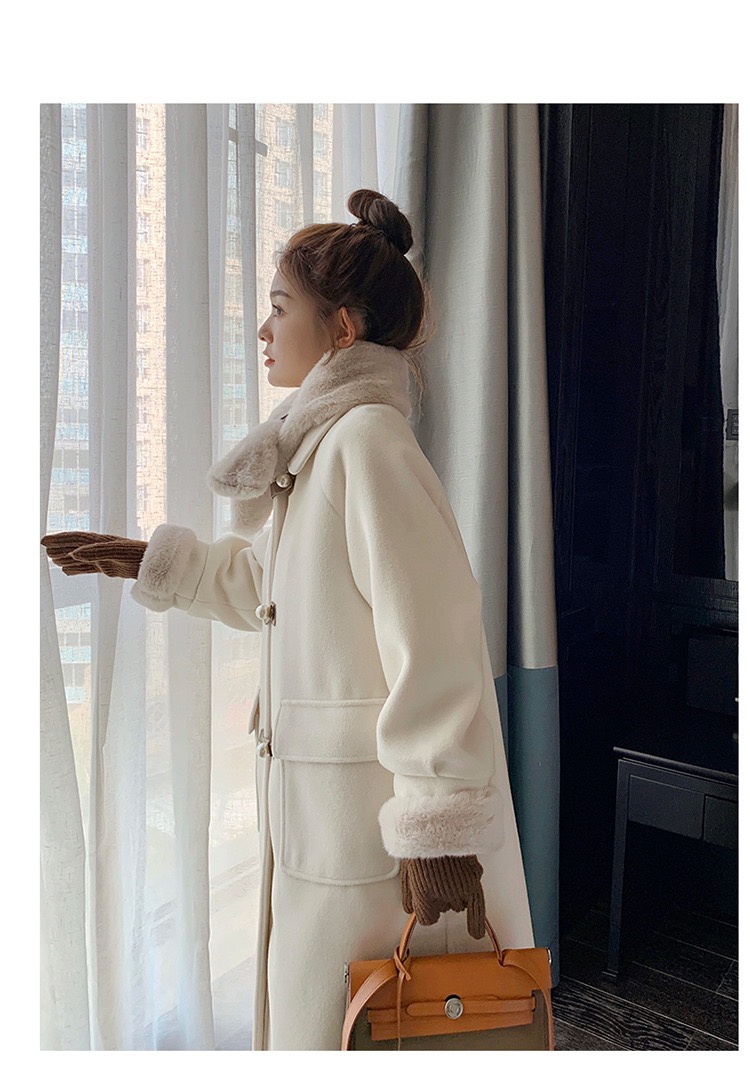 【GZ】无忧购法式温柔小香风珍珠纽扣毛毛围巾中长款毛呢外套9028# (截单后7天发货)25年清仓捡漏