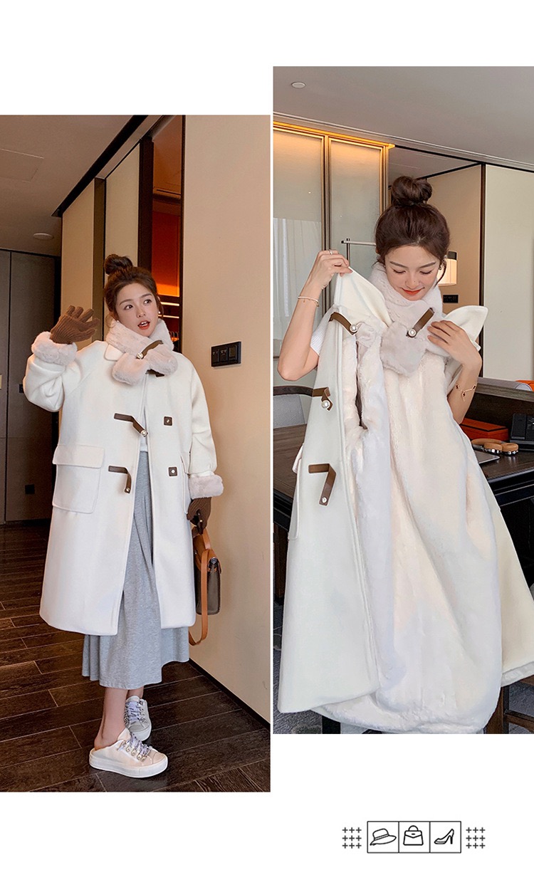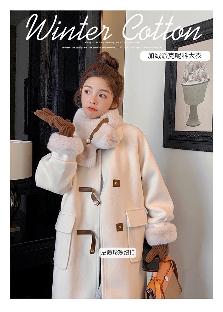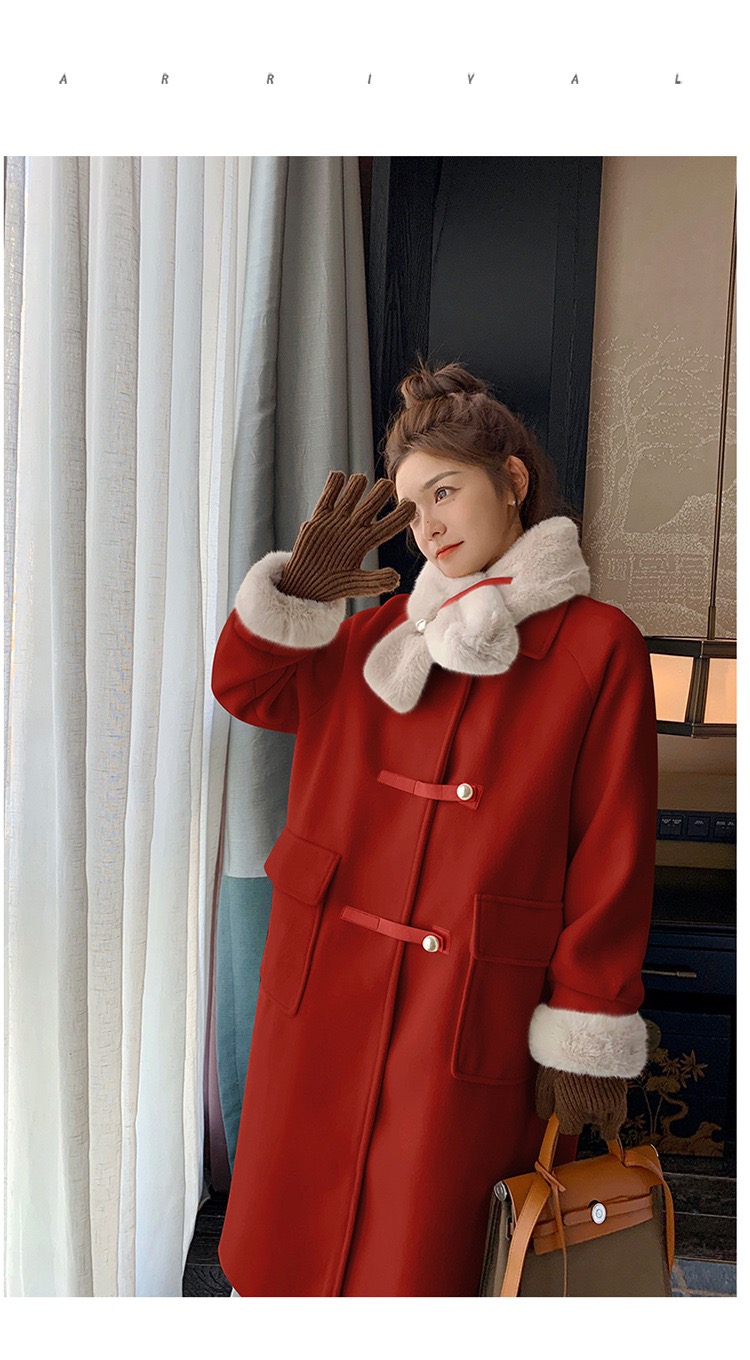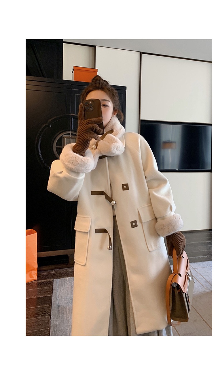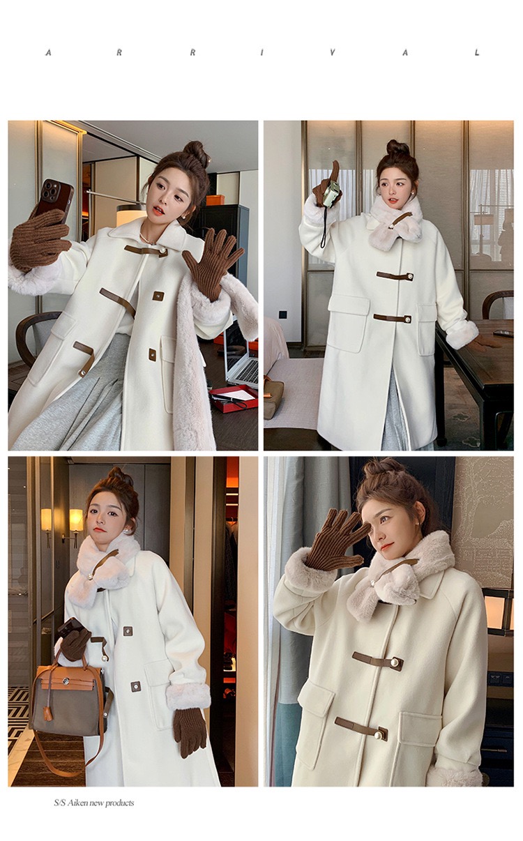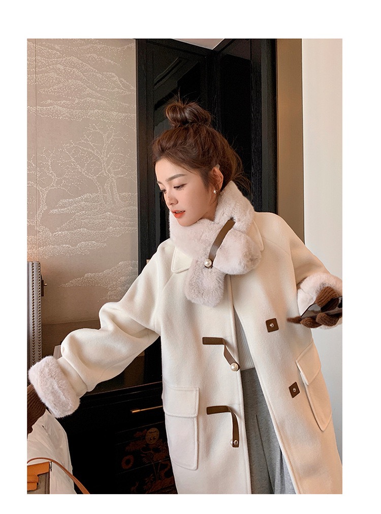 【GZ】无忧购法式温柔小香风珍珠纽扣毛毛围巾中长款毛呢外套9028# (截单后7天发货)25年清仓捡漏