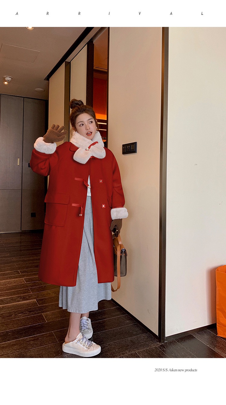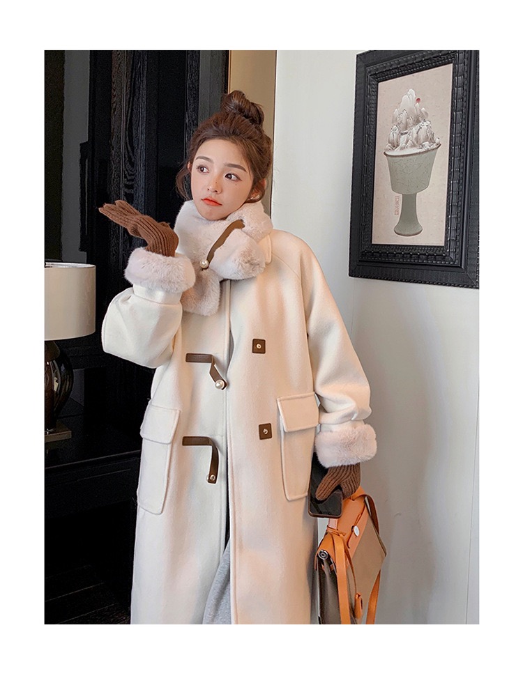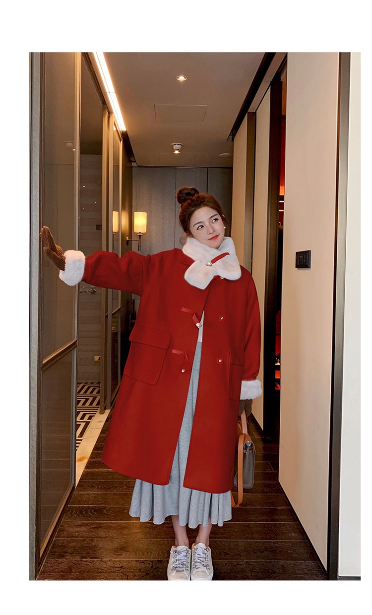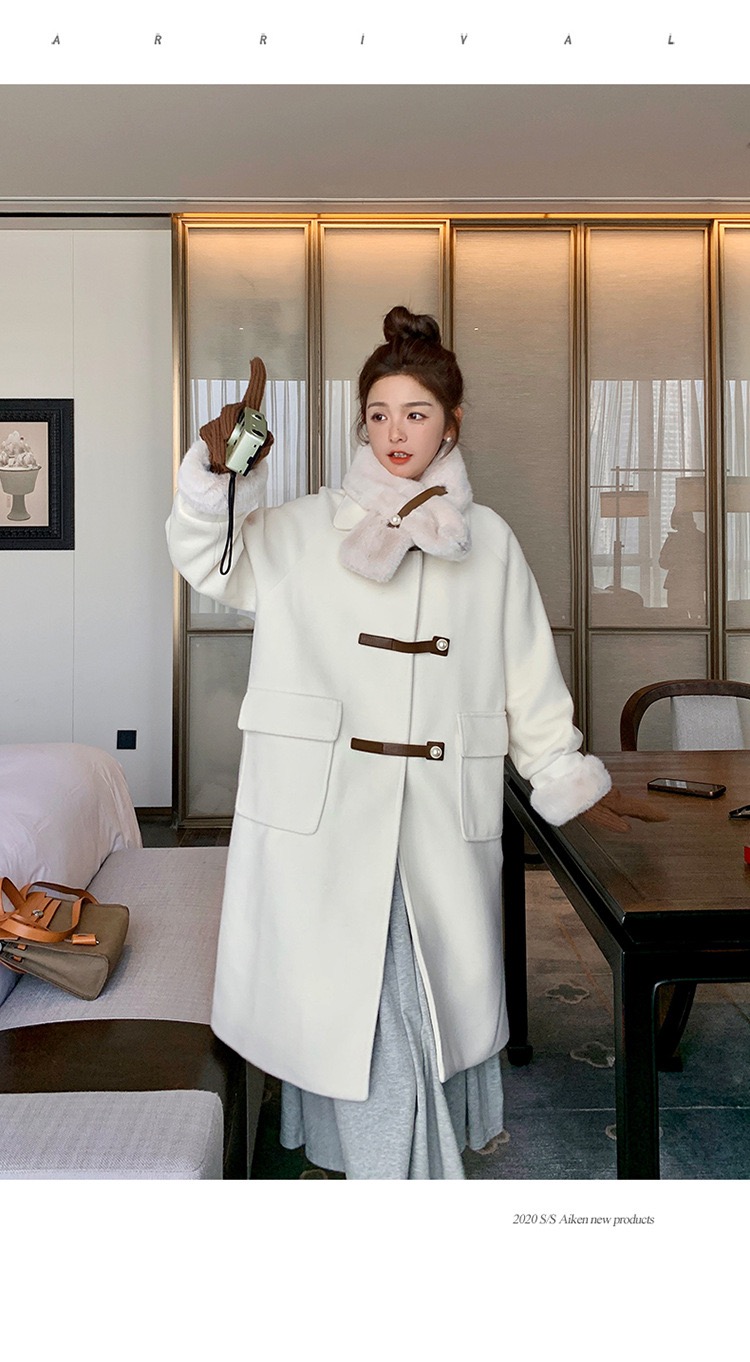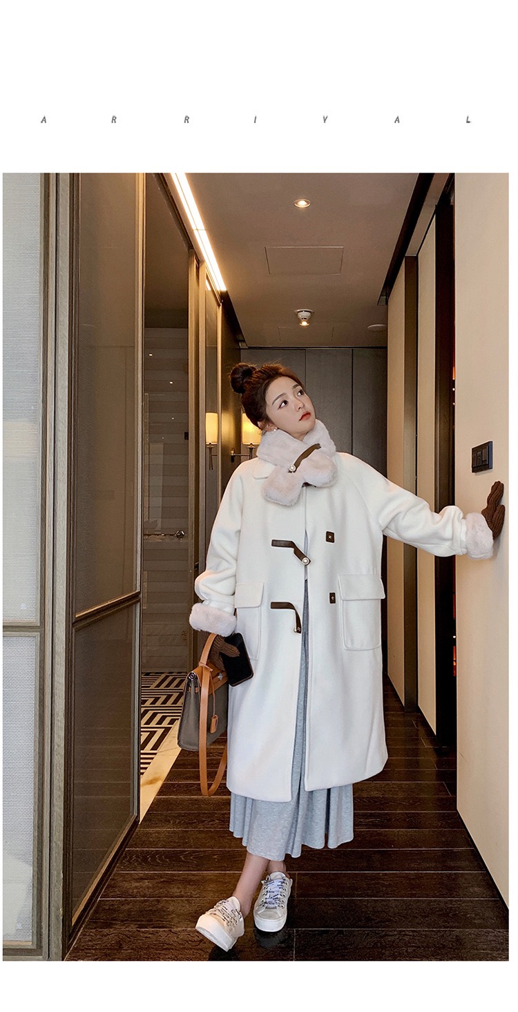 【GZ】无忧购法式温柔小香风珍珠纽扣毛毛围巾中长款毛呢外套9028# (截单后7天发货)25年清仓捡漏