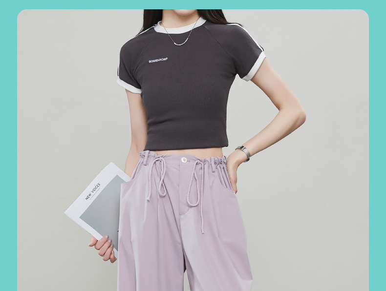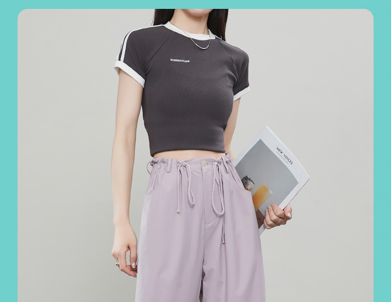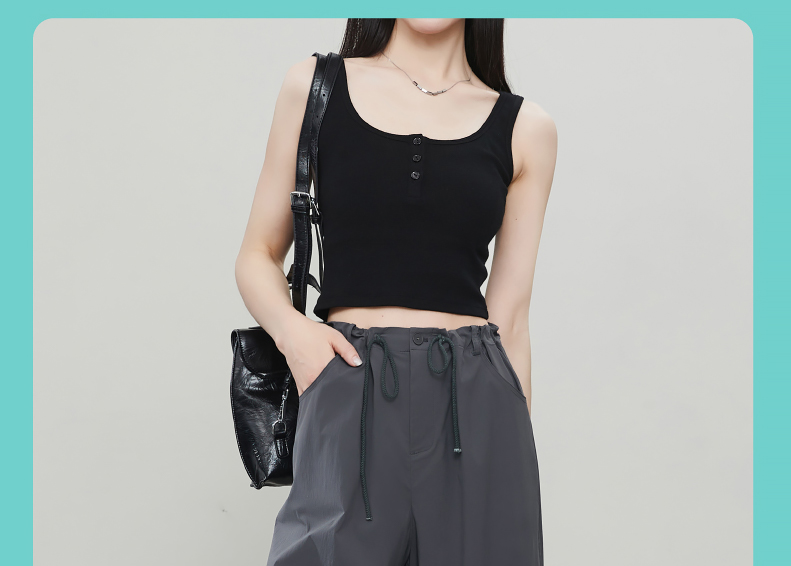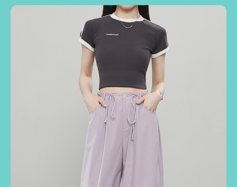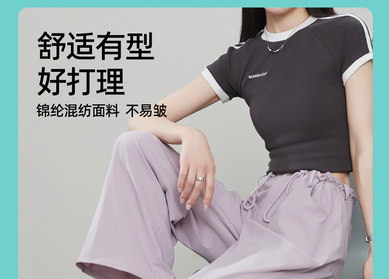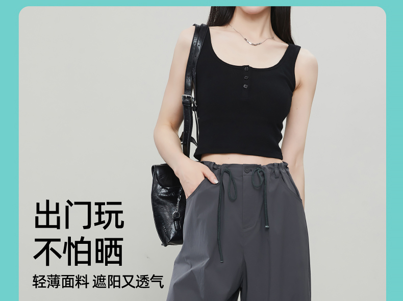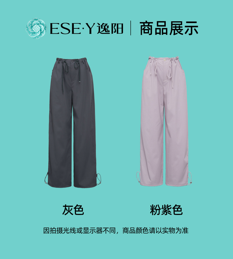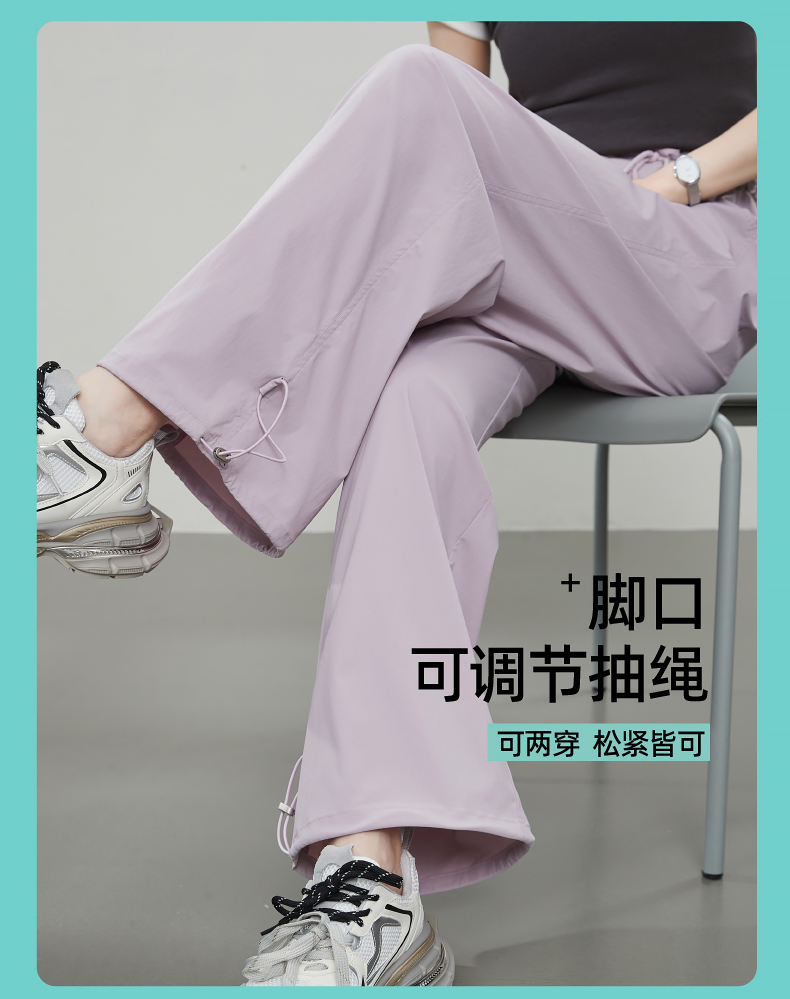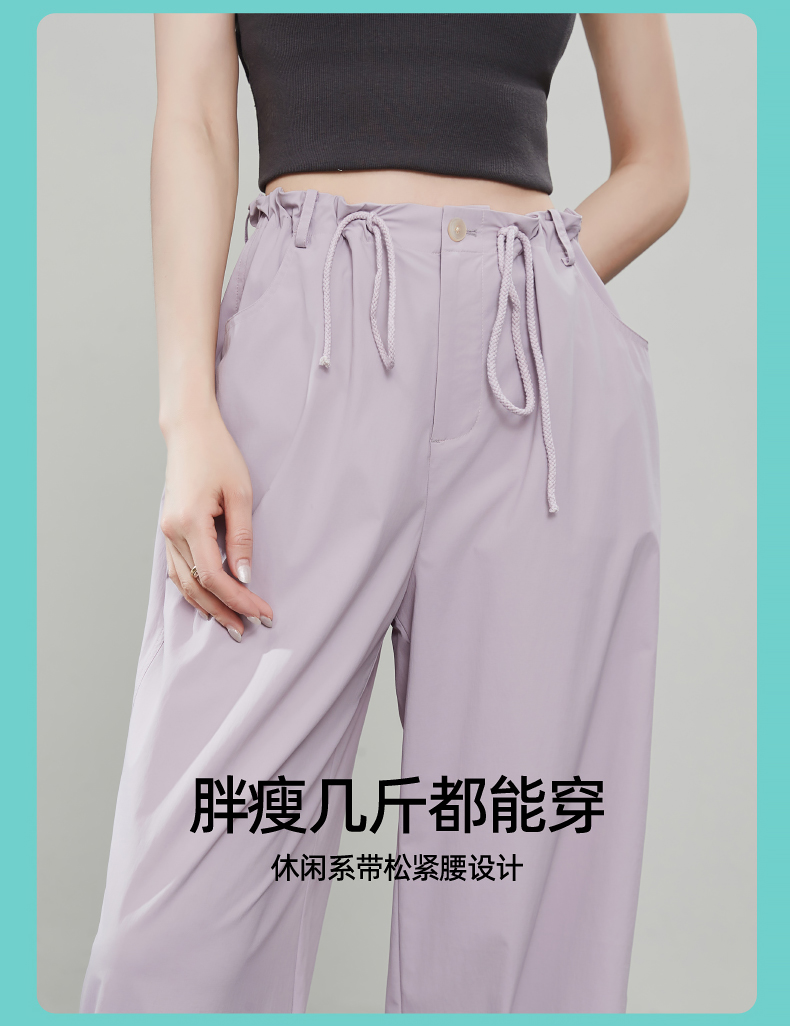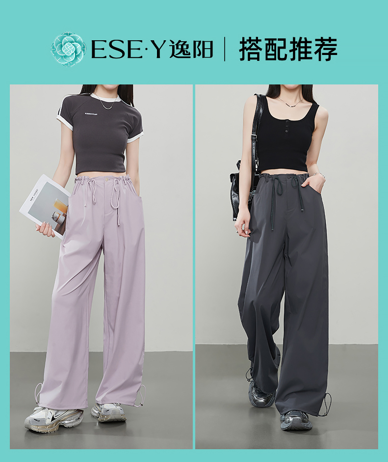 【时尚系带阔腿裤】逸阳夏薄美式工装阔腿运动束脚两穿休闲裤6161