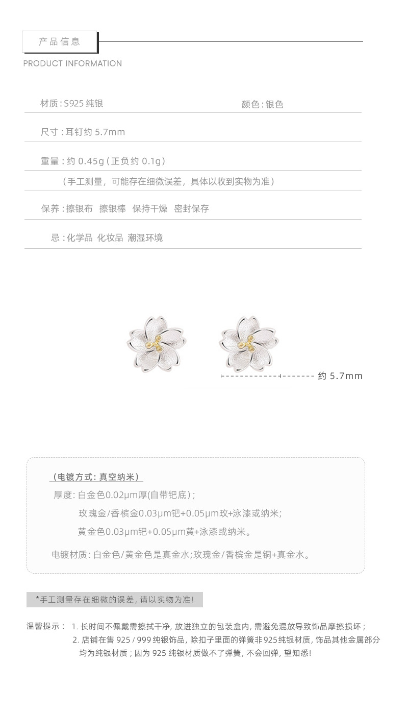 卡蒂罗/KADER 遇见桃花耳钉 在逃公主 新中式 花朵耳饰 精致大方 轻奢小众养耳洞睡觉免摘纯银配饰