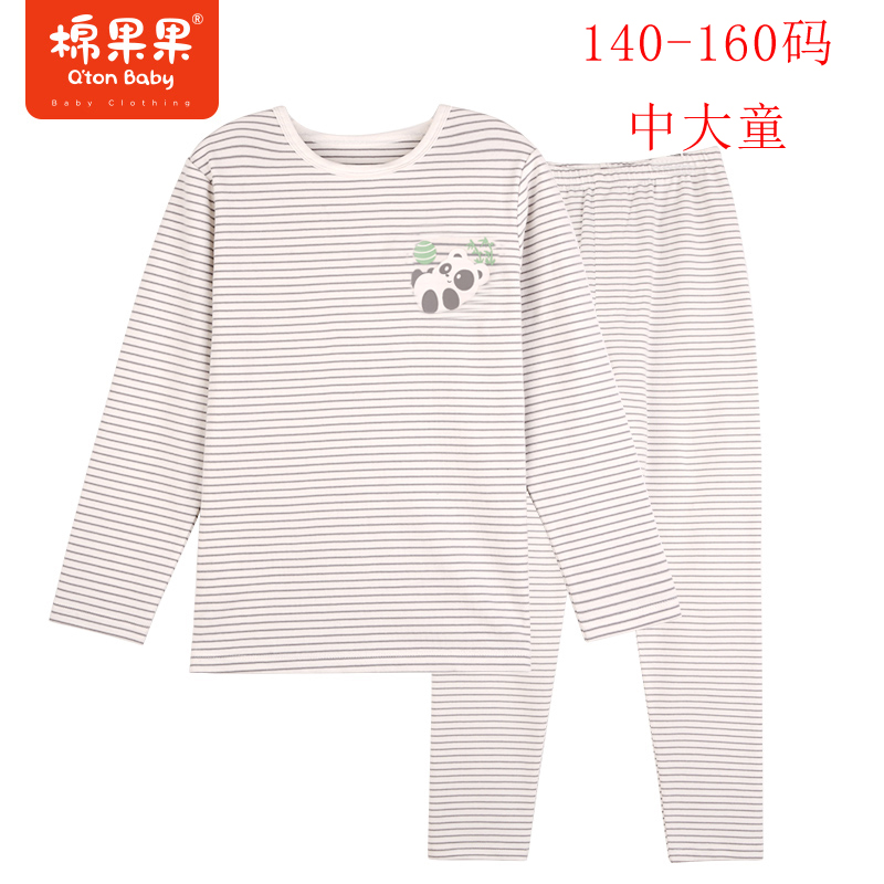 棉果果秋季新品男童罗纹弹力有机棉纱5A弹力修身140-160码中大童抗菌家居套头套装M311302223519