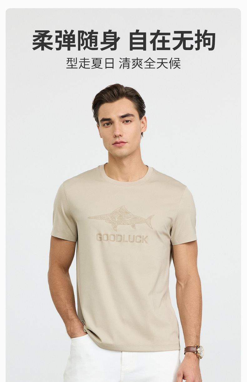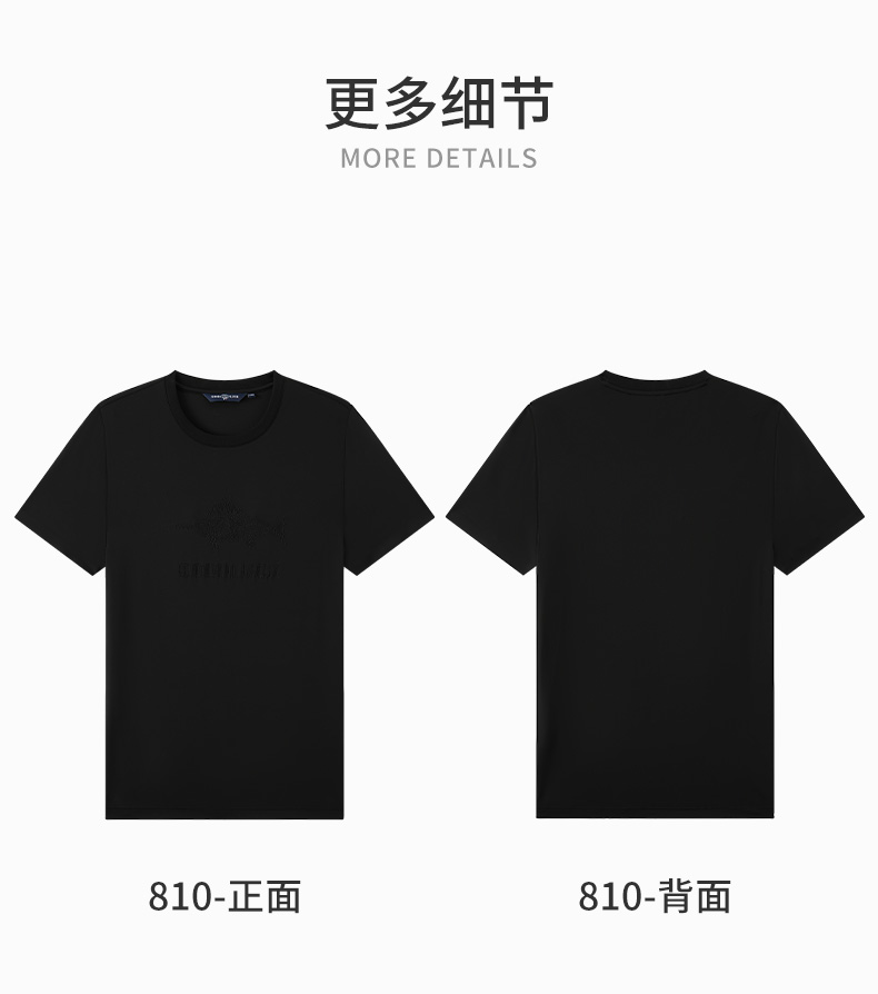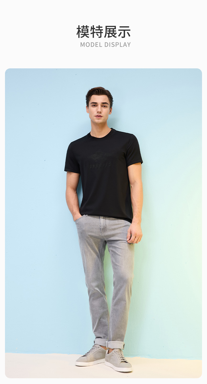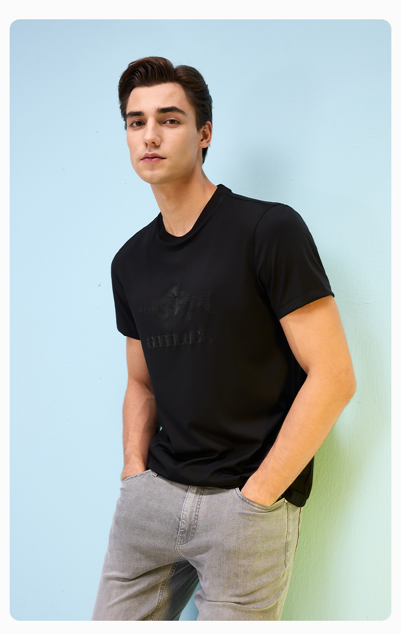 【高弹】德鲨黑色短袖圆领T恤男2026夏季新款休闲百搭上衣打底衫