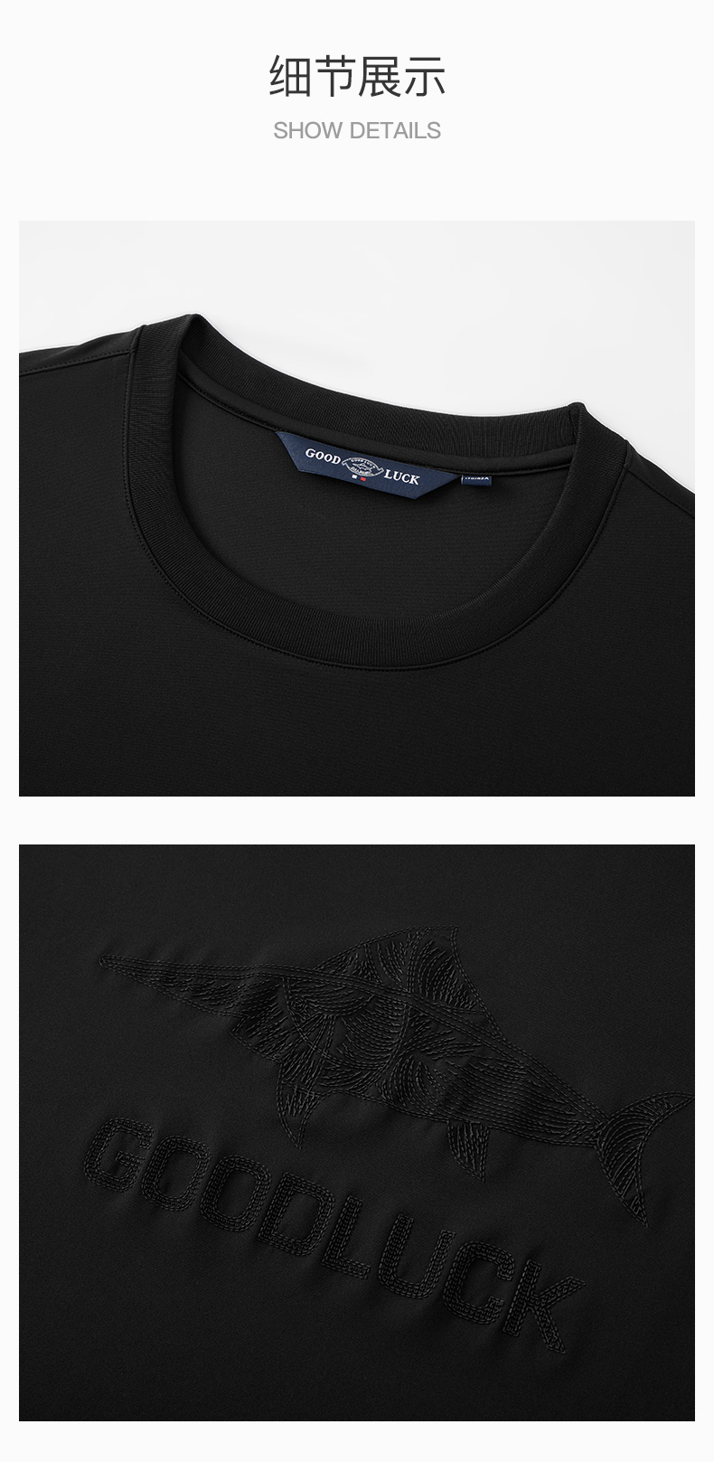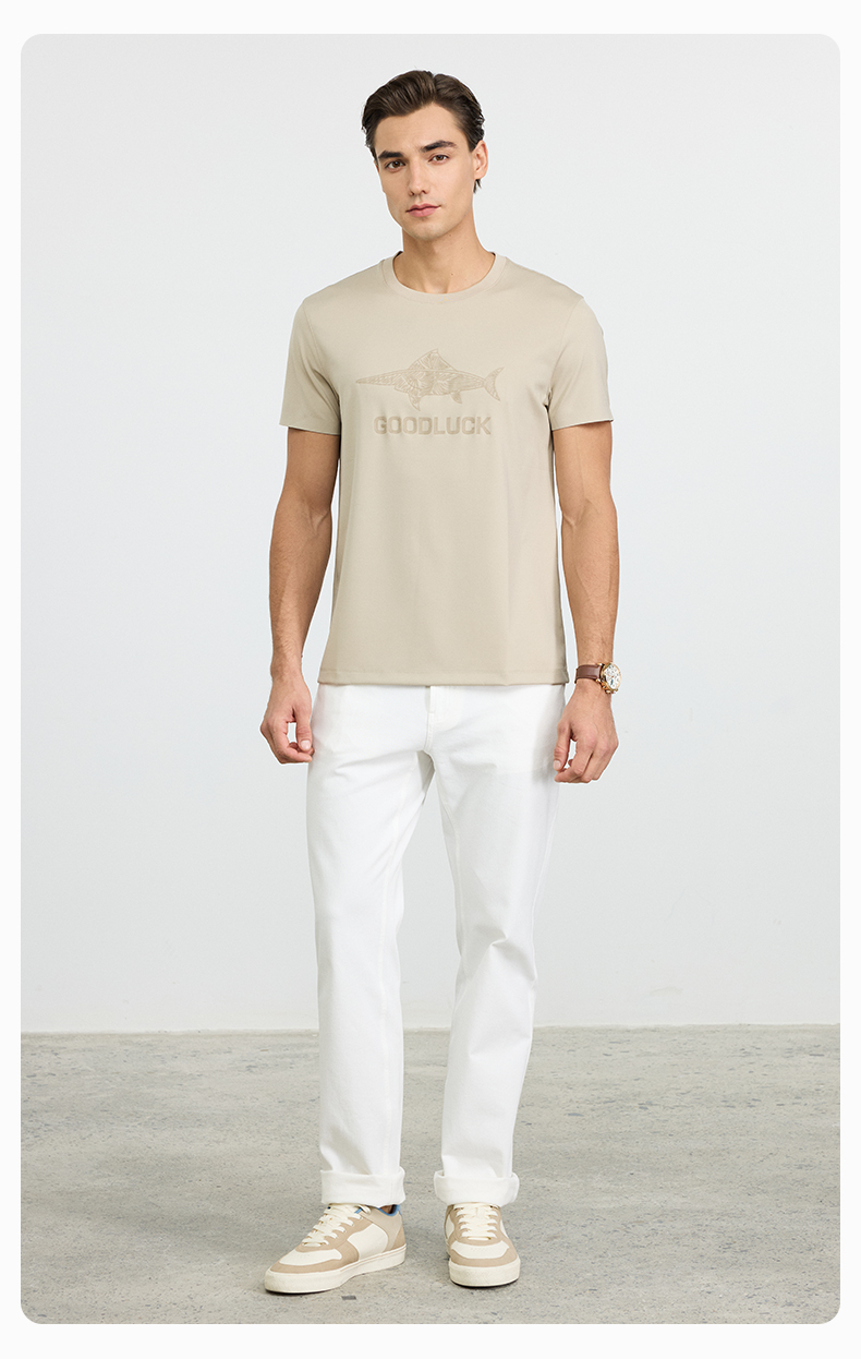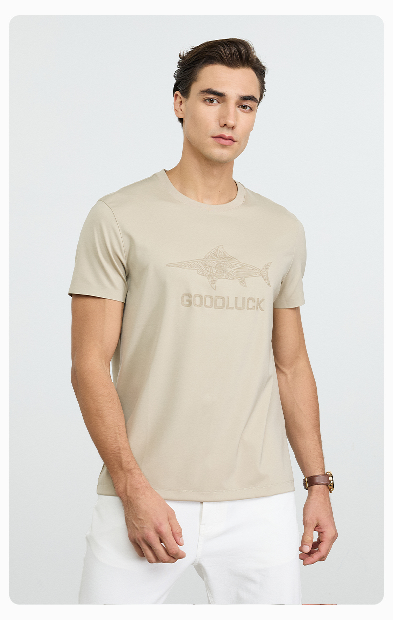 【高弹】德鲨黑色短袖圆领T恤男2026夏季新款休闲百搭上衣打底衫