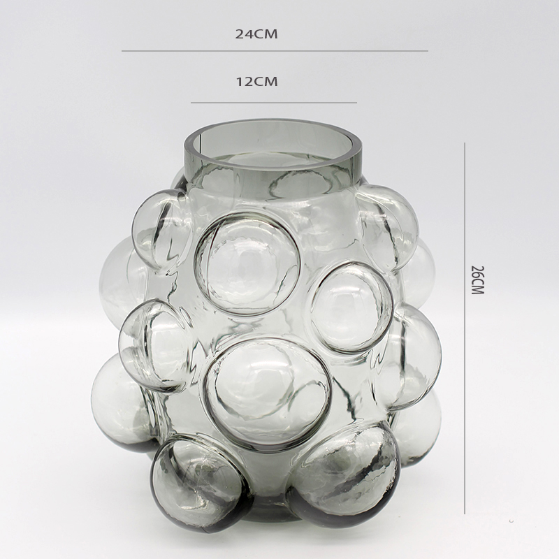 西班牙设计师经典款轻奢烟熏灰叶子造型浮雕纹理玻璃花瓶软装花器