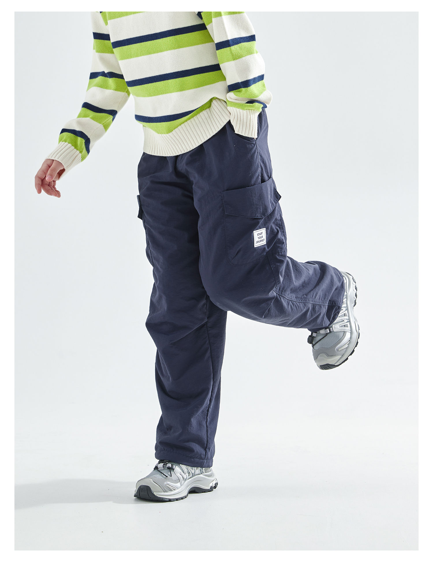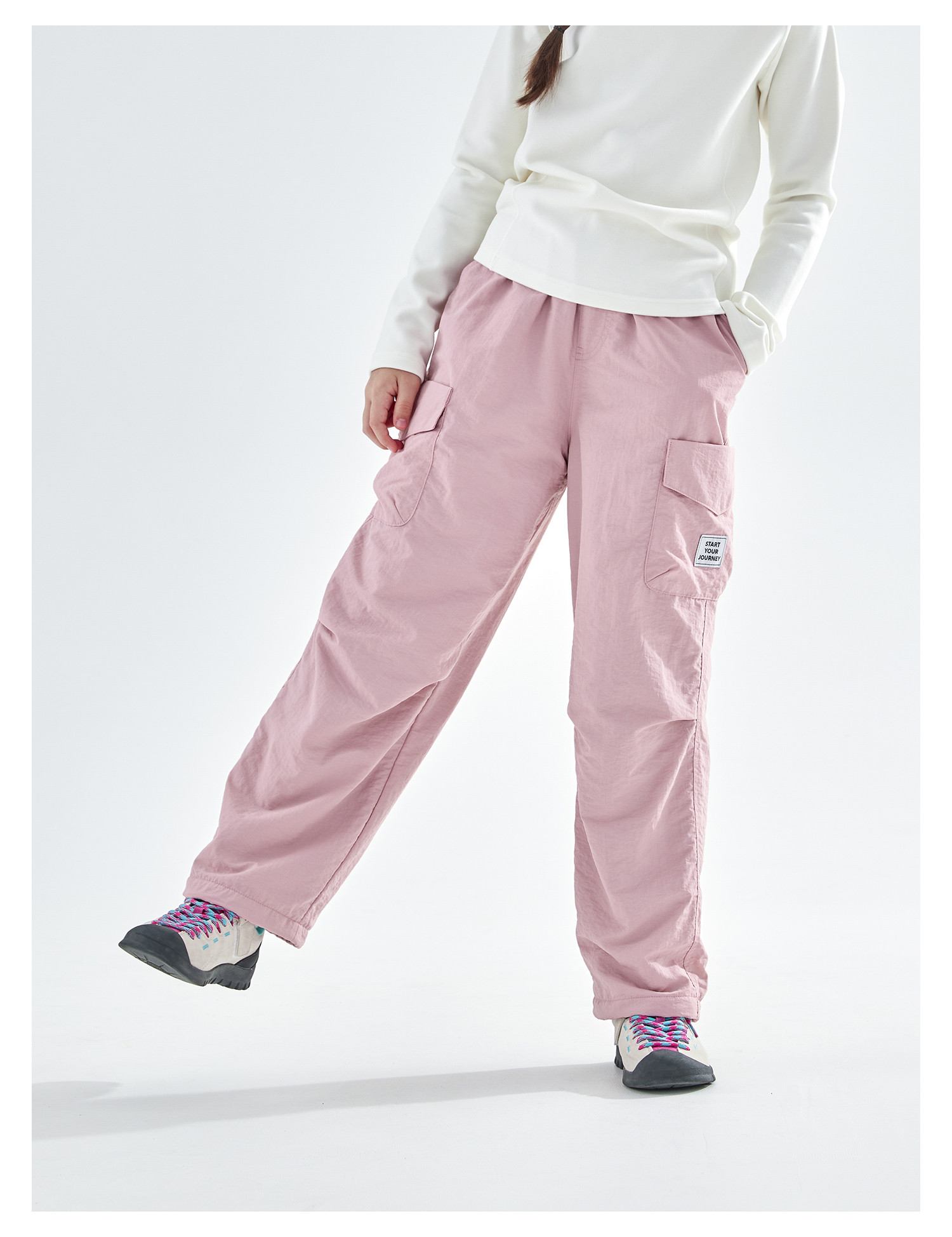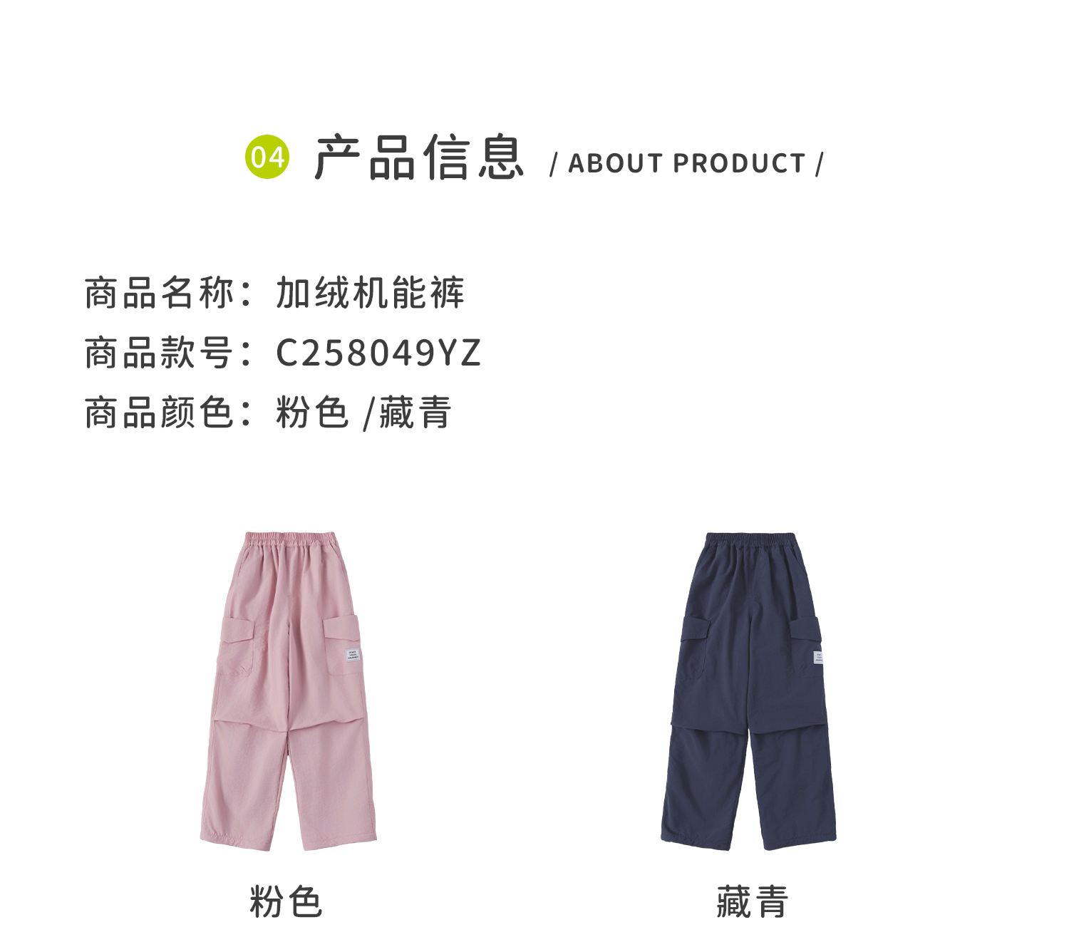 cicochild25冬季新款亲子中大童加绒直筒机能裤防泼水运动工装裤