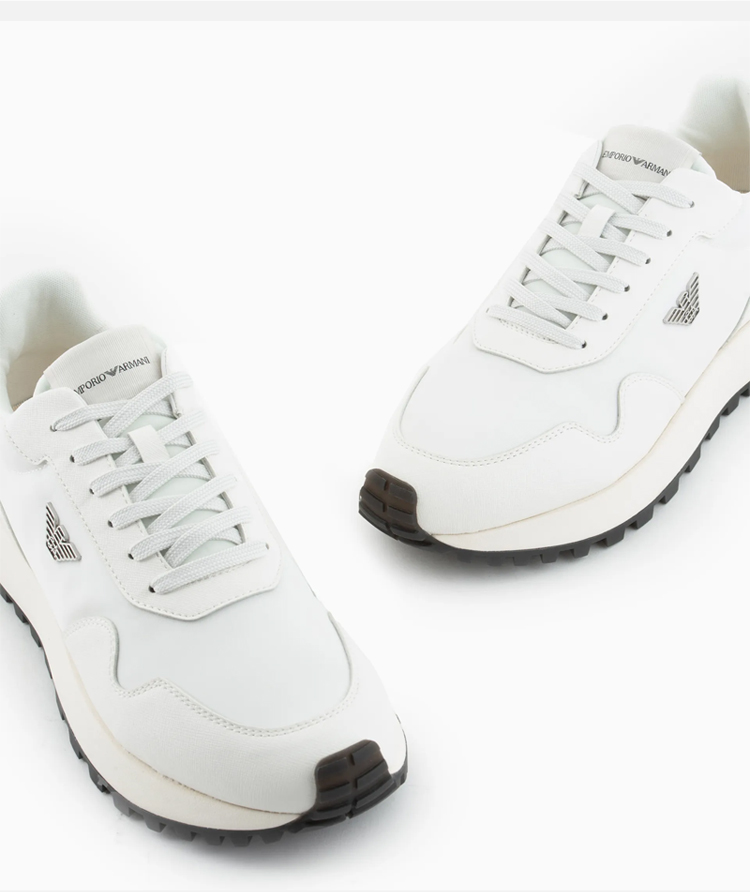 EMPORIO ARMANI 阿玛尼 男士再生尼龙老鹰徽标休闲运动鞋 米色 X4X630 XN877 M801