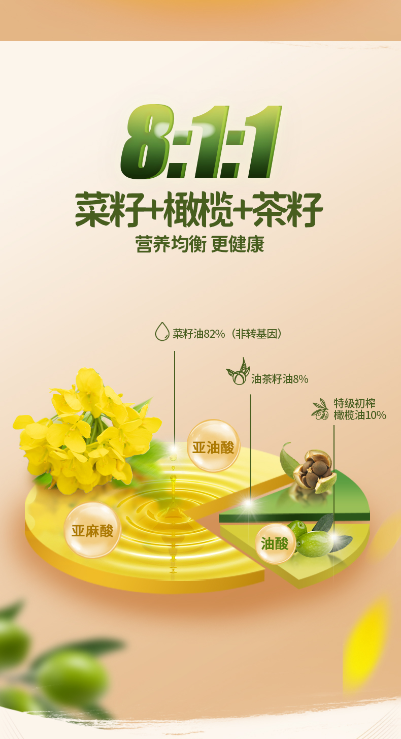 【严选】合鑫泰 妙培 菜籽+橄榄+茶籽营养均衡调和油 添加10%特级初榨橄榄油 添加8%油茶籽油 茶籽橄榄食用调和油5L (厂家直发)