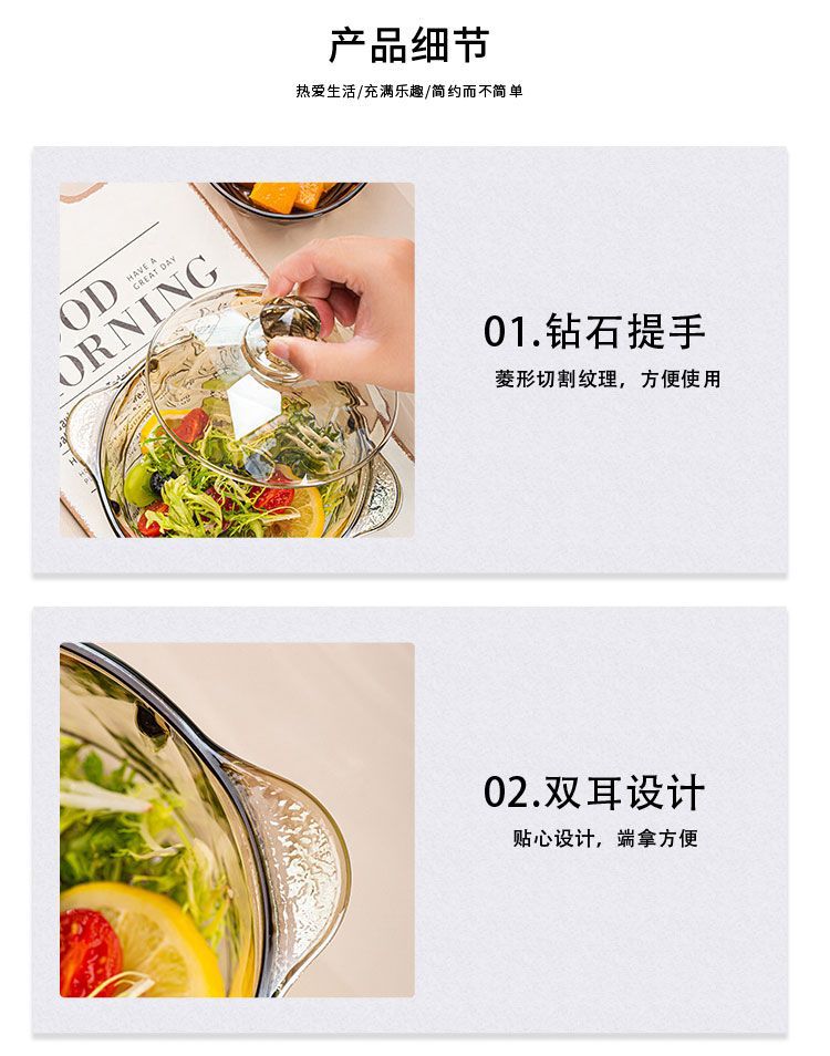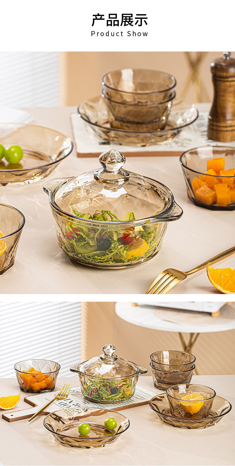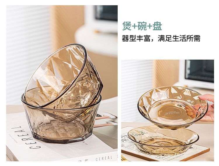 「轻奢风!4只装」硼硅耐热茶色钻石玻璃米饭碗 简约高颜值透明玻璃碗家用沙拉碗餐饮用具