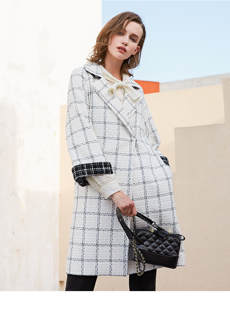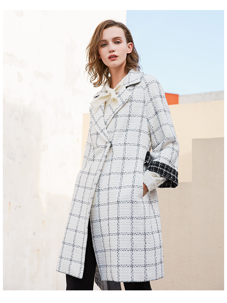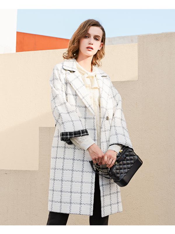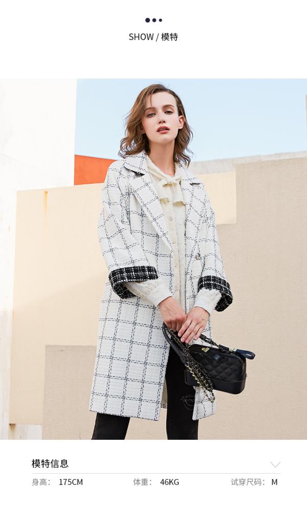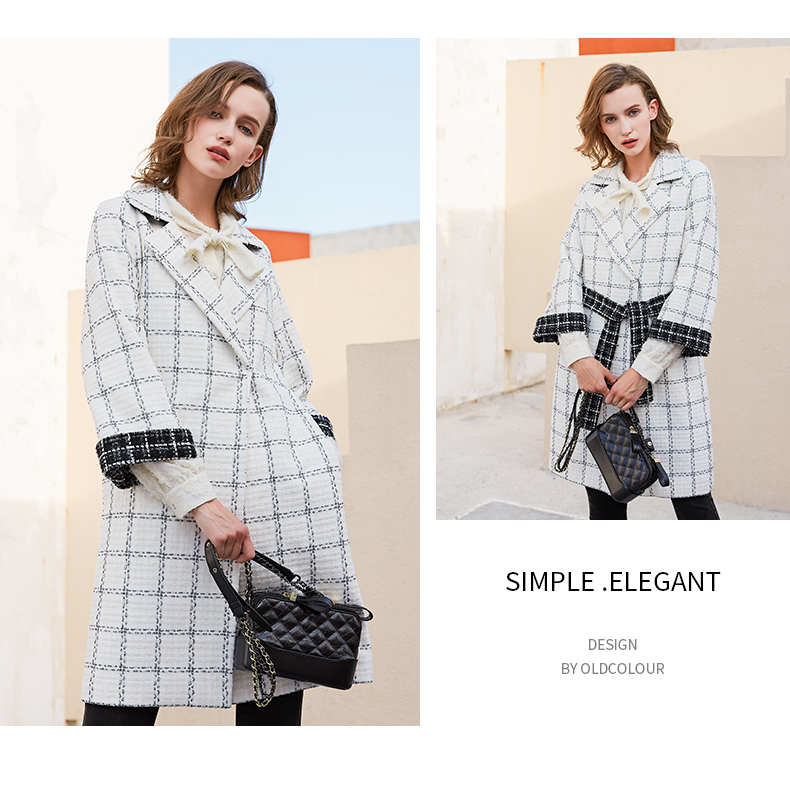 oldcolour2019冬季新品商场同款格子长款毛呢大衣L41153181