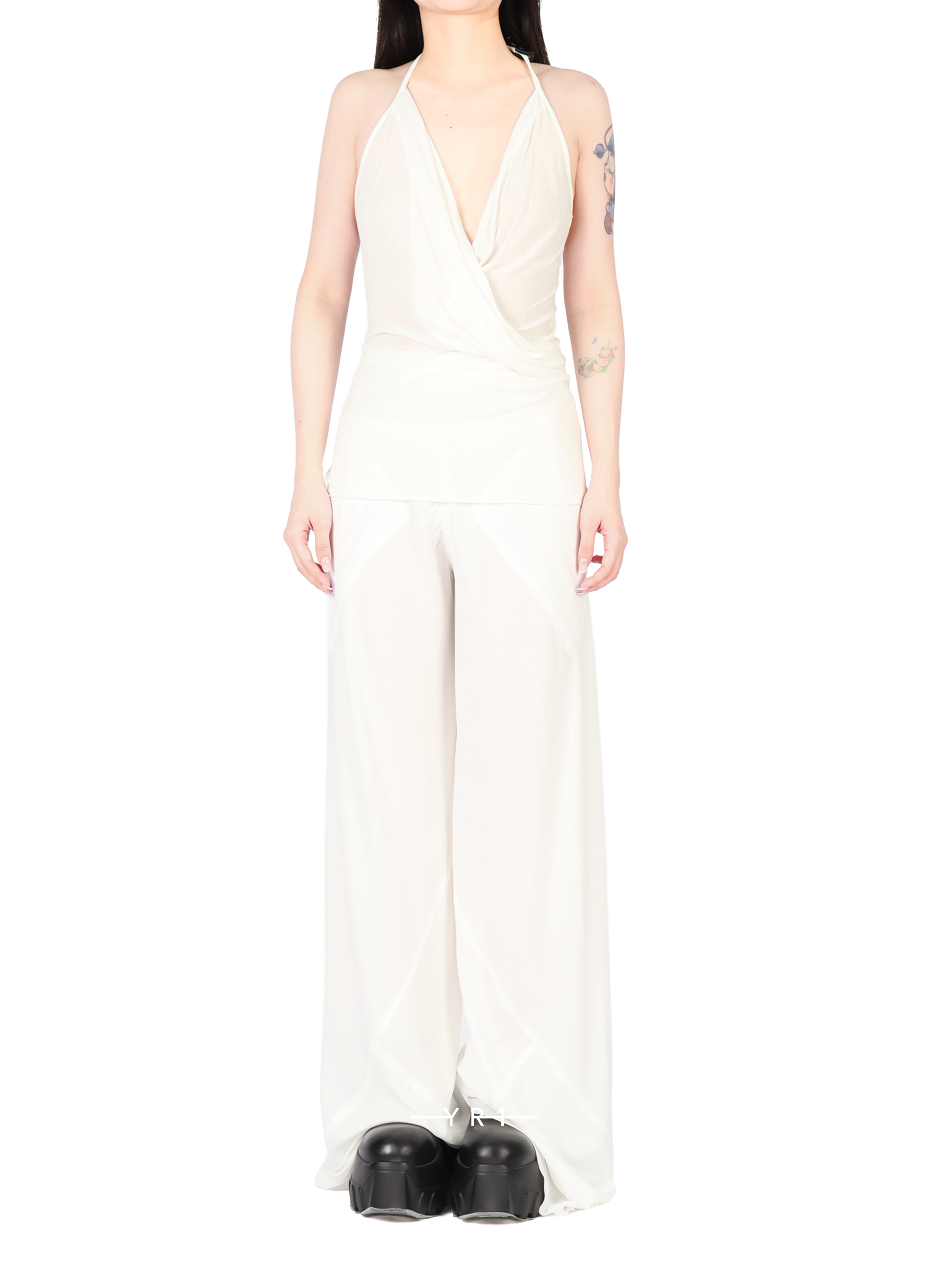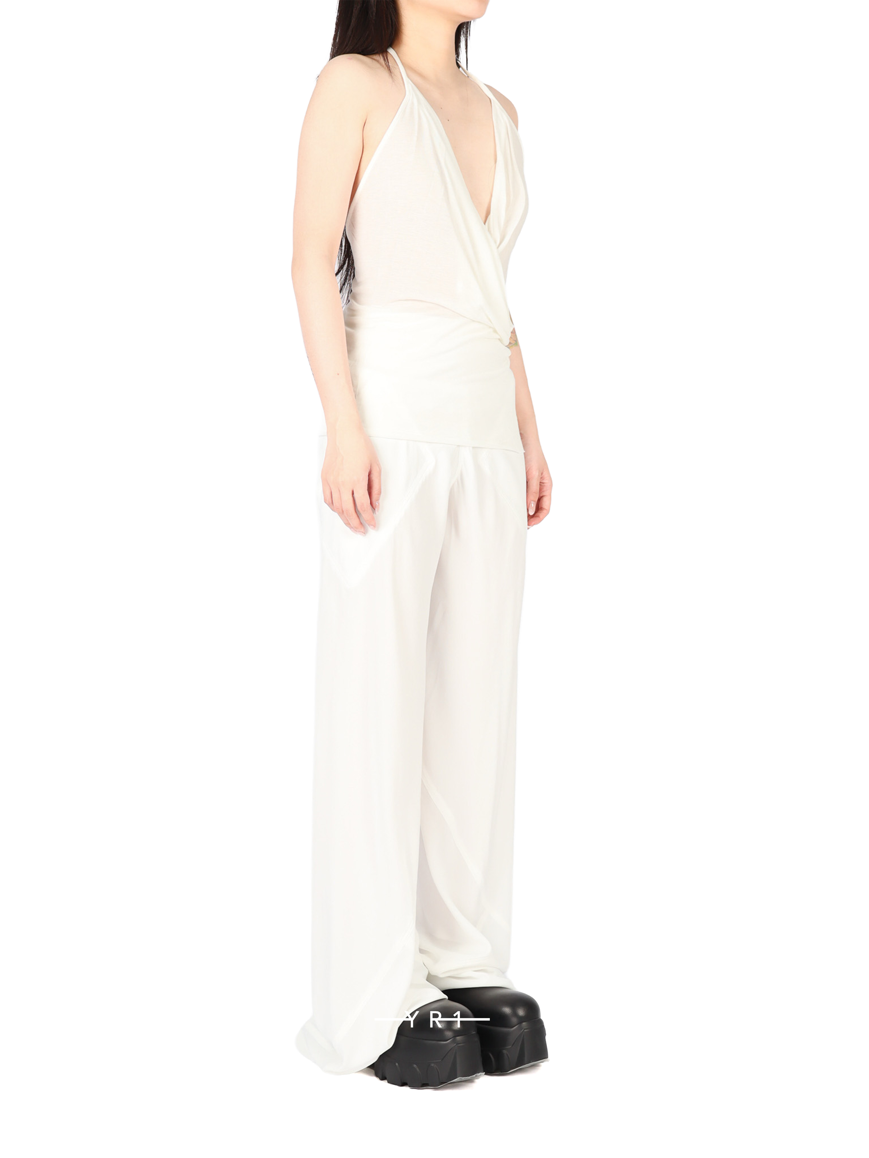 TEMPLE 白色挂脖露背背心