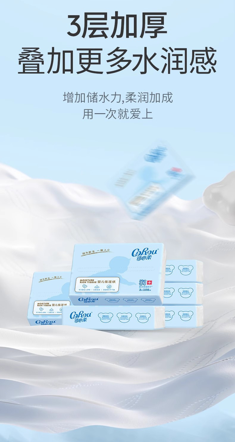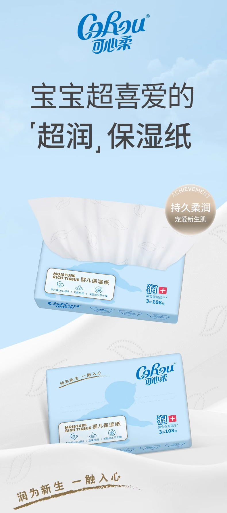 可心柔V9润+宝贝系列软抽 108抽 18包/箱 V9180