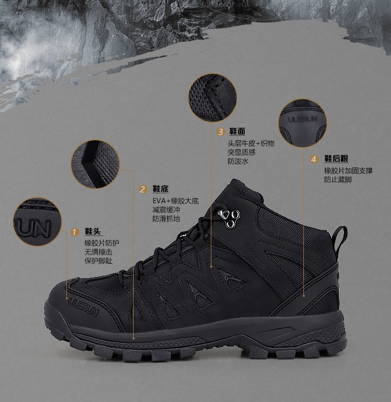 【199秒杀】悍途户外登山鞋男高帮保暖透气耐磨轻便徒步鞋减震越野鞋