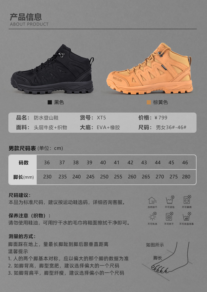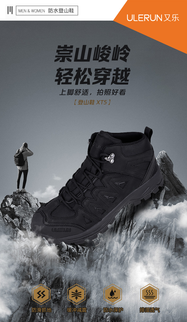 【又乐】户外登山鞋时尚徒步鞋防水中帮减震防滑耐磨XT5