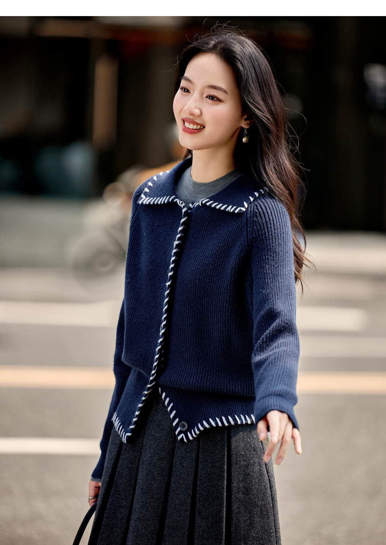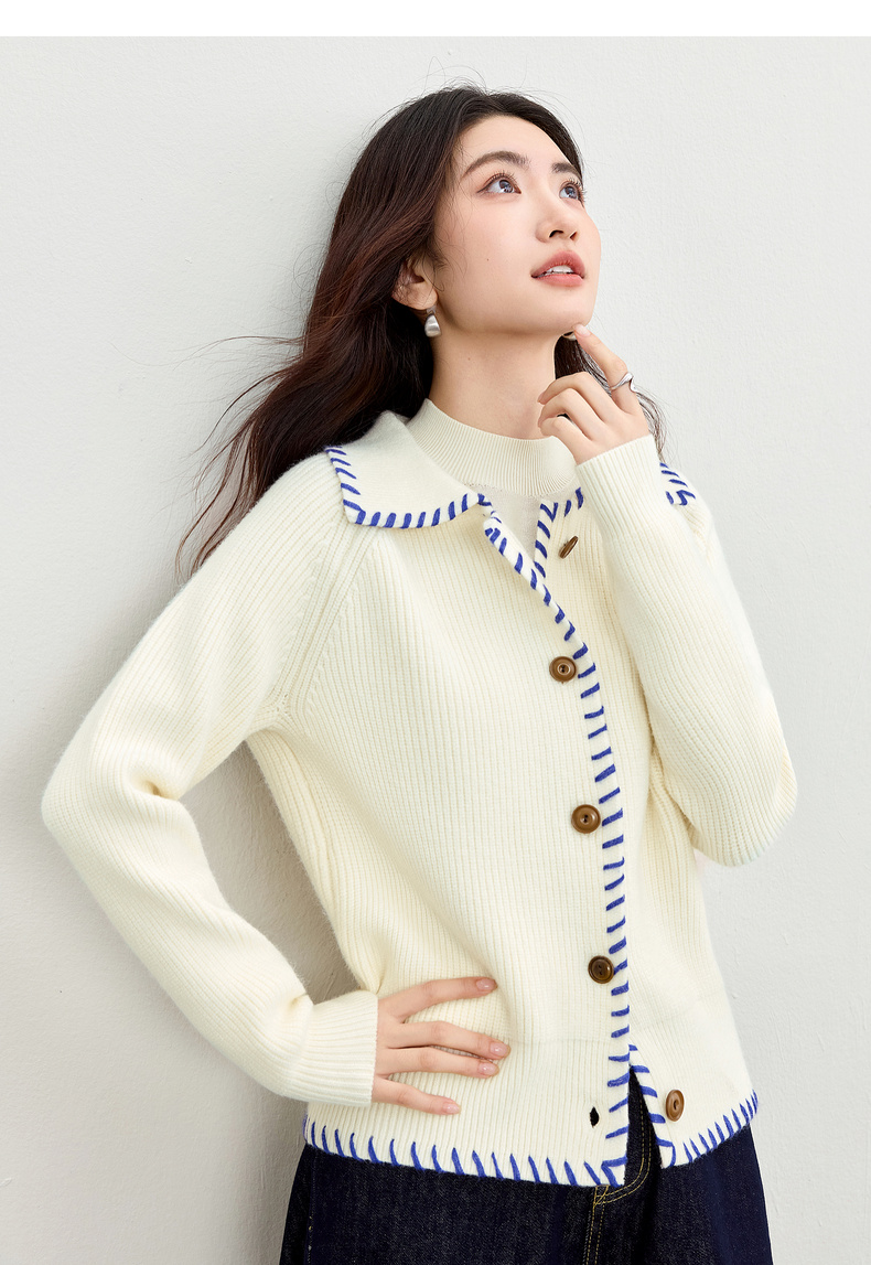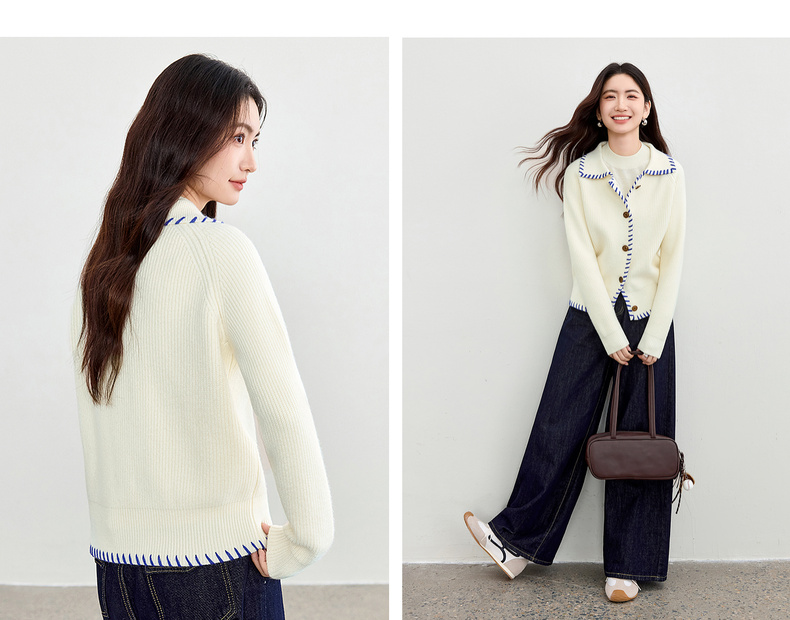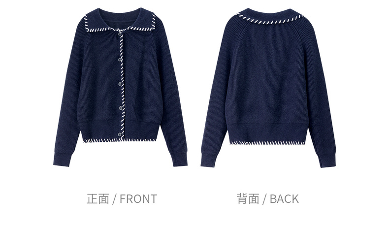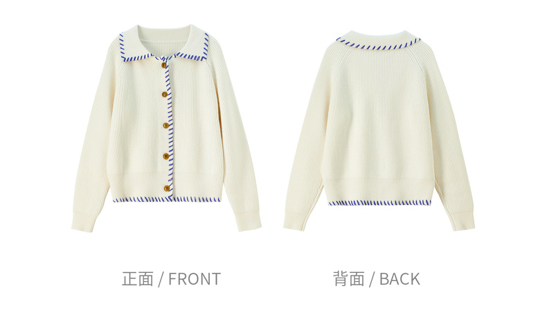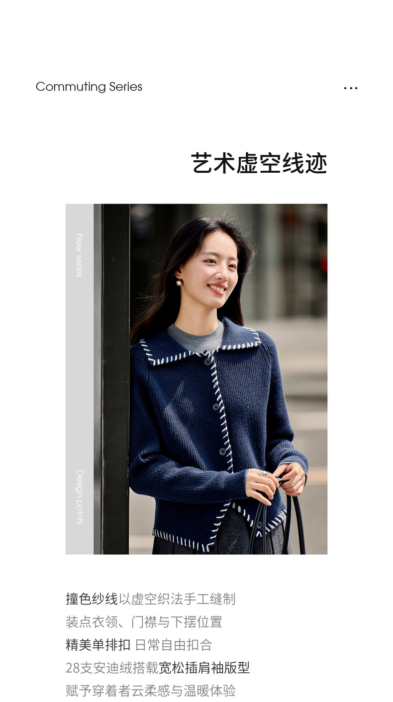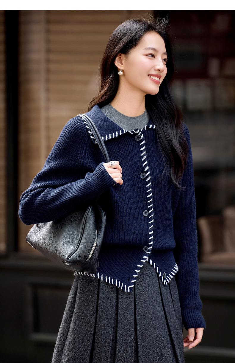 【内购】【艺术线迹】设计感撞色线单排扣翻领宽松显瘦28支安迪绒开衫毛衣-W53EB3377