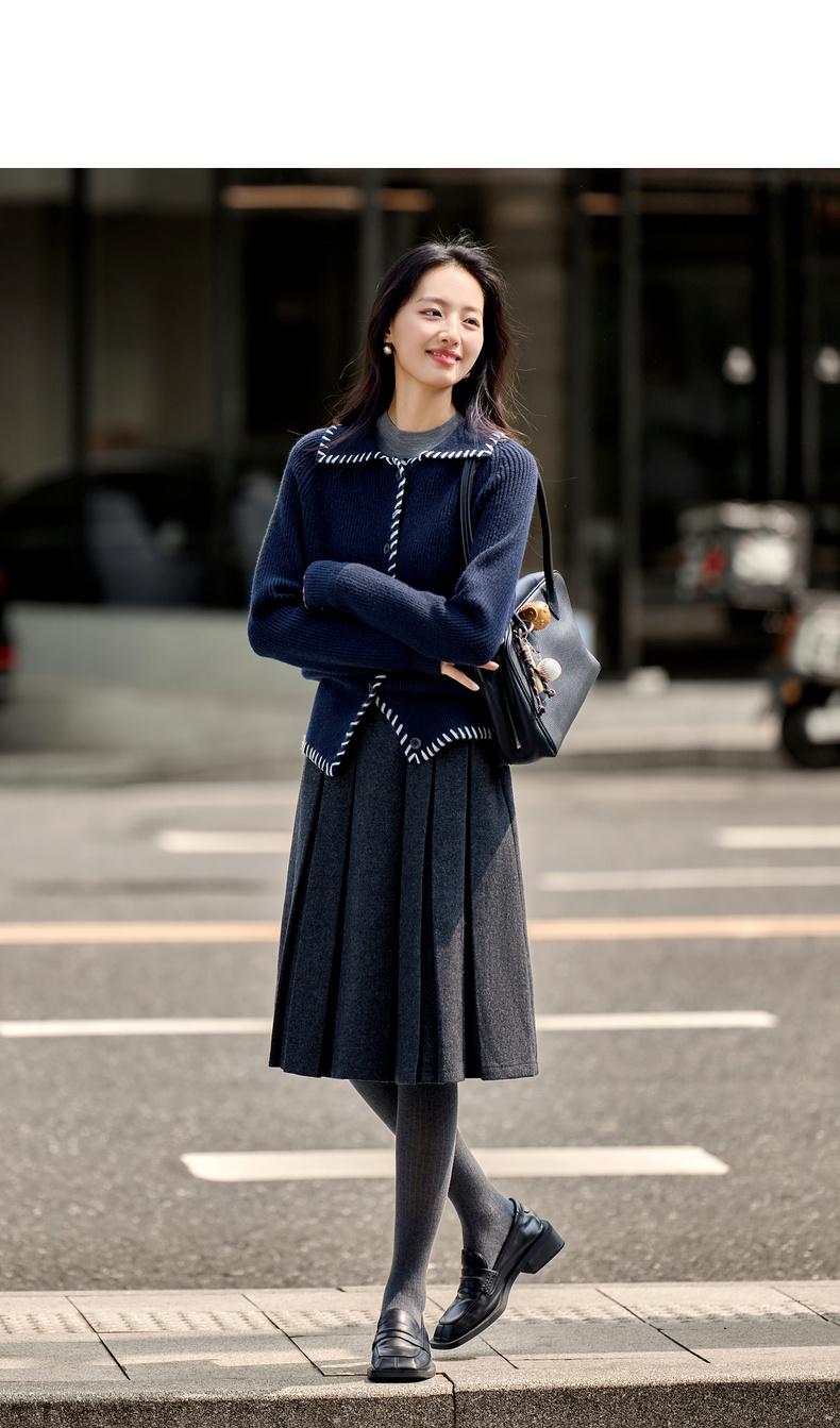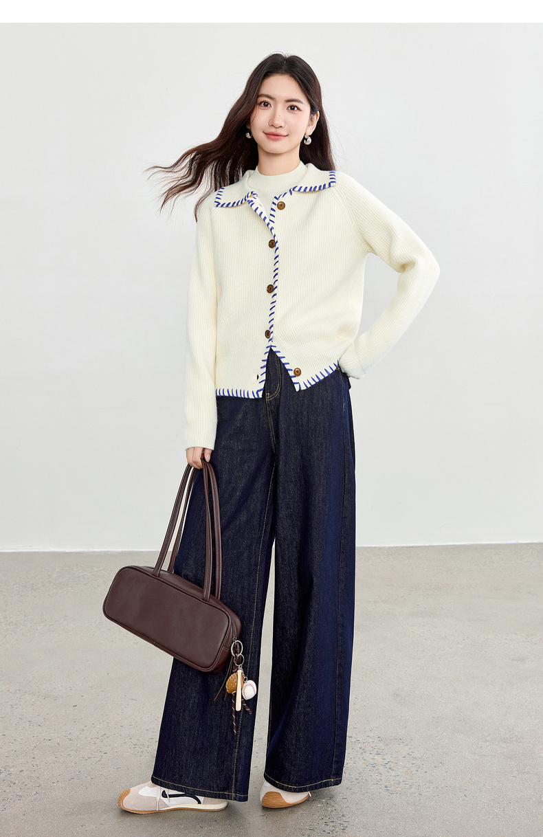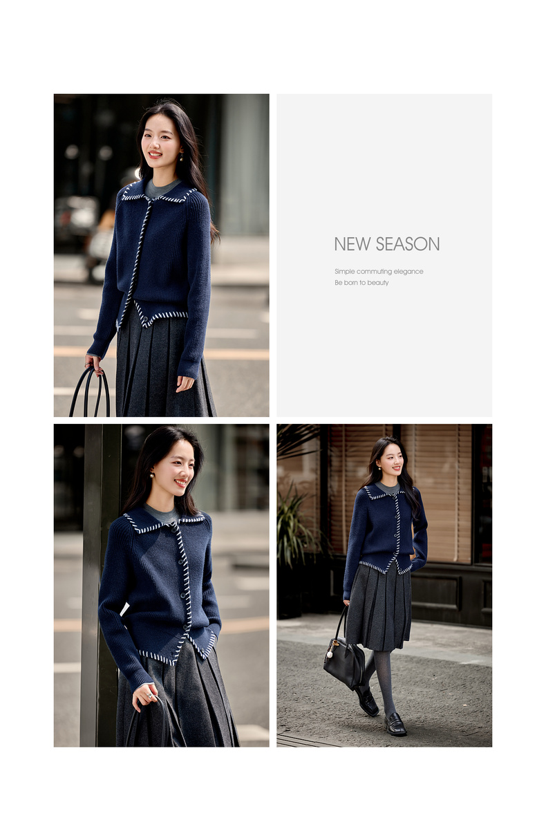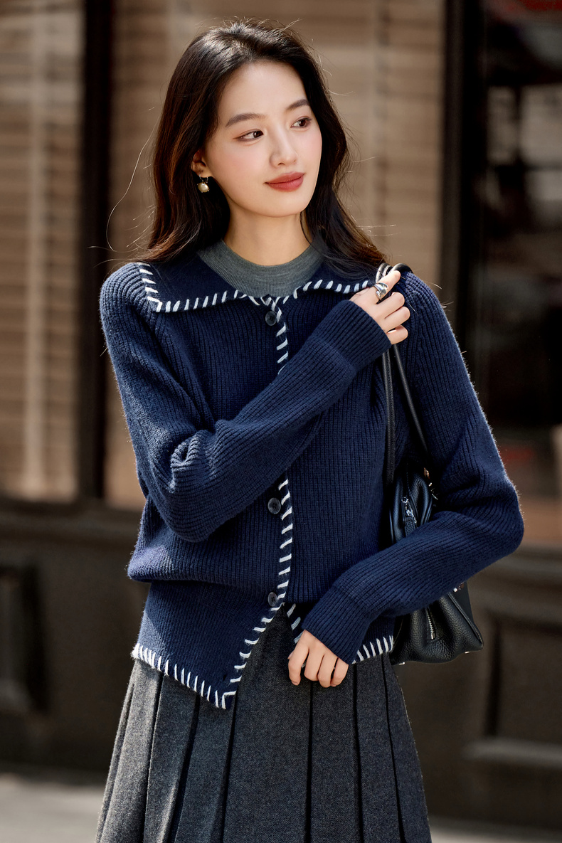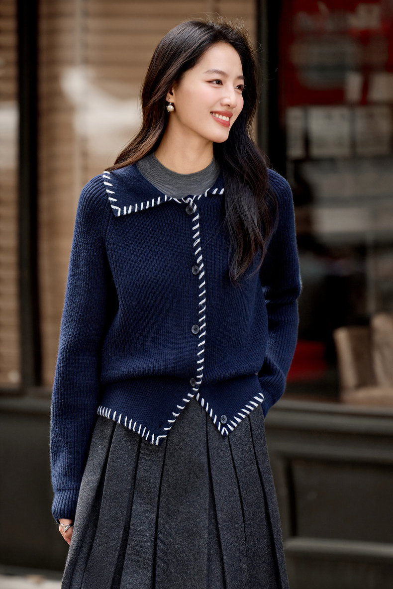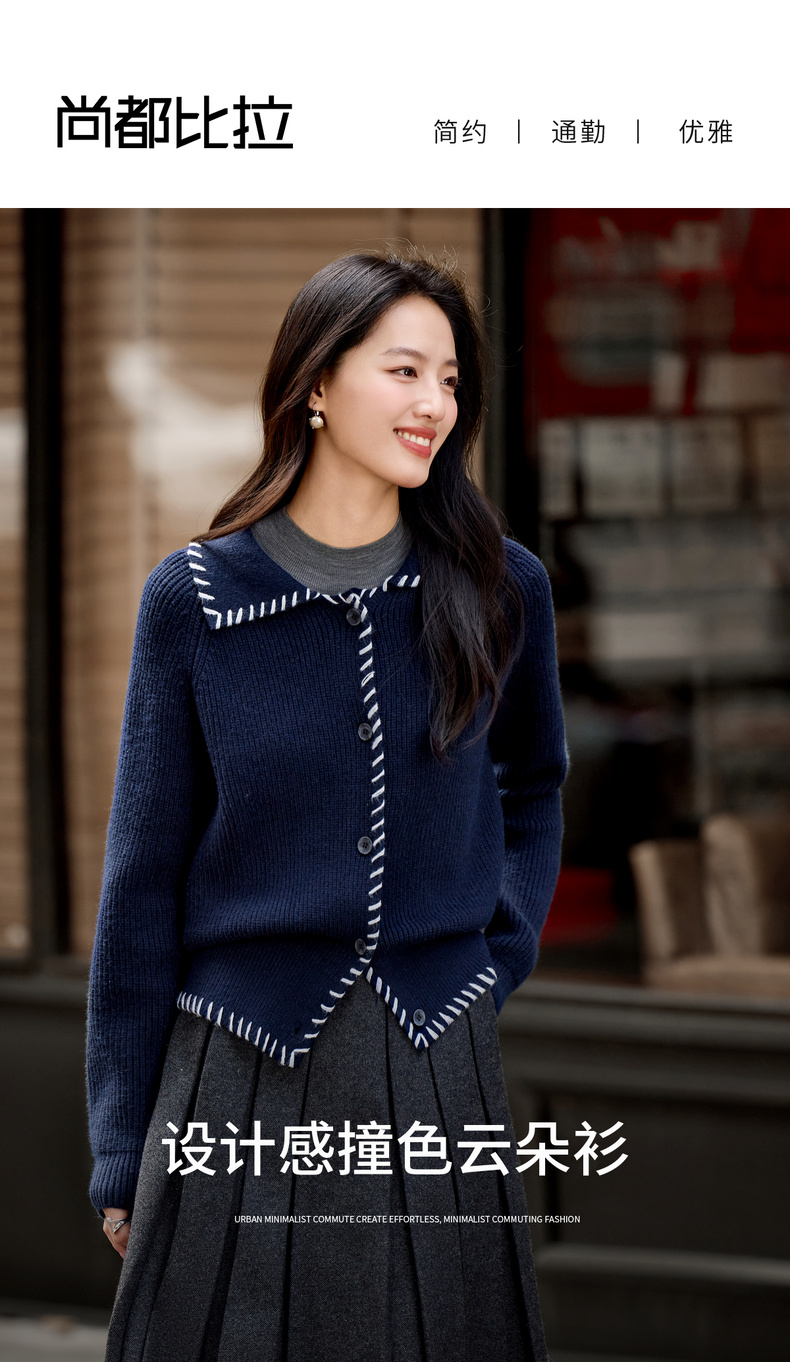 【内购】【艺术线迹】设计感撞色线单排扣翻领宽松显瘦28支安迪绒开衫毛衣-W53EB3377