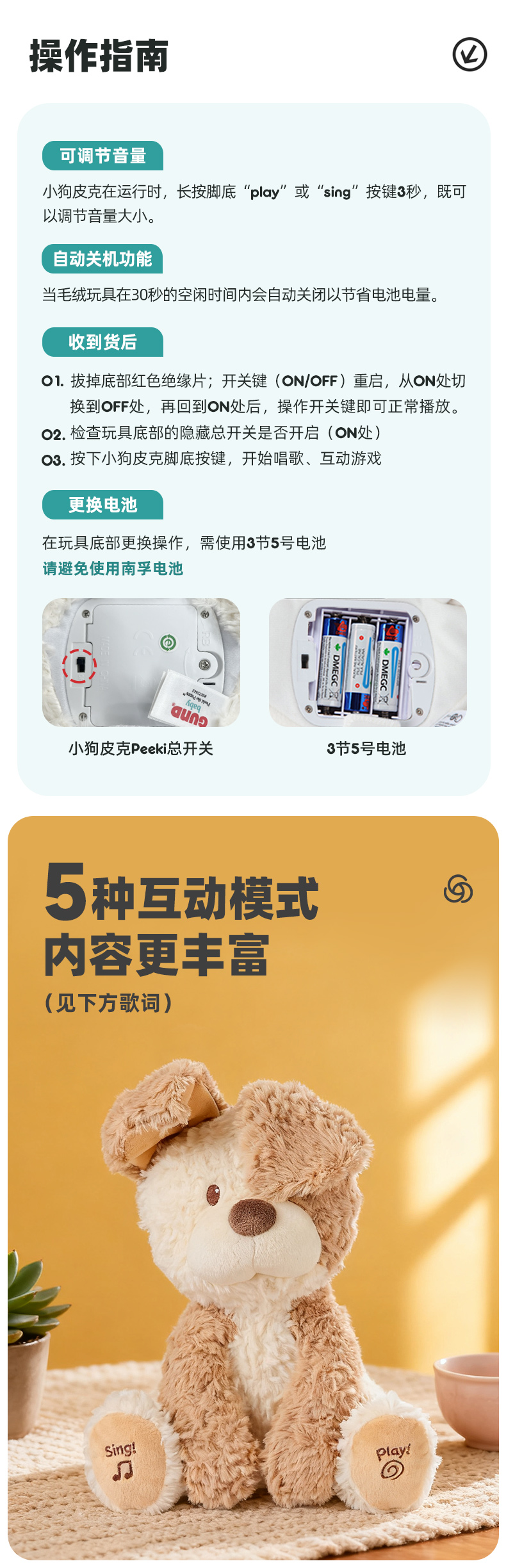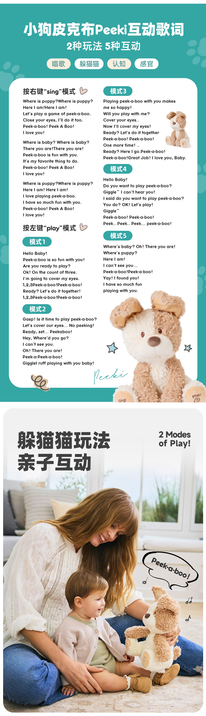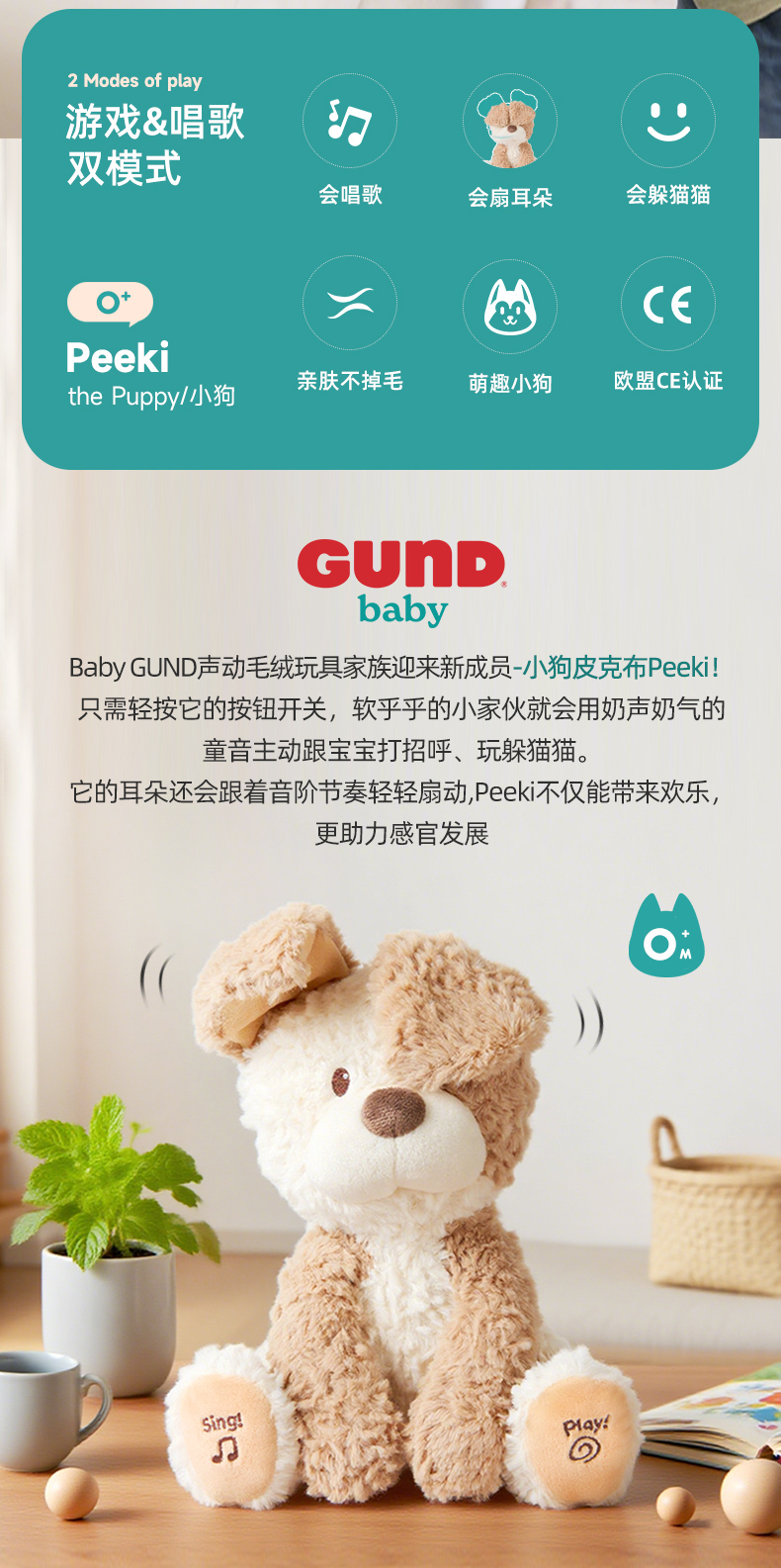 Baby gund 小狗皮克布躲猫猫会唱歌毛绒玩偶 0岁+