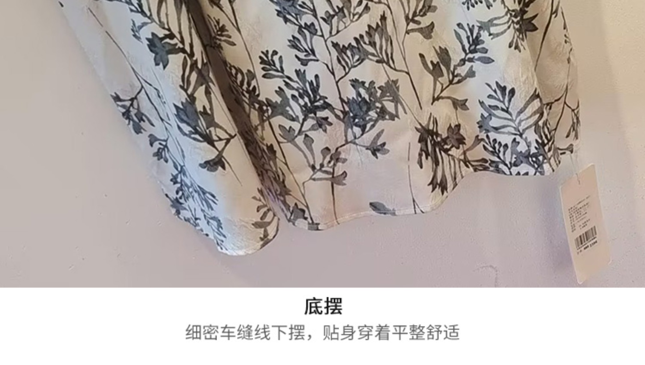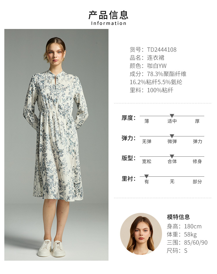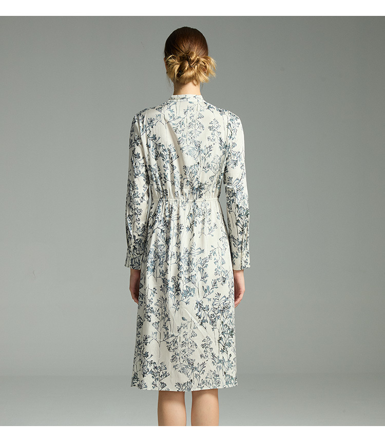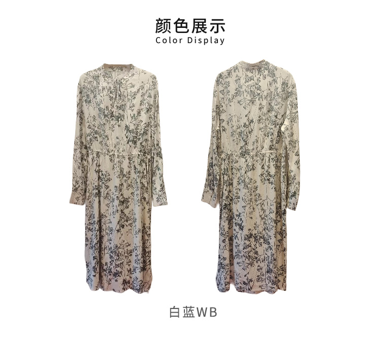 VIVIAN LIU TD2444106初秋女装新款圆领水墨叶影系带长袖连衣裙
