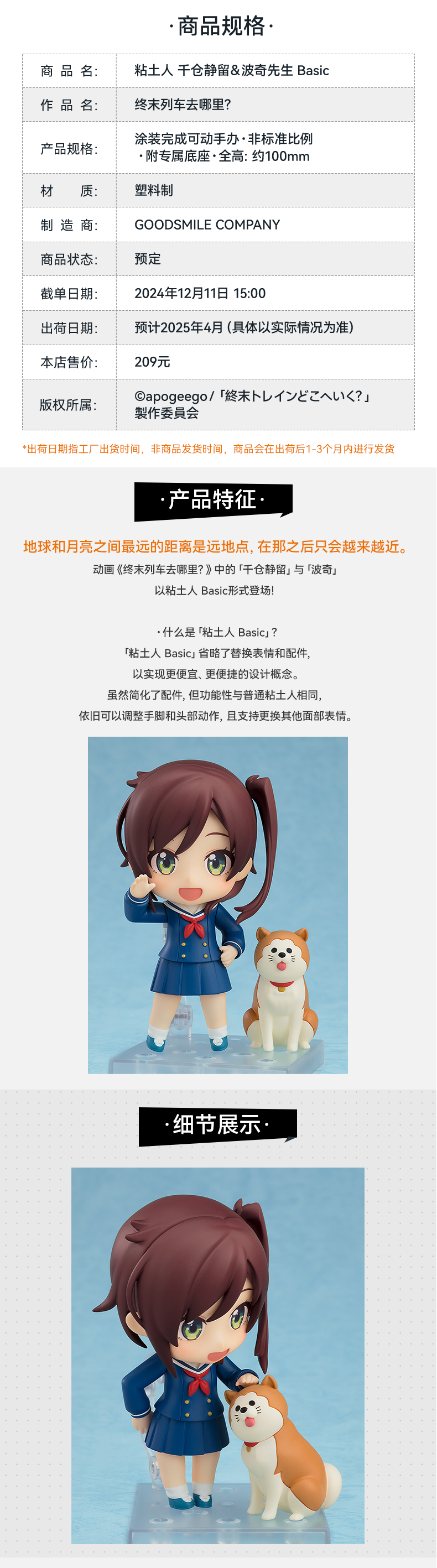 【GSC现货】粘土人 千仓静留&波奇先生 Basic 终末列车去哪里?
