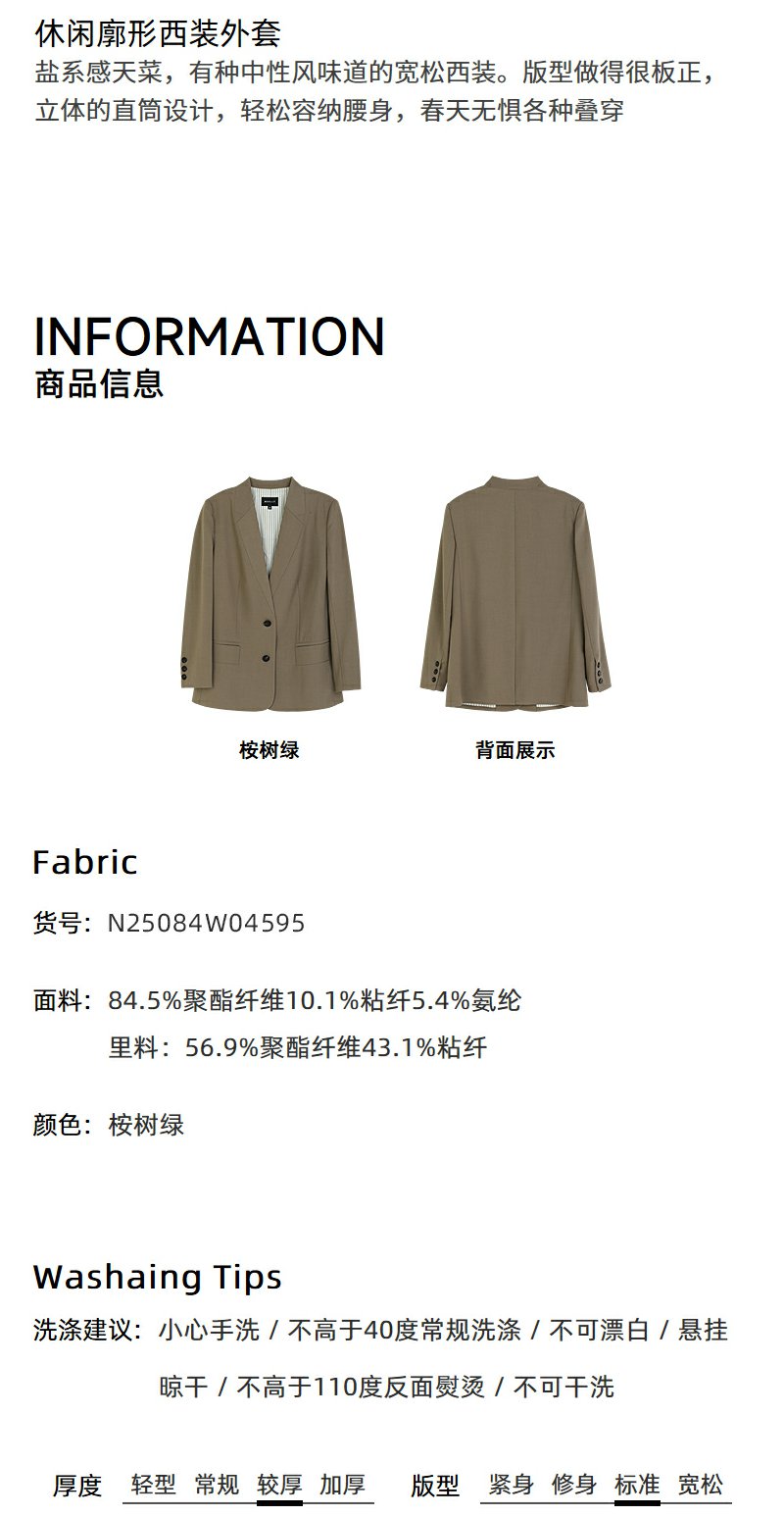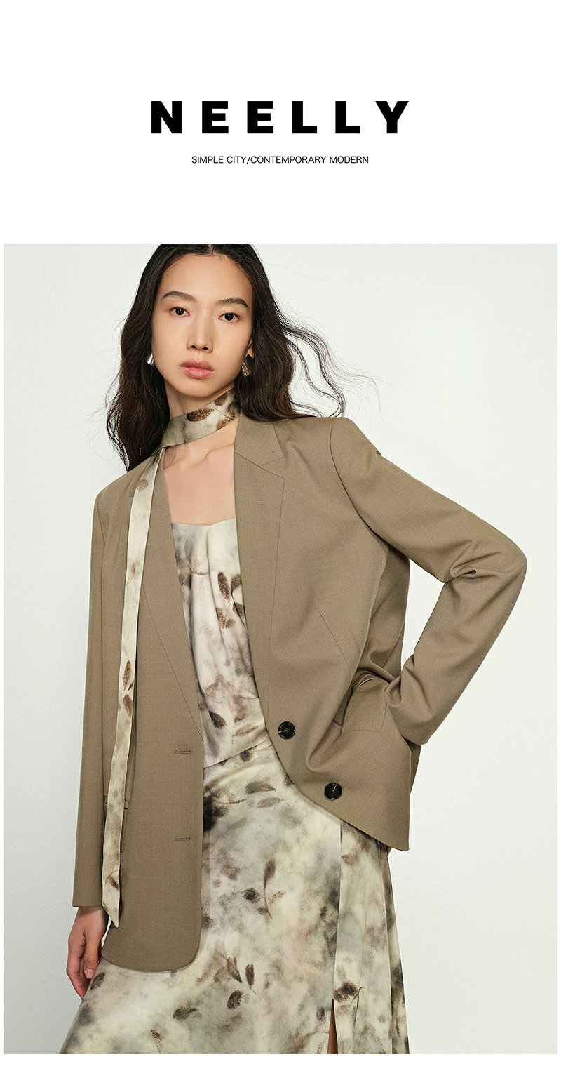NEELLY纳俪商场同款秋季新款休闲百搭西装外套女廓形显瘦上衣N25084W04595