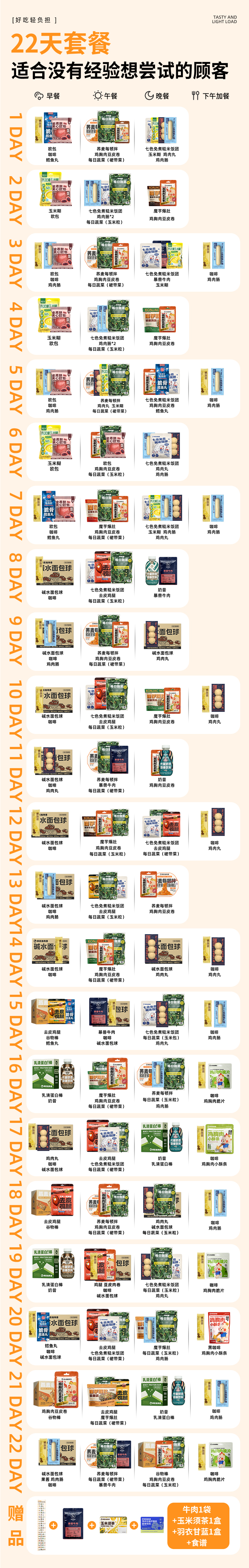 【OK康柚商城】22天全餐·下单既赠4件大礼包:14顿加餐+高蛋白牛肉1袋+羽衣甘蓝1盒+玉米须茶1盒!身材管理轻食全餐、精准控能无需开火、科学循环瘦不停,助力轻装上阵~