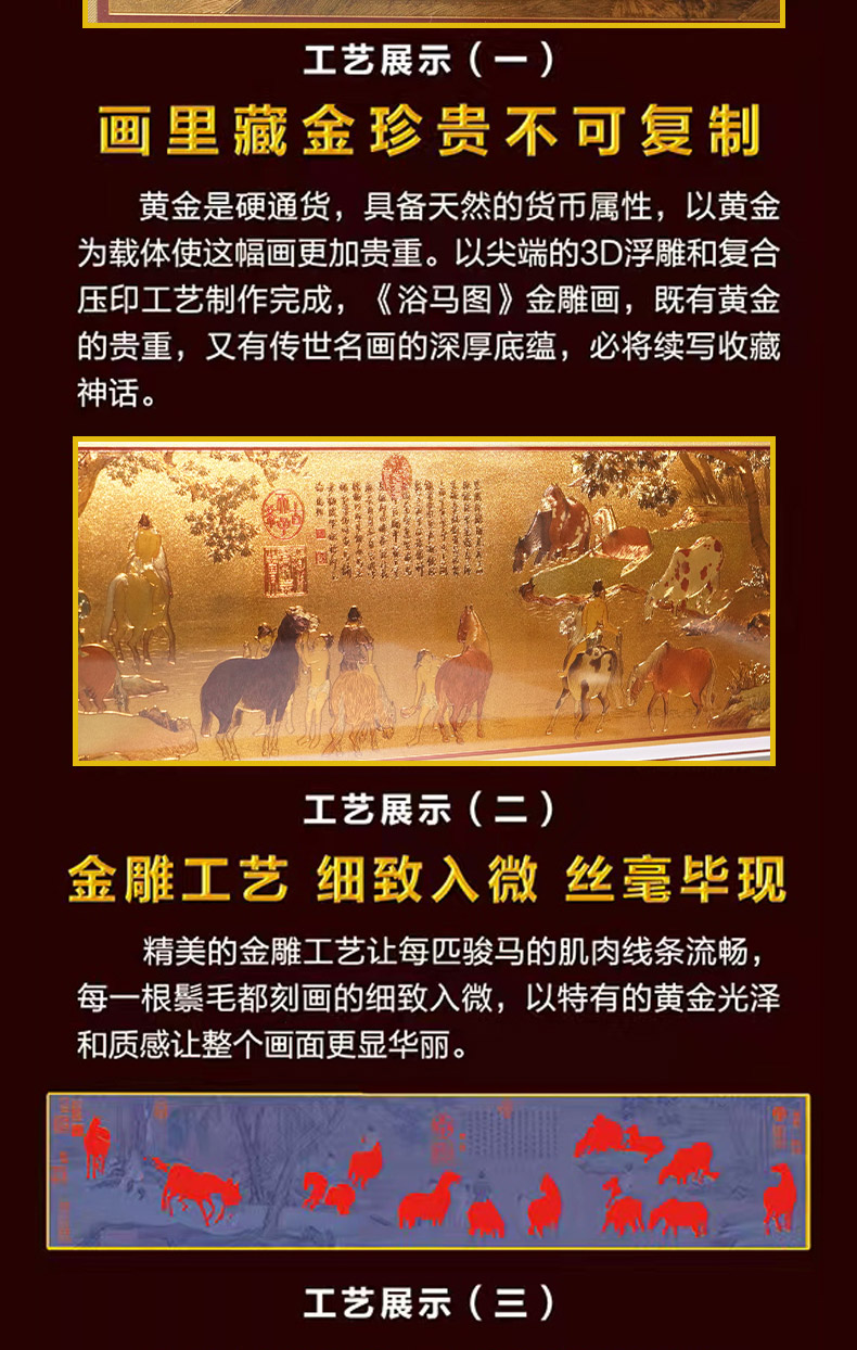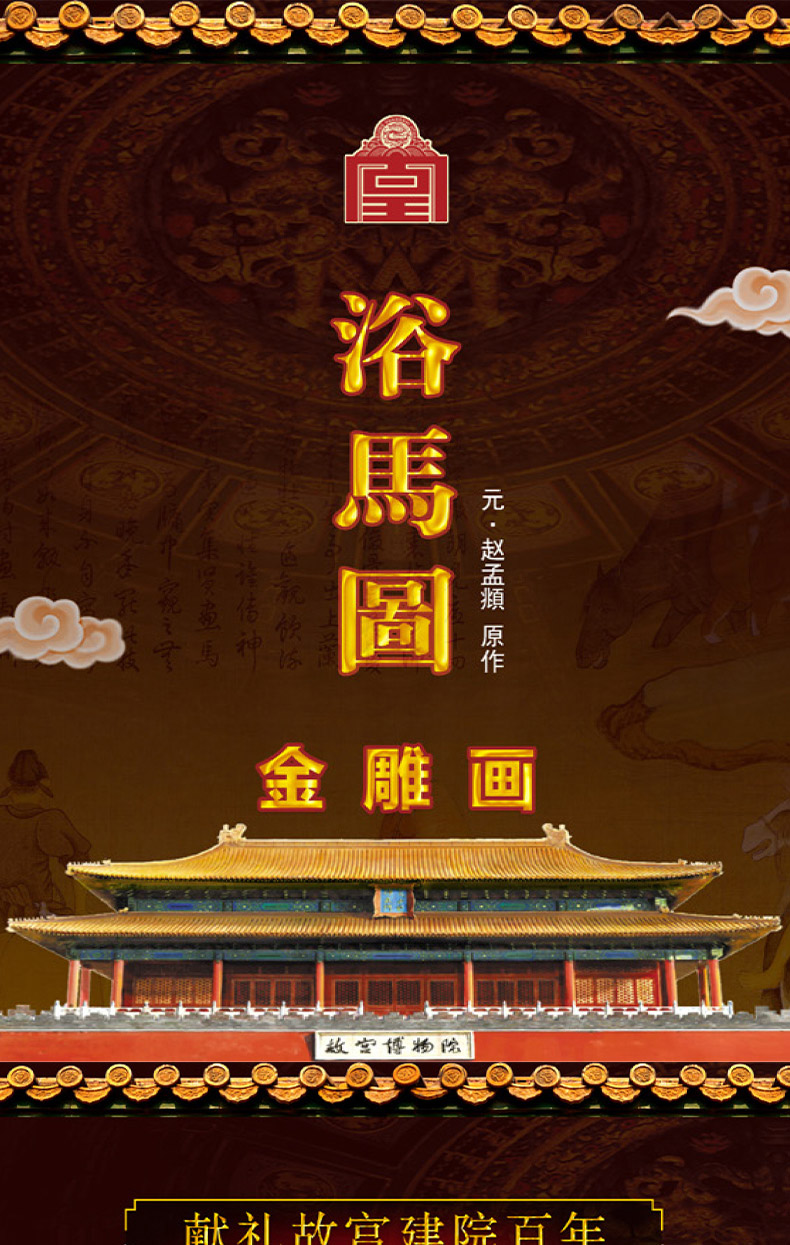 《浴马图》金雕画,画马天花板, 故宫博物院的镇院珍品,元代书画艺术的dian峰之作。