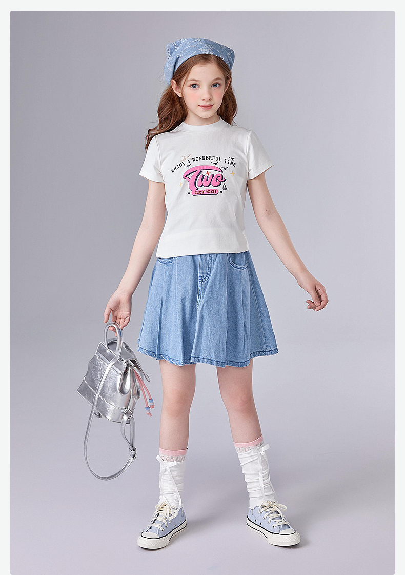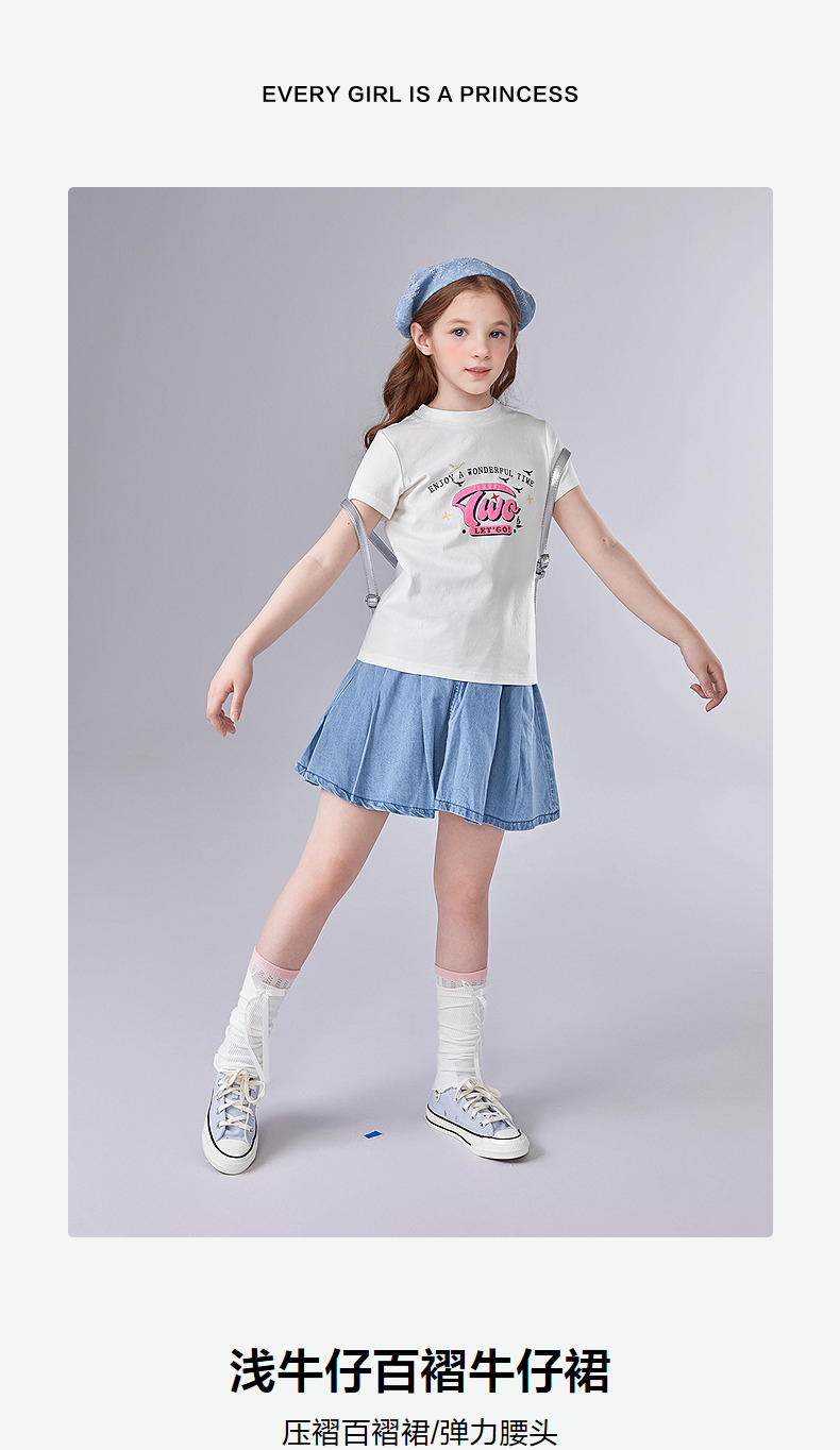 笛莎Deesha 童装女童半身裙2025夏新款女童浅牛仔百褶牛仔裙