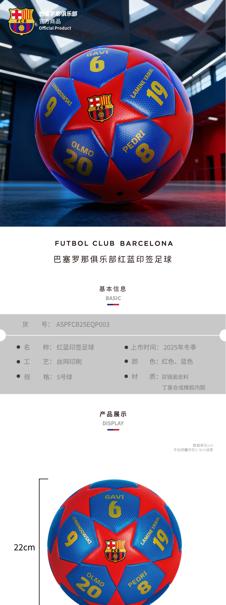 【官方正版】巴塞罗那俱乐部|巴萨红蓝印签足球5号球运动训练周边