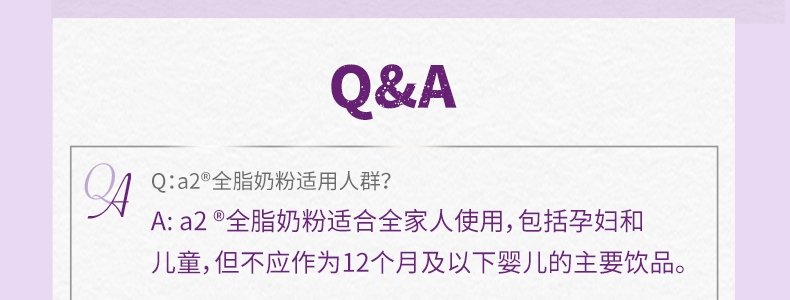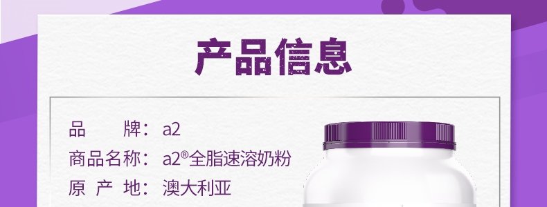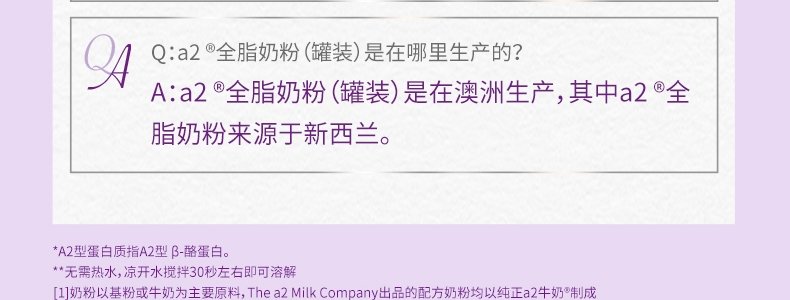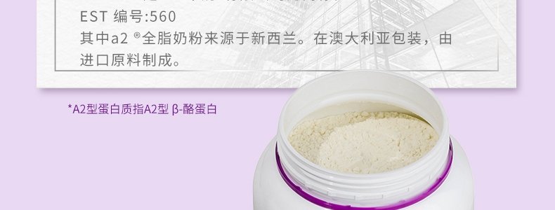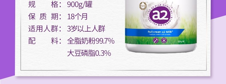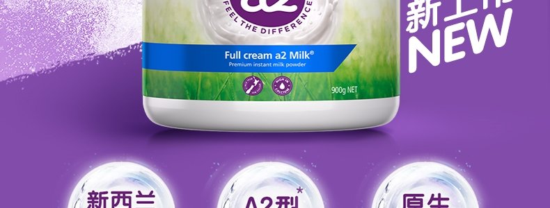 【保税】新西兰 A2 成人全脂罐装奶粉 900g 紫吨吨 适合3岁以上人群