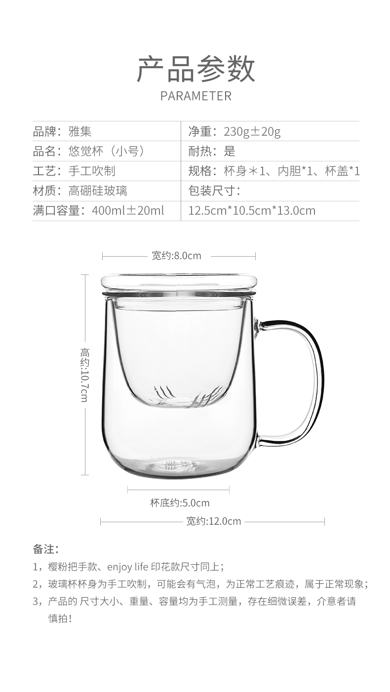 雅集玻璃杯悠觉杯400ml(小号)